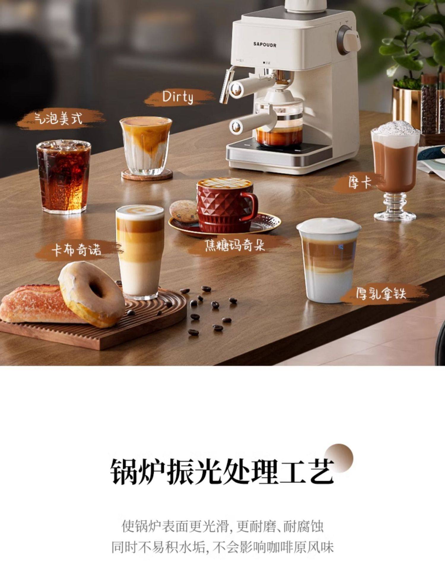 Sapoudrea09 Sapuda Coffee Machine Household Small Italian Semi-Automatic Office American Coffee Machine