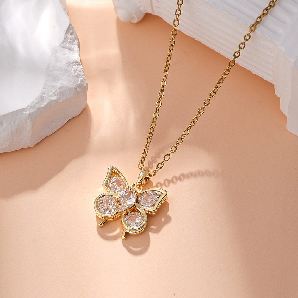 Little Swan Diamond Pendant Long Necklace Women's High-End Light Luxury Titanium Steel Sweater Chain Niche Personality Versatile Clavicle Chain
