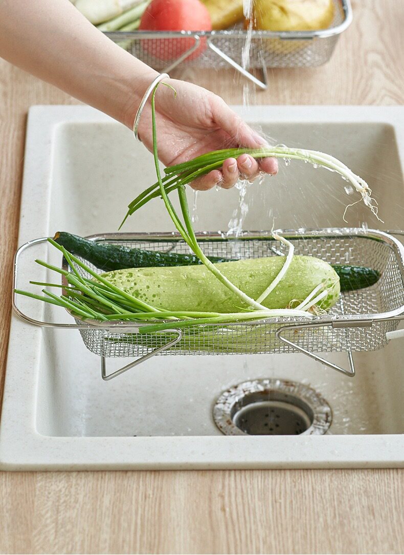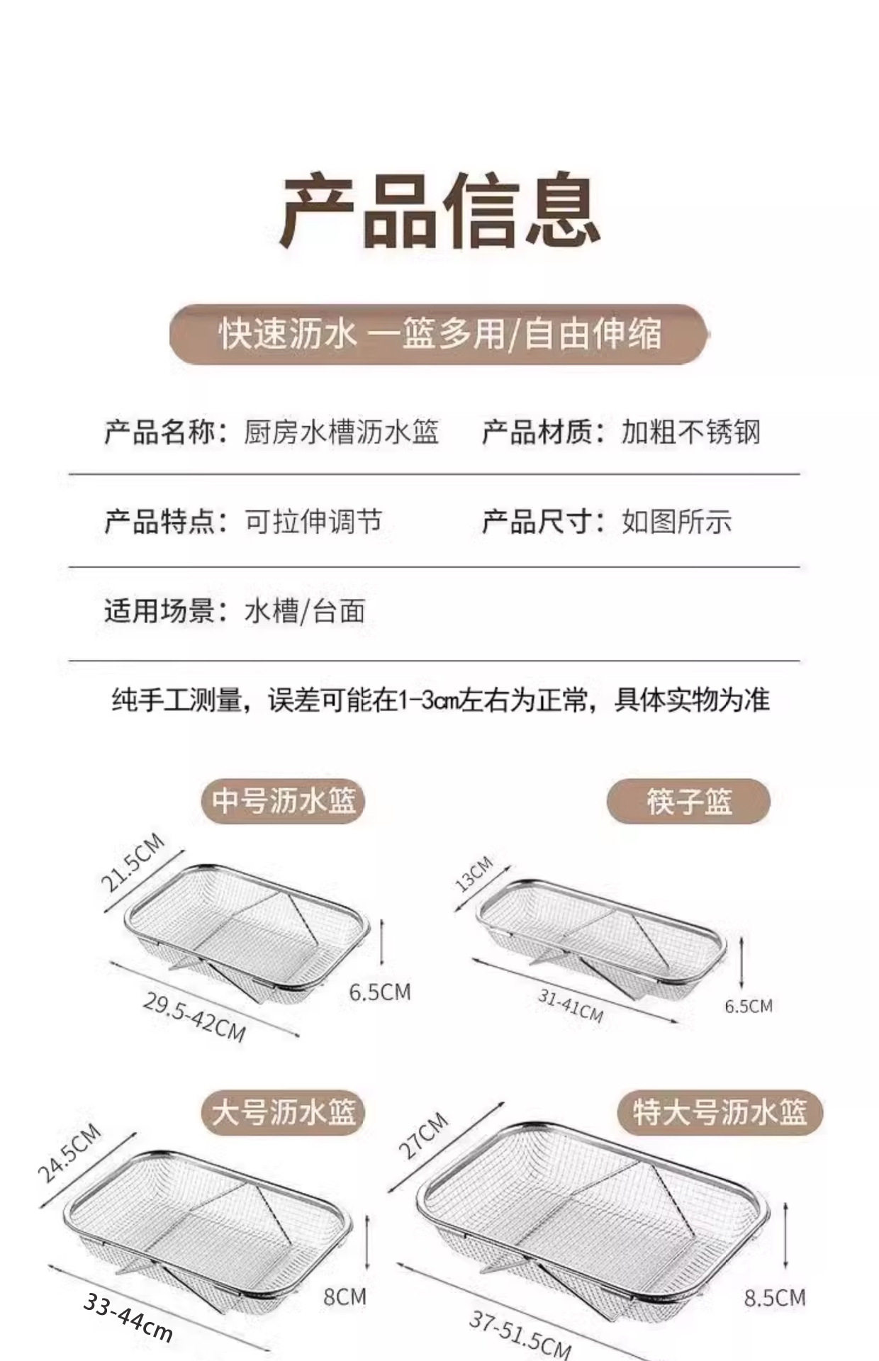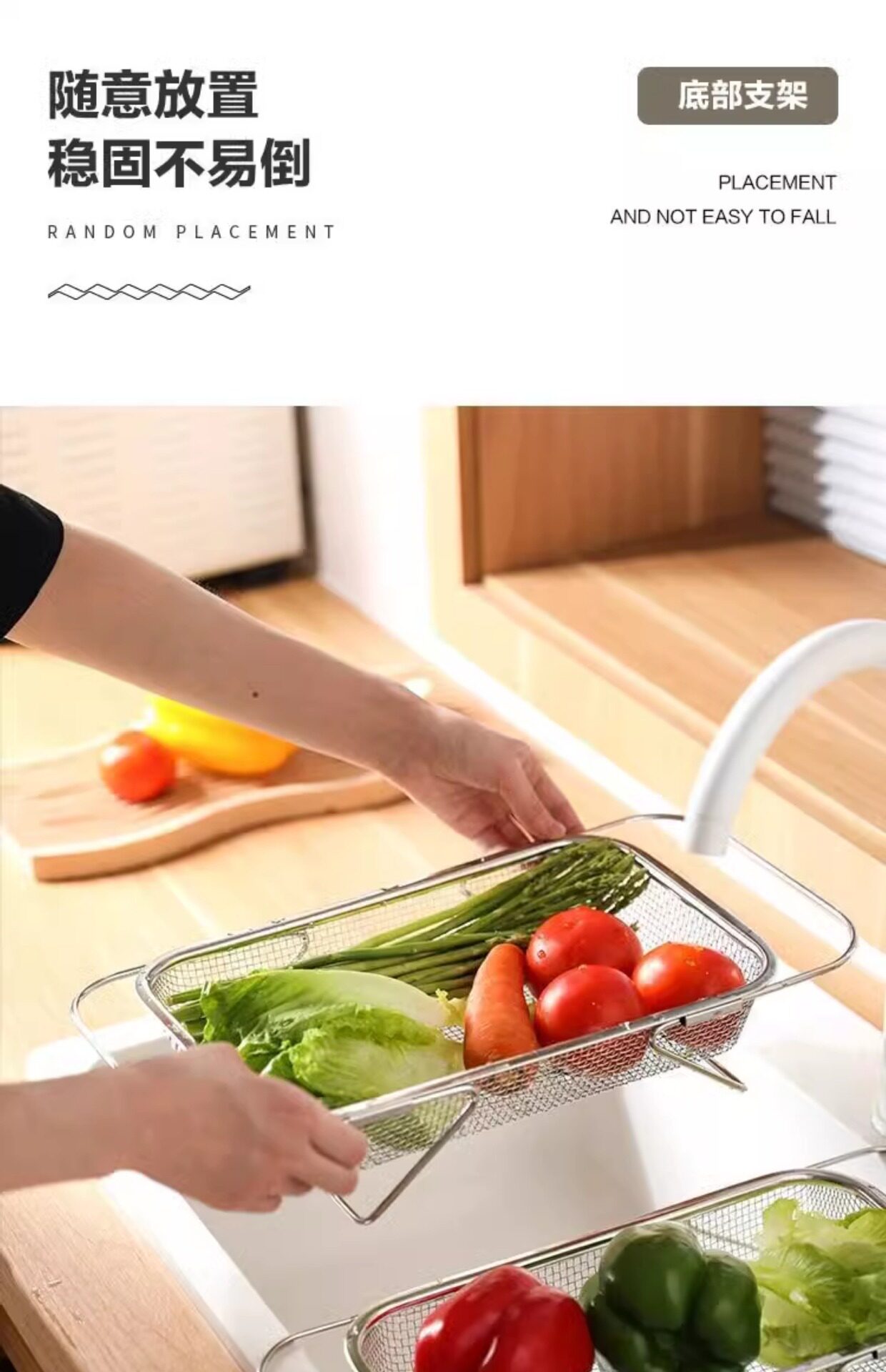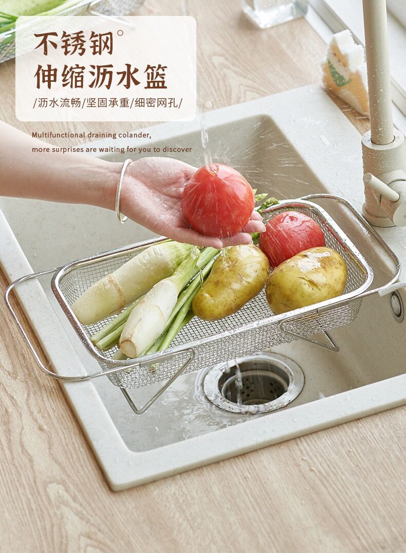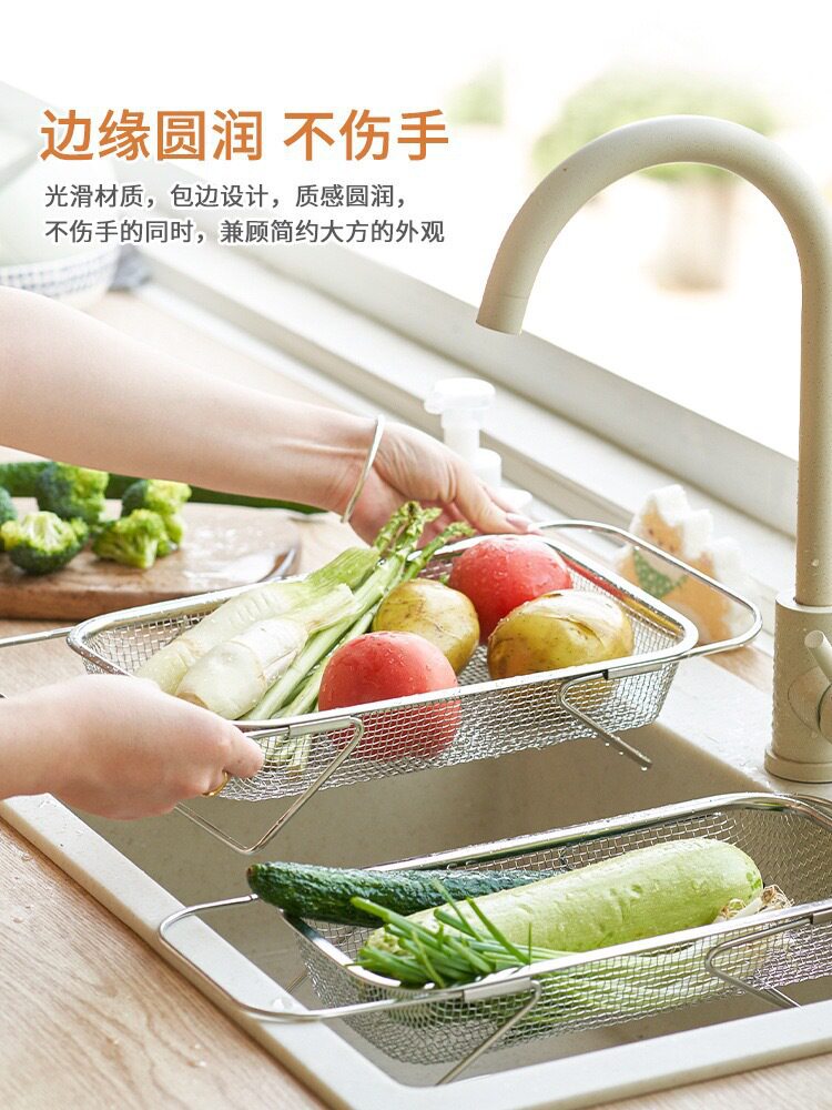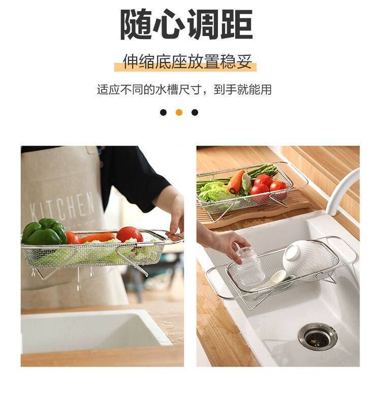 Telescopic Drain Basket Stainless Steel Sink Kitchen Household Sink Multi-Functional Storage Rack Sink Drain Dishwashing Rack