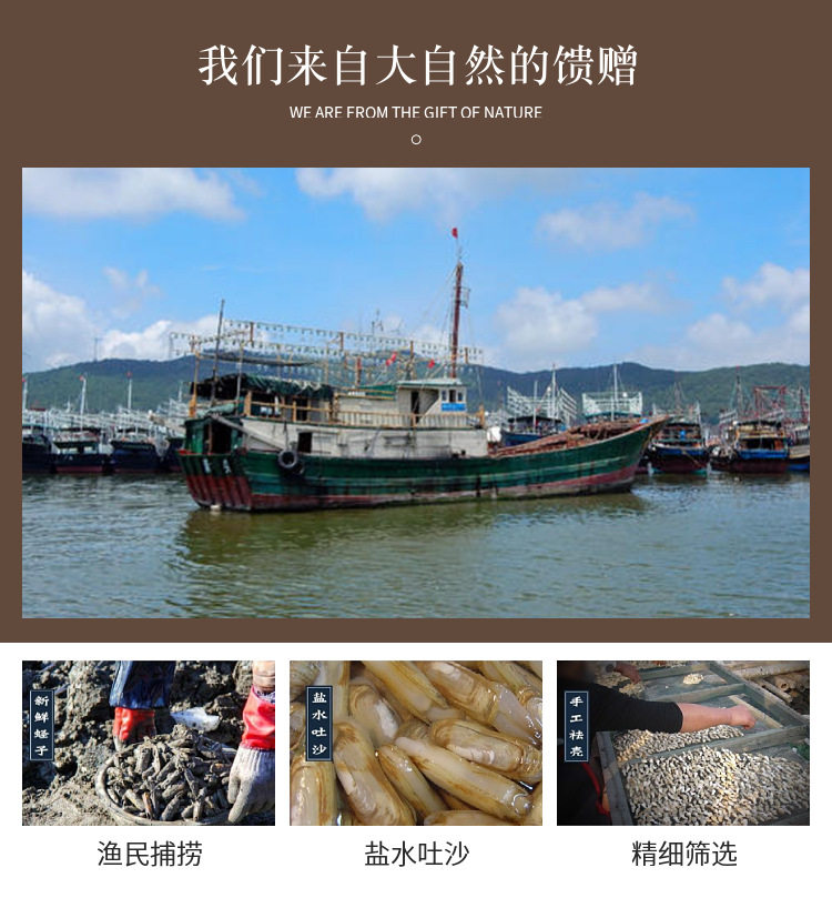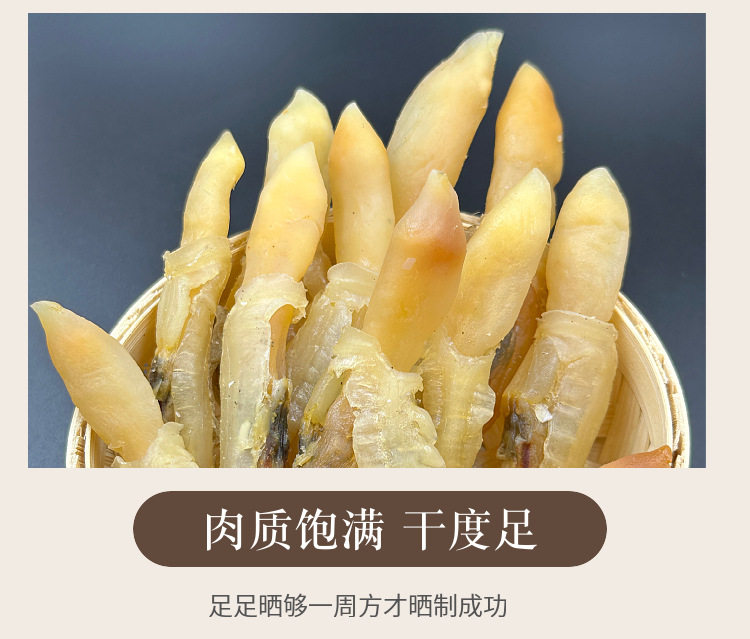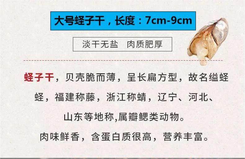 Packaging specifications §100g dried clams [large size 7-9cm, 90% dry, net weight] ⚑ ⚑,§250g dried clams [large size 7-9cm, 90% dry, net weight] ⚑ ⚑,§500g dried clams [large size 7-9cm, 90% dry, net weight] ⚑ ⚑