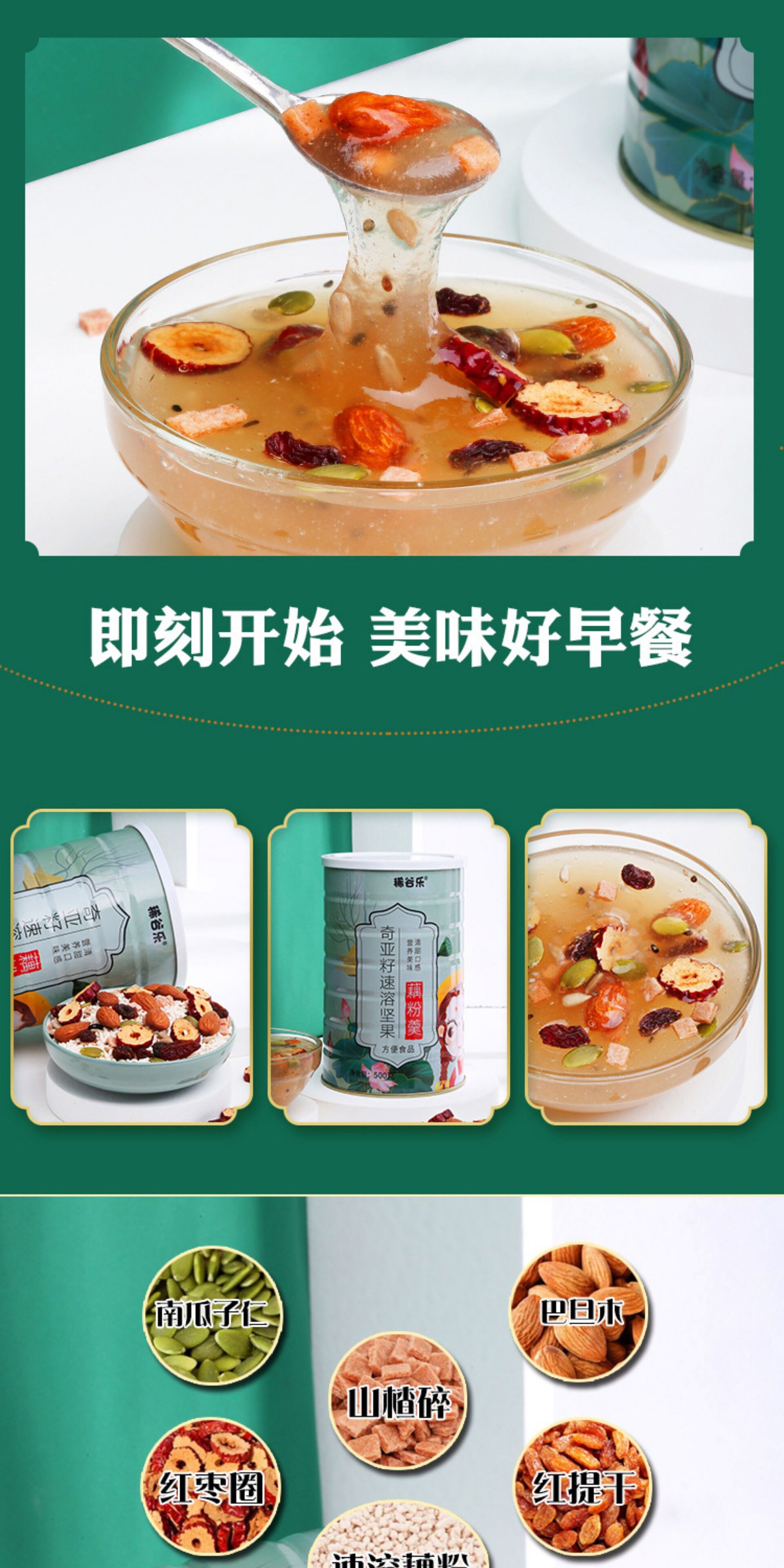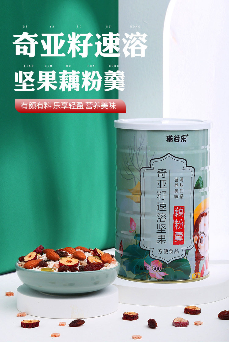 [Free Glass Bowl and Spoon] Fruit, Nuts, Lotus Root Powder Soup, Chia Seeds, Red Dates and White Fungus Breakfast Nutritious Meal