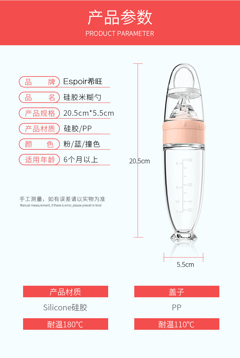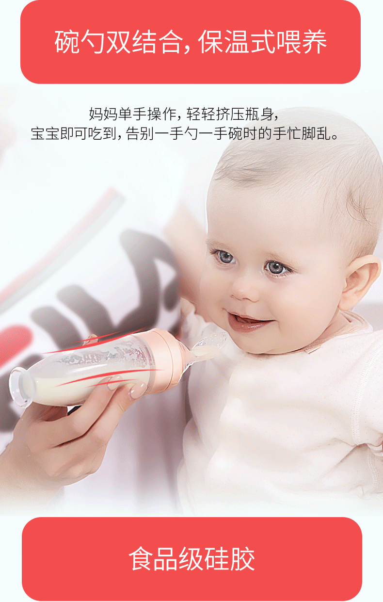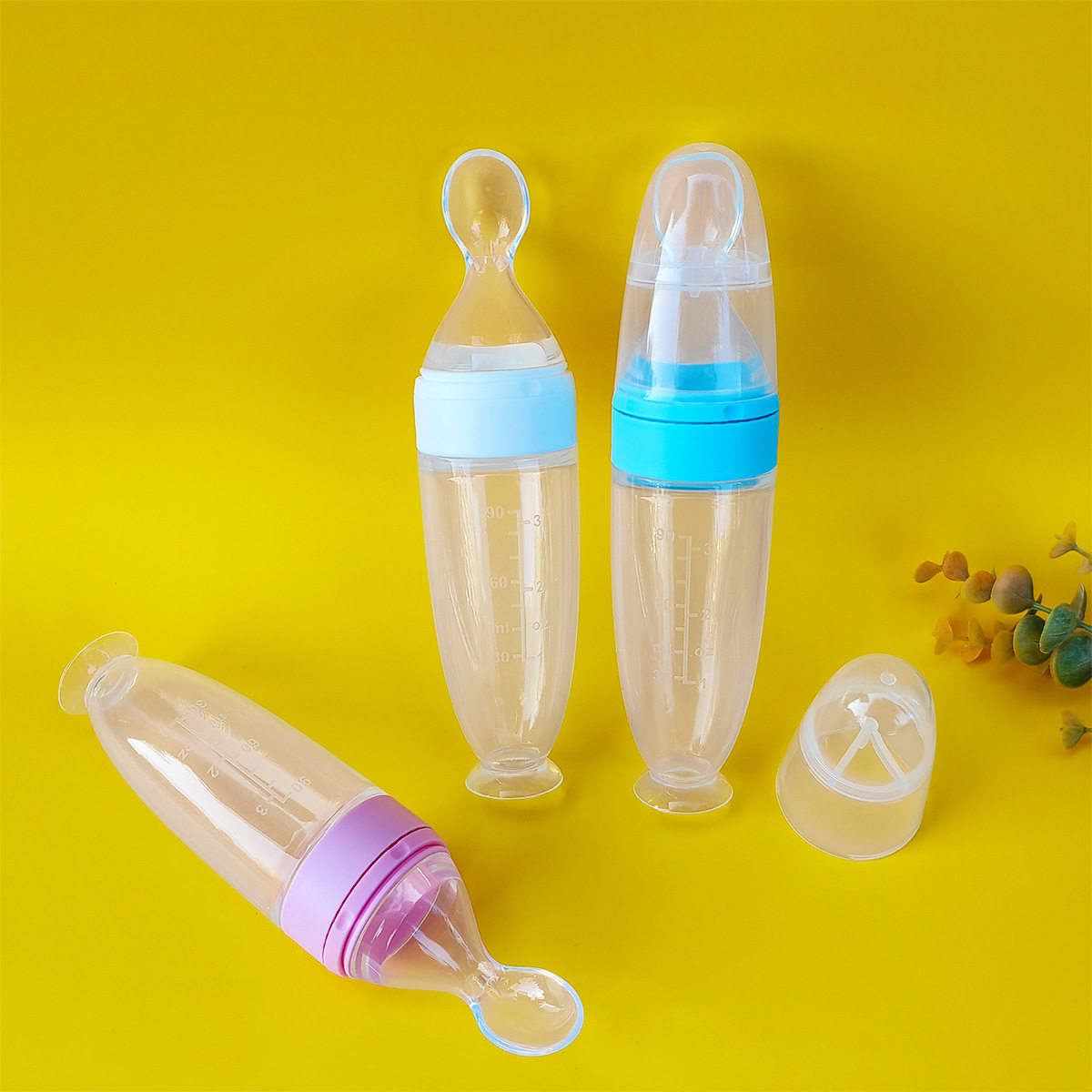 Infant Suction Cup Rice Cereal Bottle 90ml Squeeze Spoon Feeding Soft Spoon Children's Tableware Food-Grade Silicone Rice Cereal Bottle