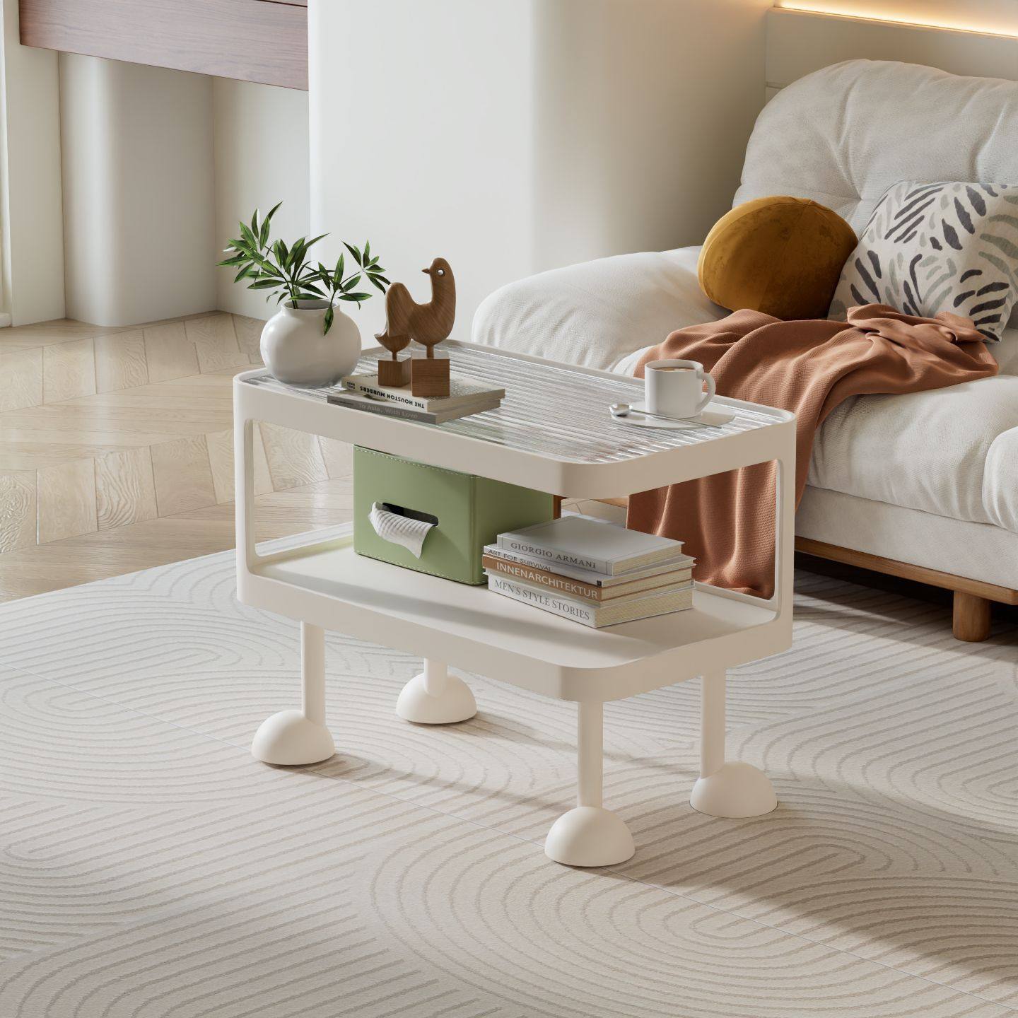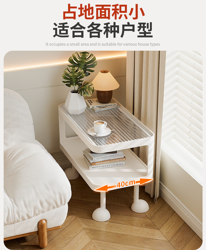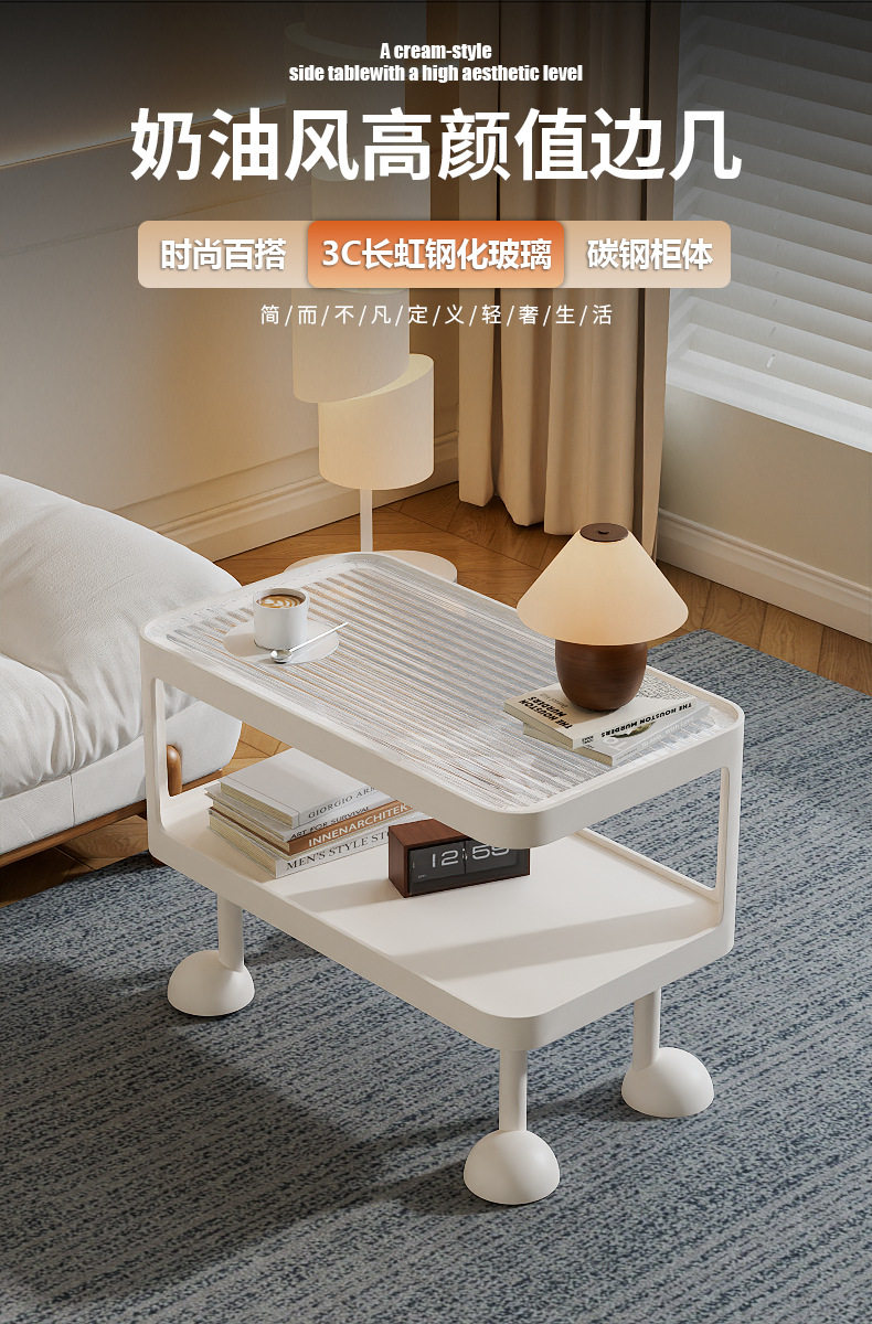 Cute Cream Style Rectangular Bedside Table with Lamp for Home Bedroom Bedside Cabinet Storage Shelf Small Coffee Table Simple