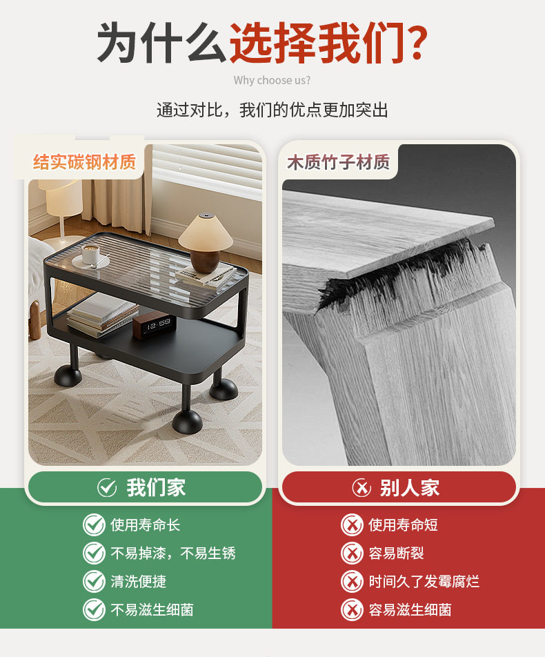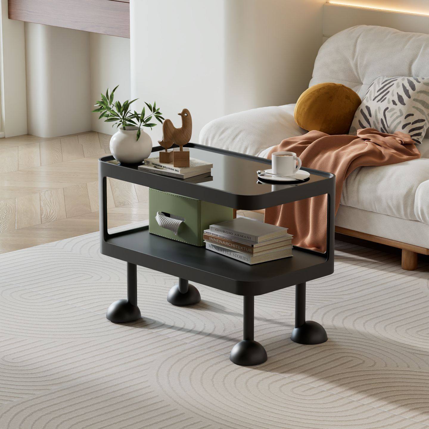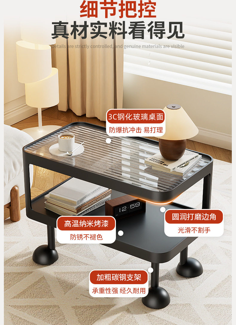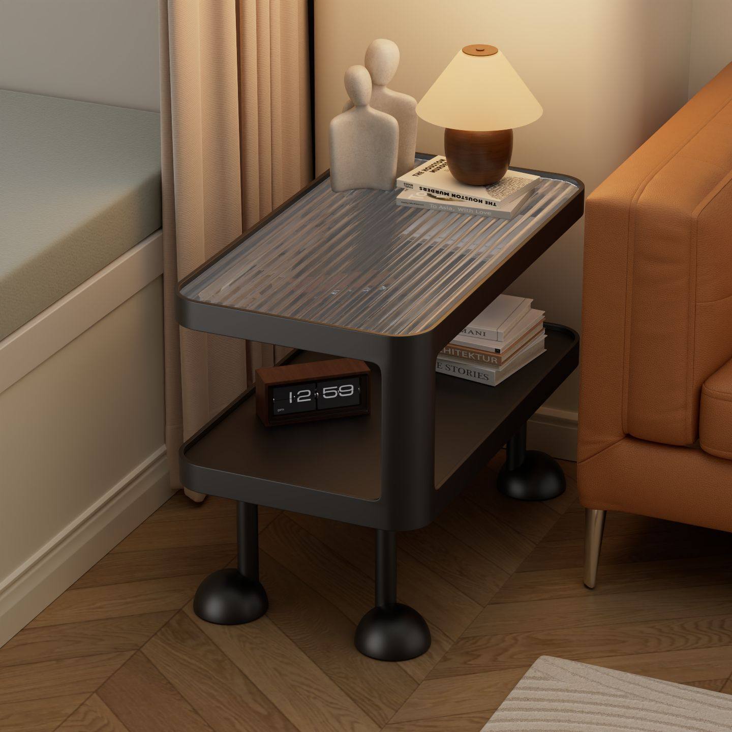 Cute Cream Style Rectangular Bedside Table with Lamp for Home Bedroom Bedside Cabinet Storage Shelf Small Coffee Table Simple