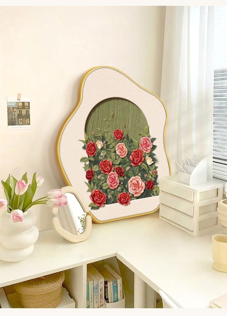 In-Stock Pearl Rose Decorative Painting for Display, Entranceway Ornament, High-End Living Room Wall Art, Niche Picture Frame