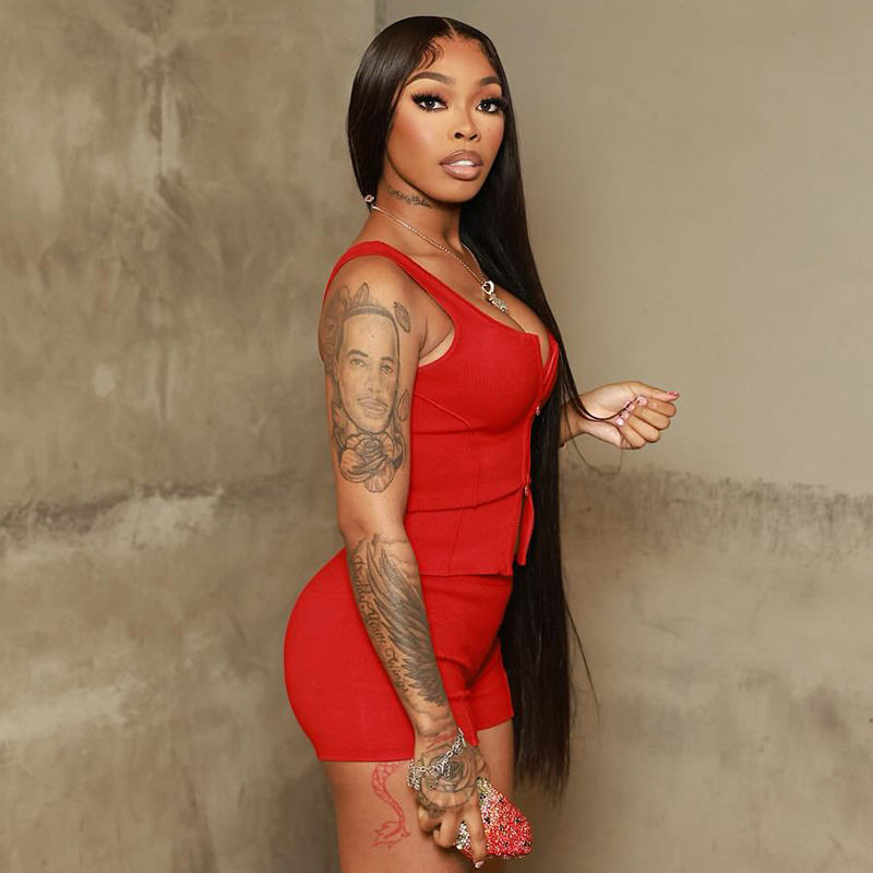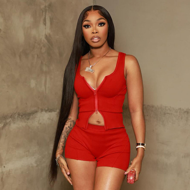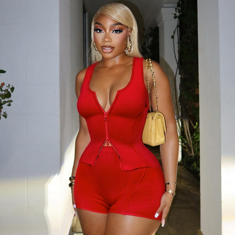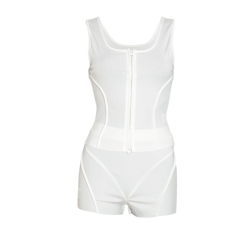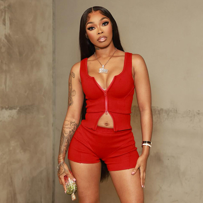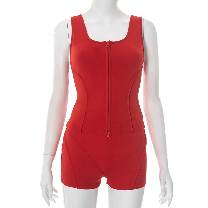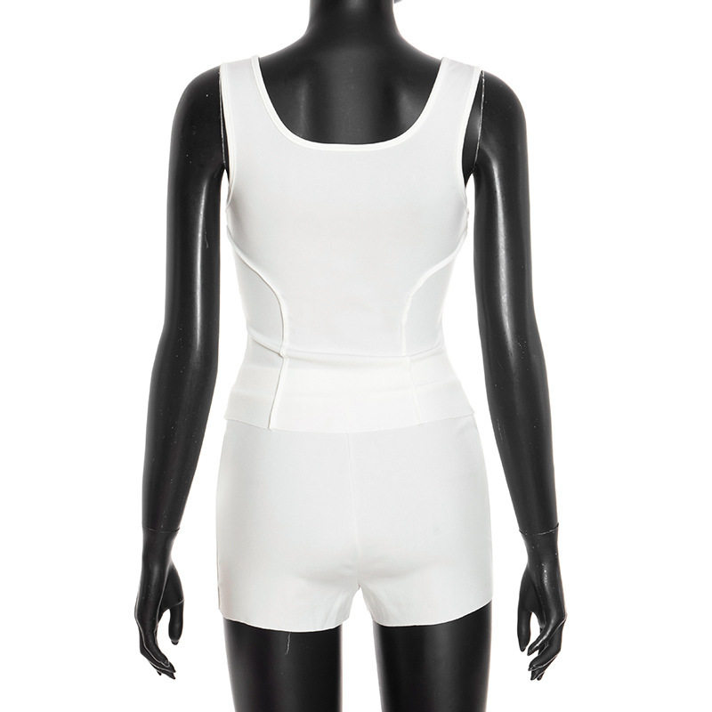 D25St165 Cross-Border European and American Clothing Sexy Sports Sleeveless Zipper Vest Top Tight Shorts Two-Piece Suit