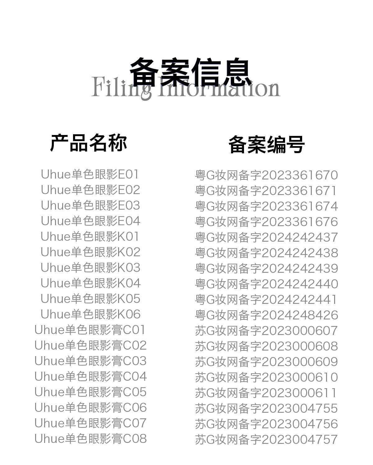 Non-special cosmetics registration certificate number Guangdong g makeup network preparation number 2023361671