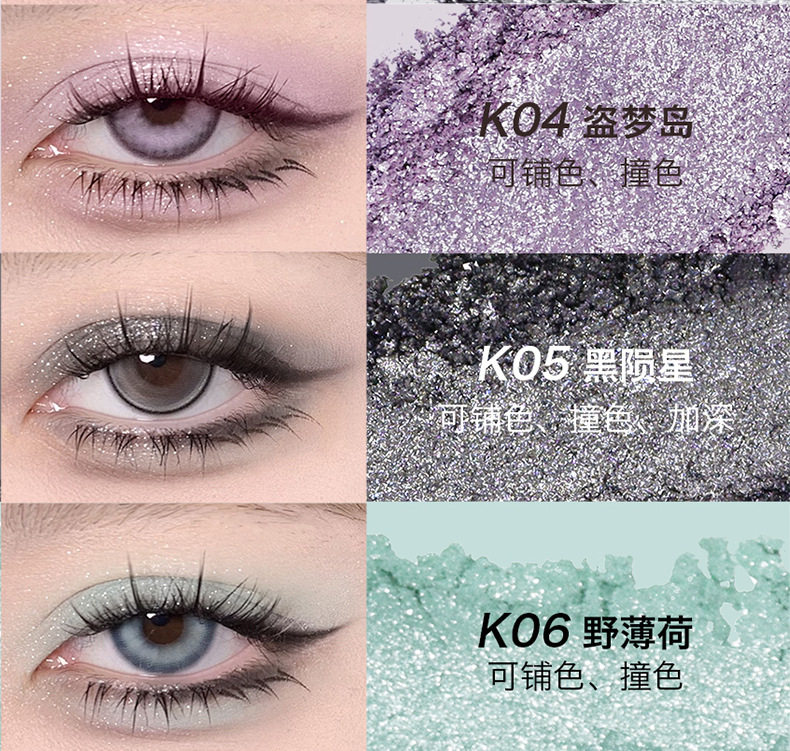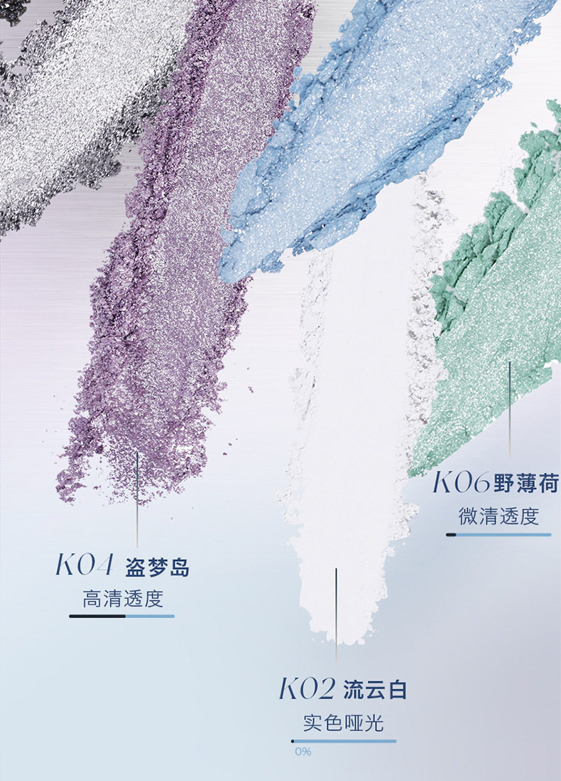 Texture Pearlescent,Powder,Matte,Shimmer,Metallic luster,Foggy feeling,Polarized glitter