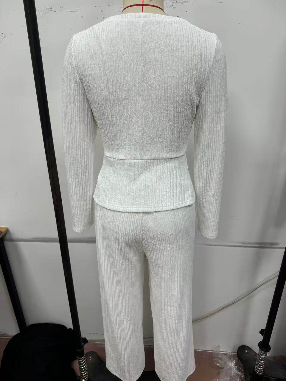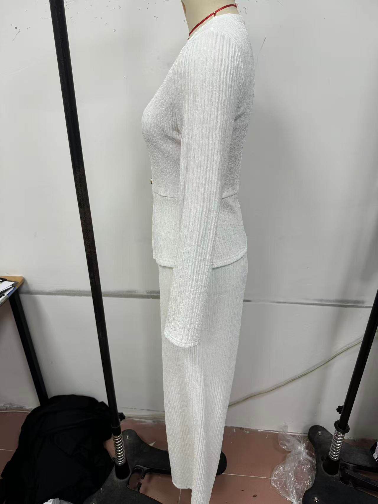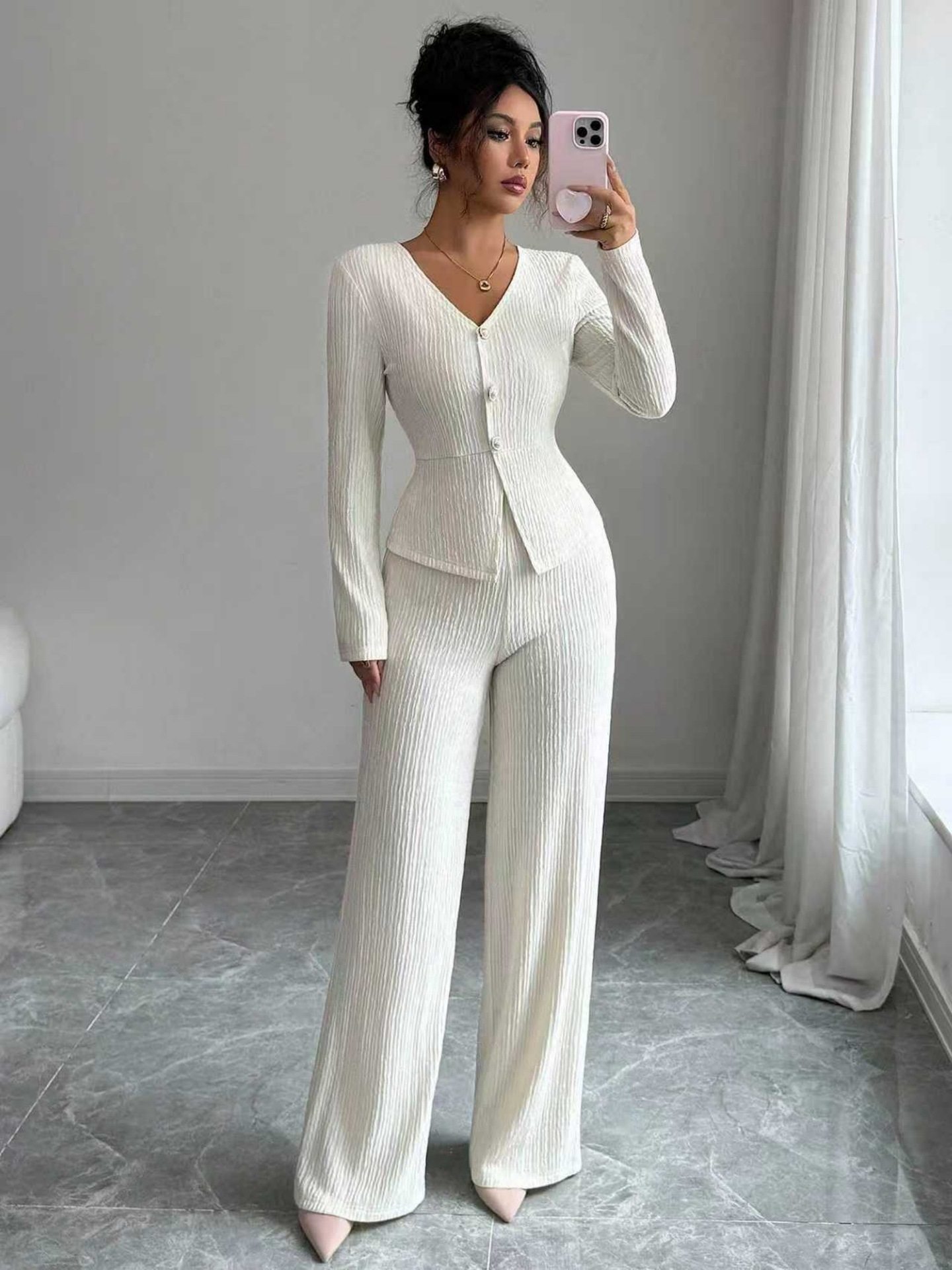 2025 New Autumn and Winter Casual Sports Suit, Lazy Style Slim Sweater, High Waist Knitted Wide Leg Pants Two-Piece Suit