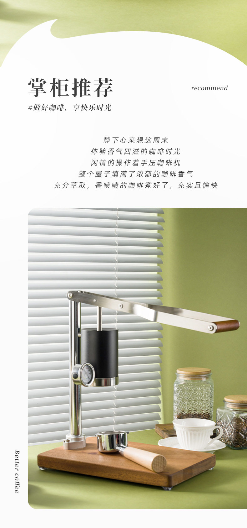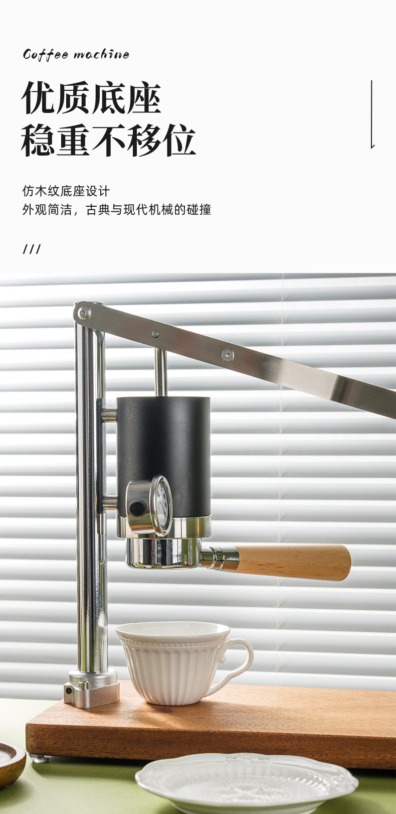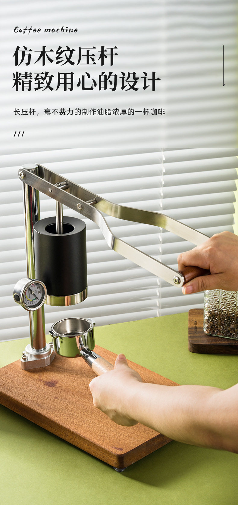 Hand-Pressed Espresso Machine, Retro Design, High-Pressure Extraction, Rich Oil, All-In-One Lever Coffee Machine