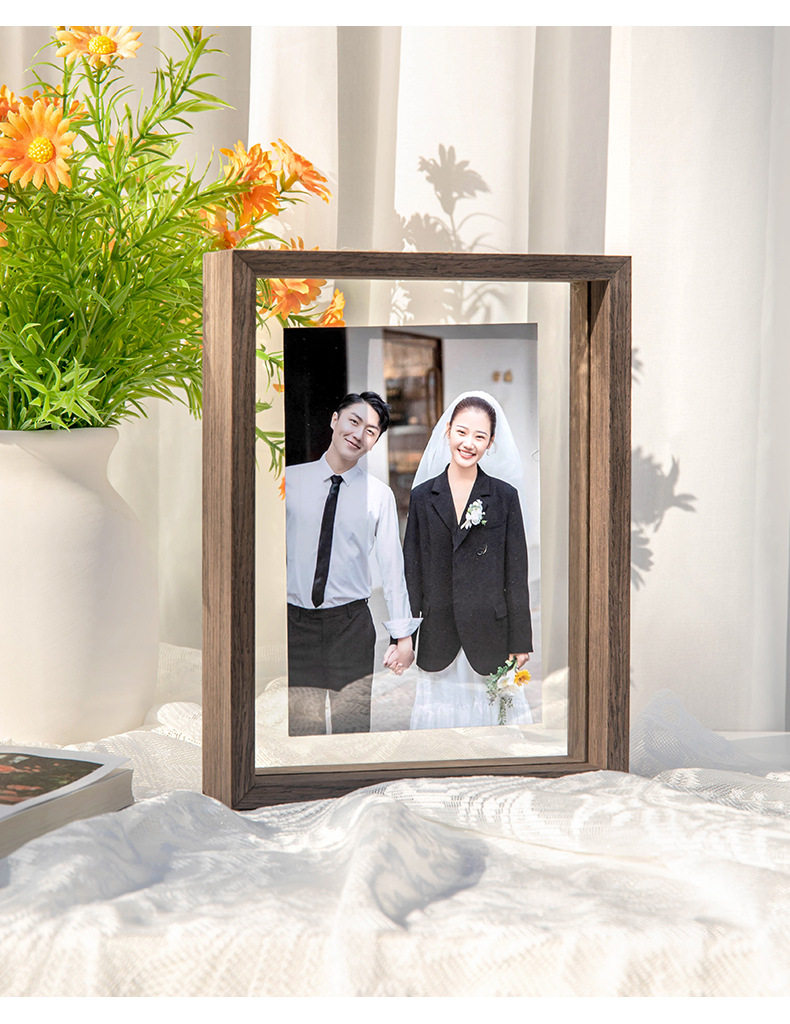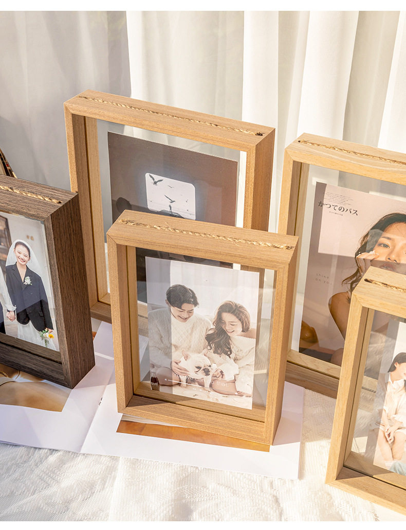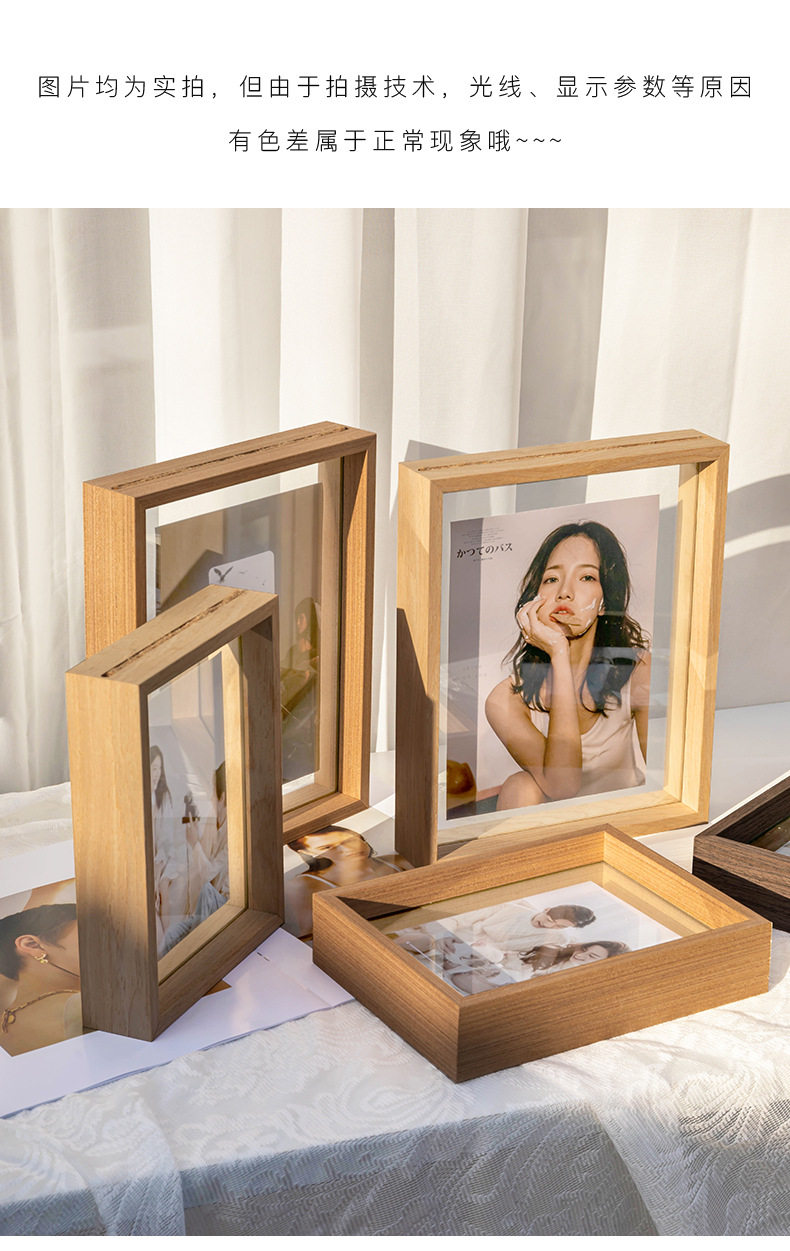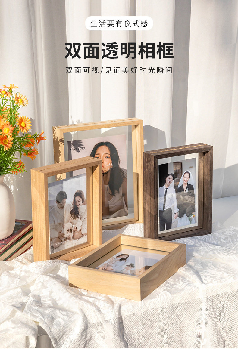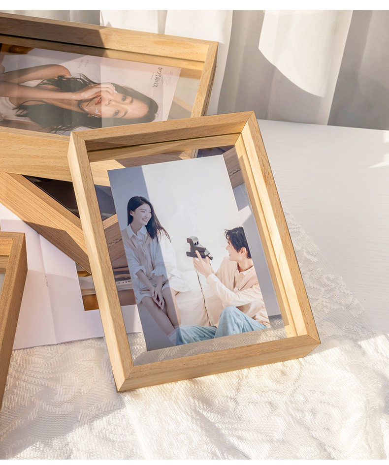 Solid Wood Texture Photo Frame Display Stand 6-Inch 8 Embossed Double-Sided Glass Photo Frame Album Specimen Frame Transparent Solid Wood Photo Frame