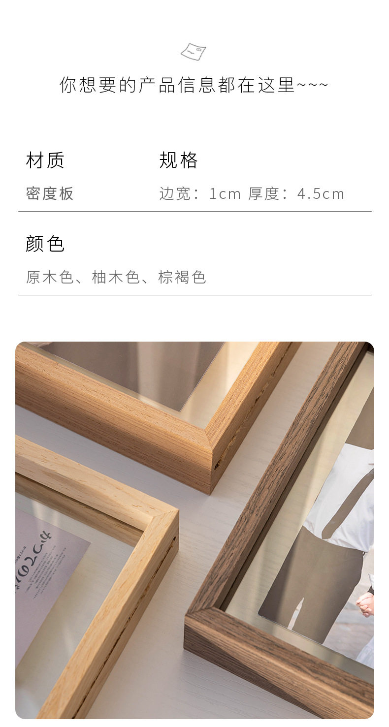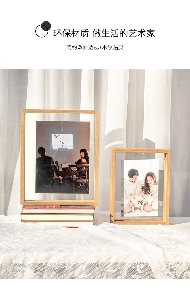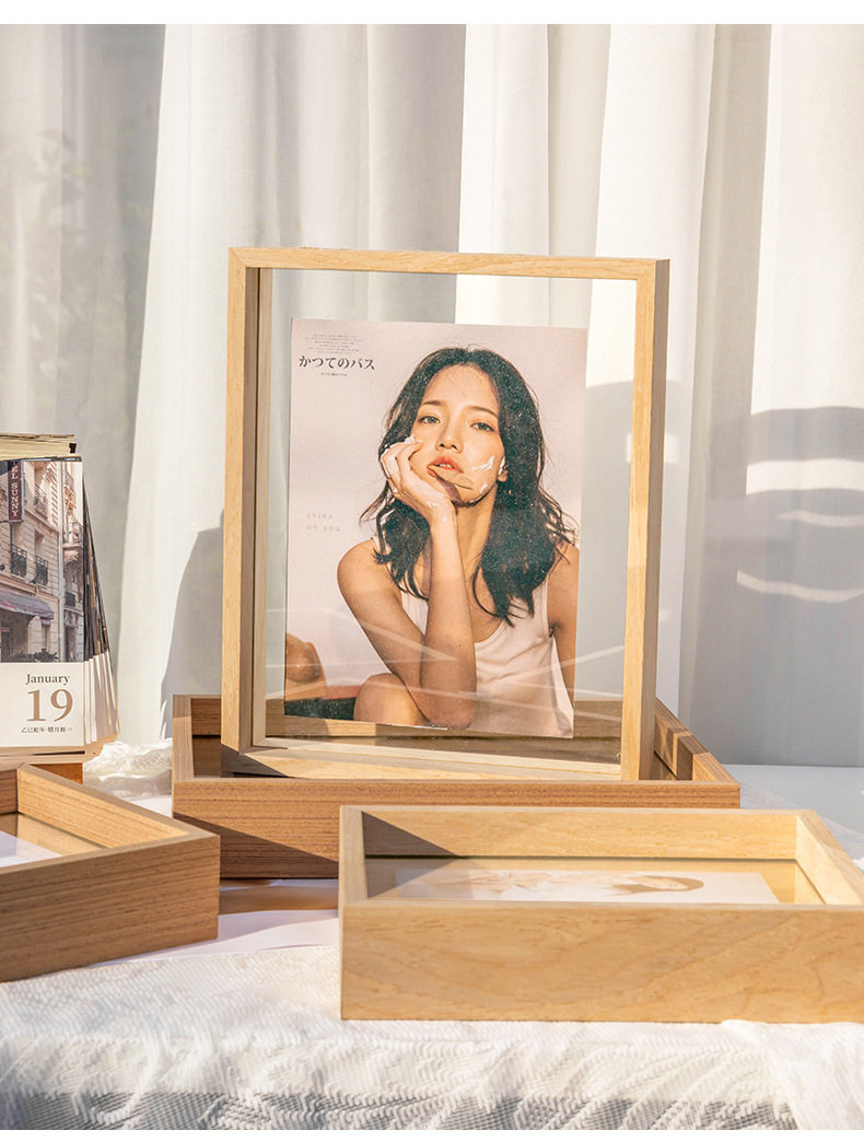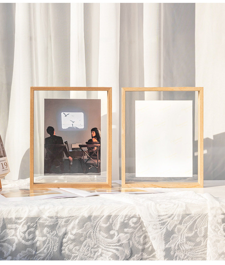 Solid Wood Texture Photo Frame Display Stand 6-Inch 8 Embossed Double-Sided Glass Photo Frame Album Specimen Frame Transparent Solid Wood Photo Frame