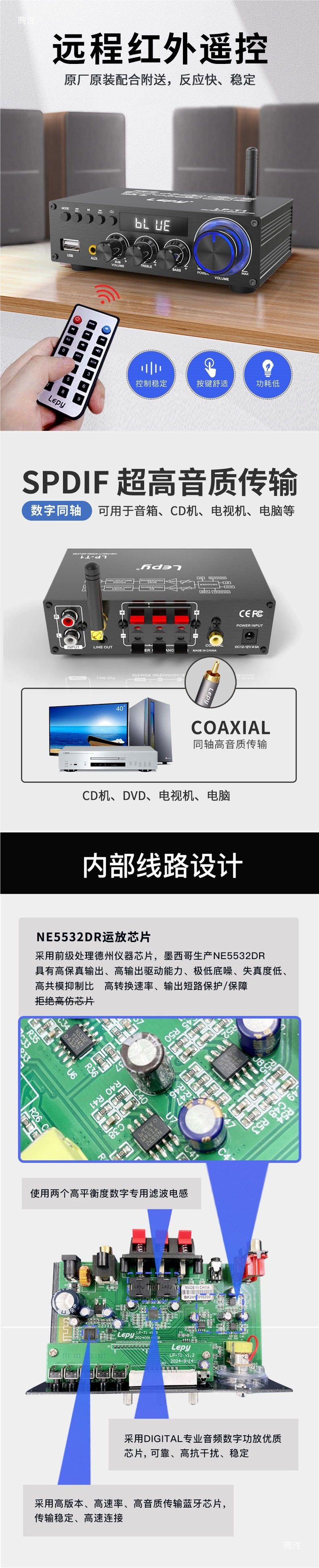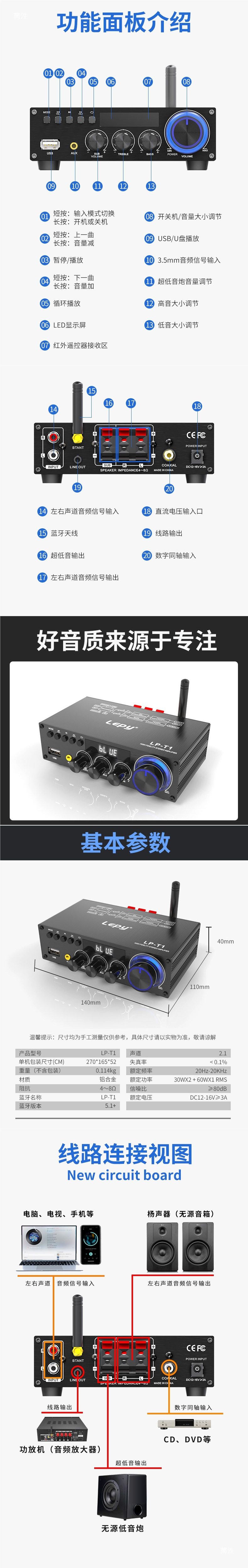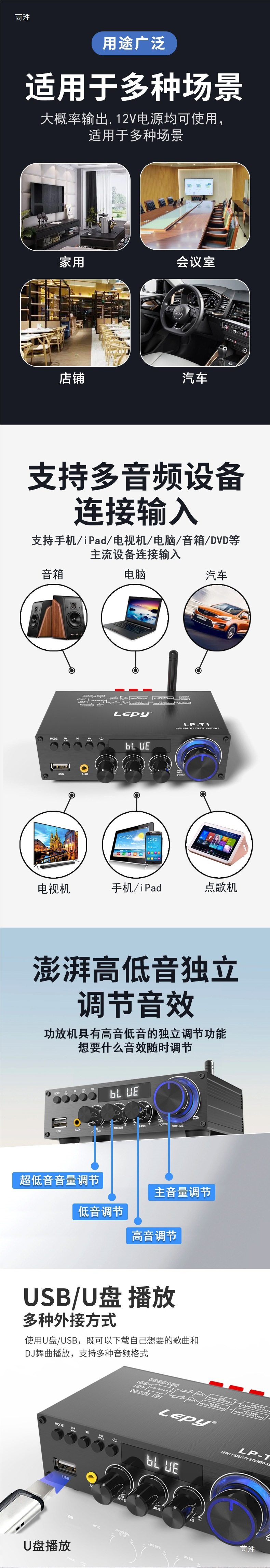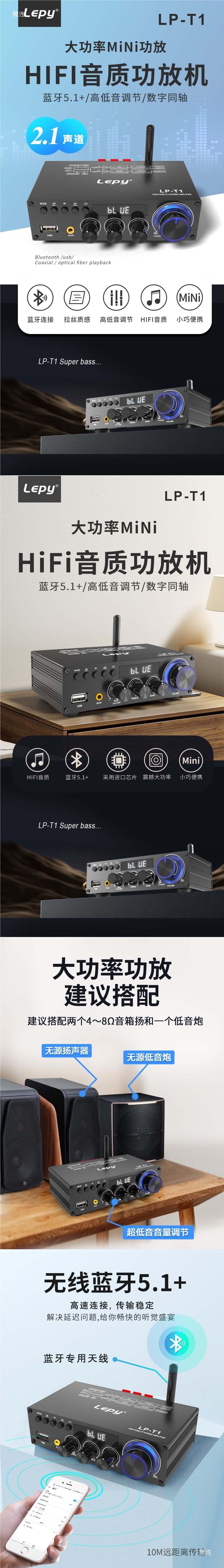 Lepy5.1 Bluetooth Digital Stereo Power Amplifier 2.1 Channel Coaxial USB Disk Lossless Playback Subwoofer t Other