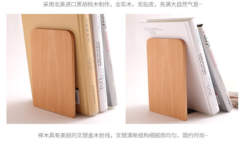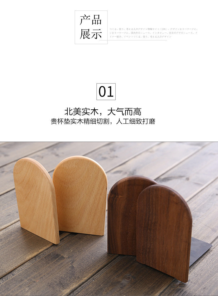 Japanese-Style Minimalist Wooden Bookend Creative Black Walnut Thickened Bookshelf Book Support for Students Solid Wood Book Holder