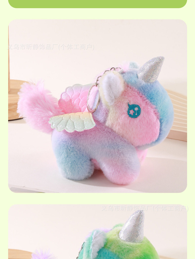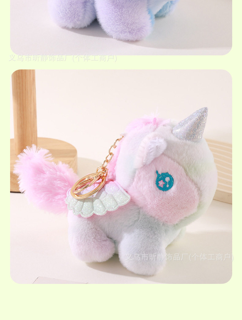 New Cartoon Colorful Unicorn Doll Bag Pendant Cute Plush Angel Pony Keychain Pendant Wholesale