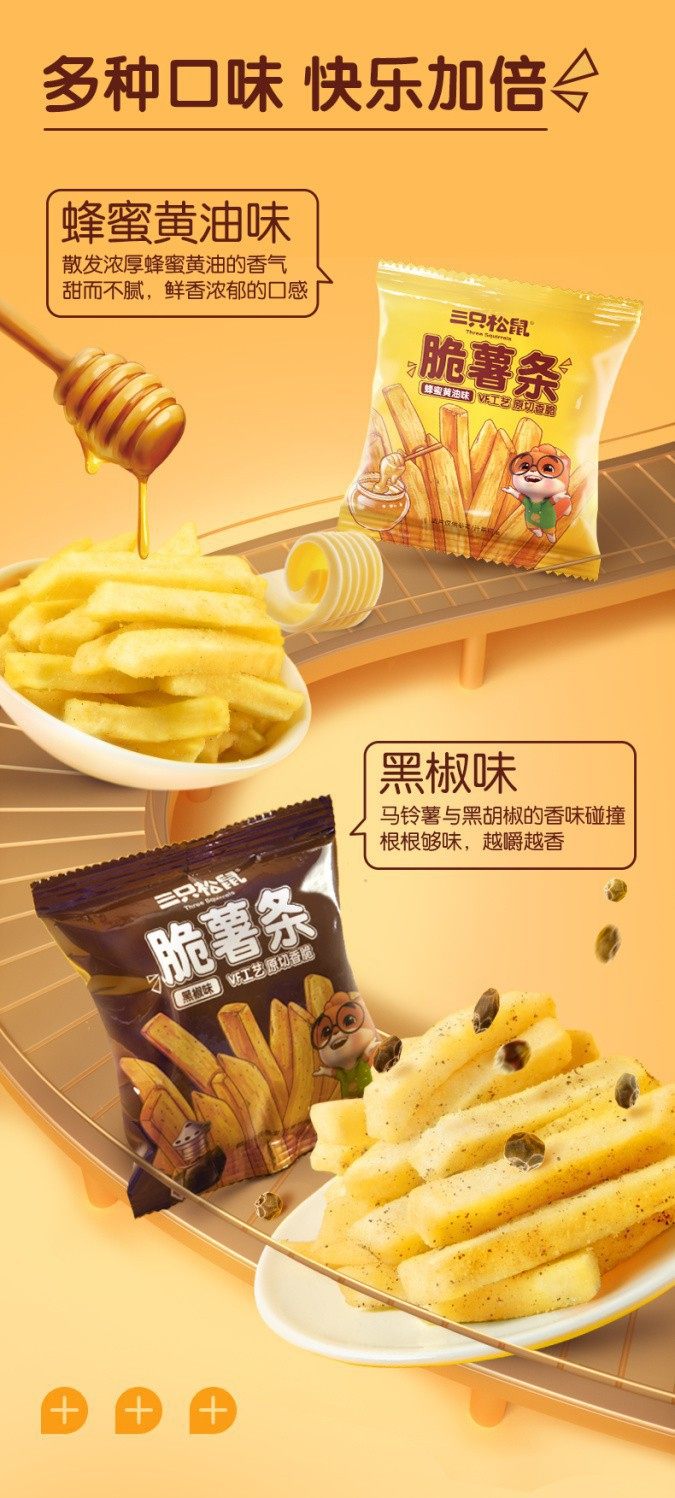 Three Squirrels Crispy French Fries 18Gx20 Bags Dormitory Internet Celebrity Casual Snacks Non-Puffed Crispy Potato Strips Wholesale
