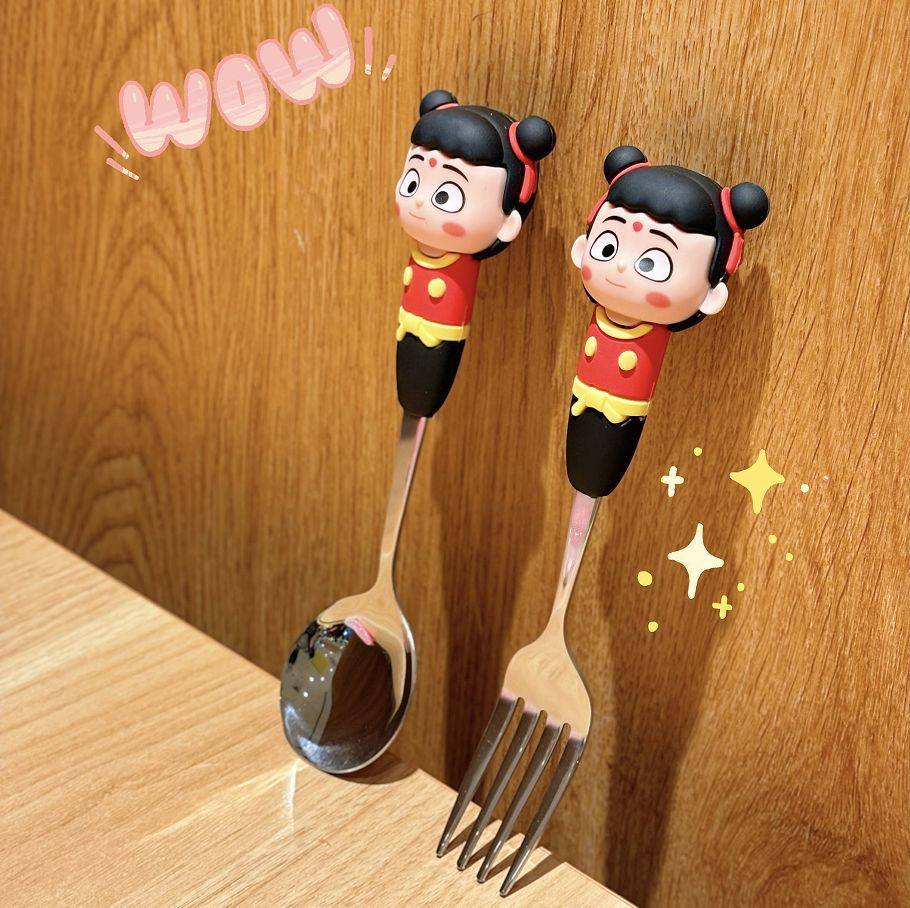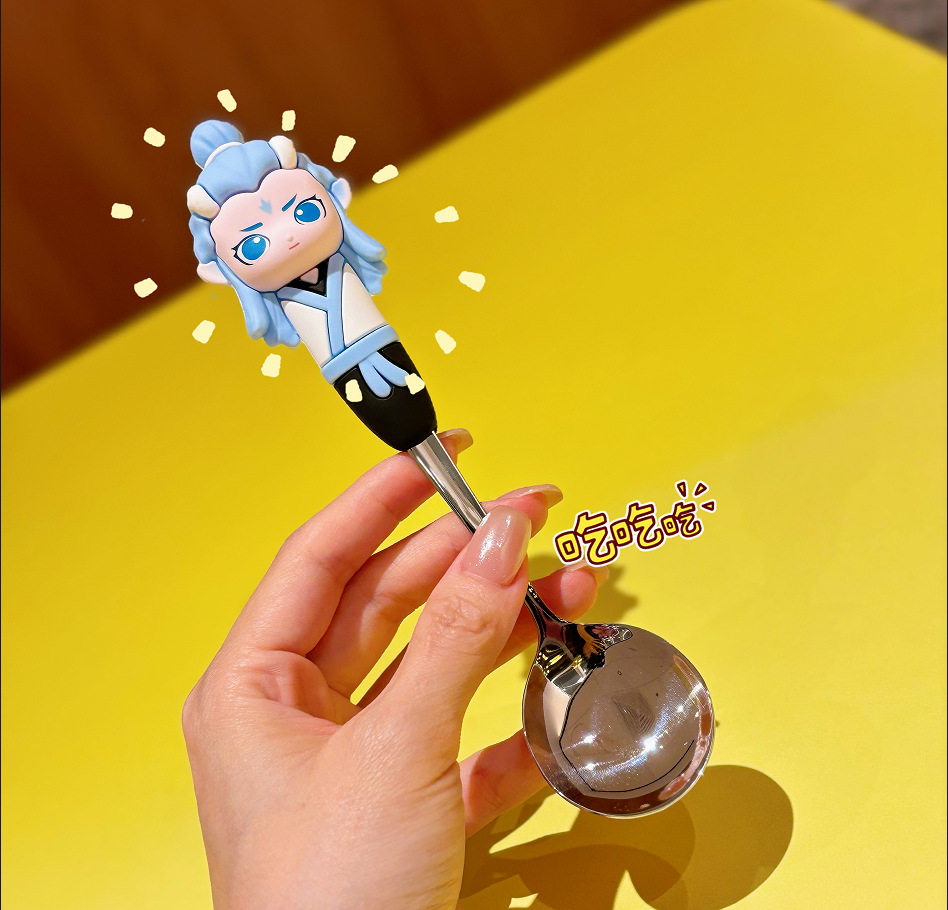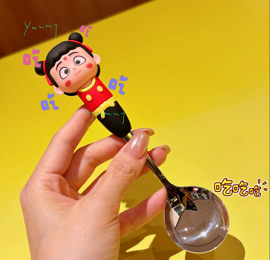 304 Stainless Steel Nezha Ip Children's Dessert Spoon, Safe National Style Design, Cross-Border In-Stock 48H Delivery for Feeding