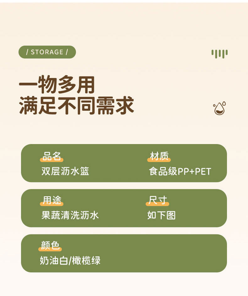 | Color | Beige double-layer drain basket small [pp+pet],Purple double-layer drain basket small [pp+pet],Green double-layer drain basket small [pp+pet],Beige double-layer drain basket medium size [pp+pet],Purple double-layer drain basket medium size [pp+pet],Green double-layer drain basket medium size [pp+pet],Beige double-layer drain basket large [pp+pet],Purple double-layer drain basket large [pp+pet],Green double-layer drain basket large [pp+pet],Beige double-layer drain basket small and medium [pp+pet],Purple double-layer drain basket small and medium [pp+pet],Green double-layer drain basket small and medium size [pp+pet],Beige double-layer drain basket large and medium [pp+pet],Purple double-layer drain basket large and medium [pp+pet],Green double-layer drain basket large and medium [pp+pet],Beige double-layer drain basket large, medium and small [pp+pet],Purple double-layer drain basket large, medium and small [pp+pet],Green double-layer drain basket large, medium and small [pp+pet] |