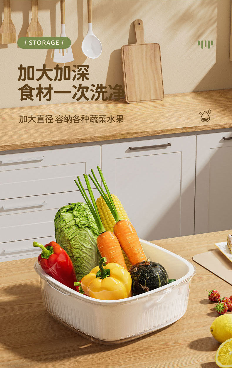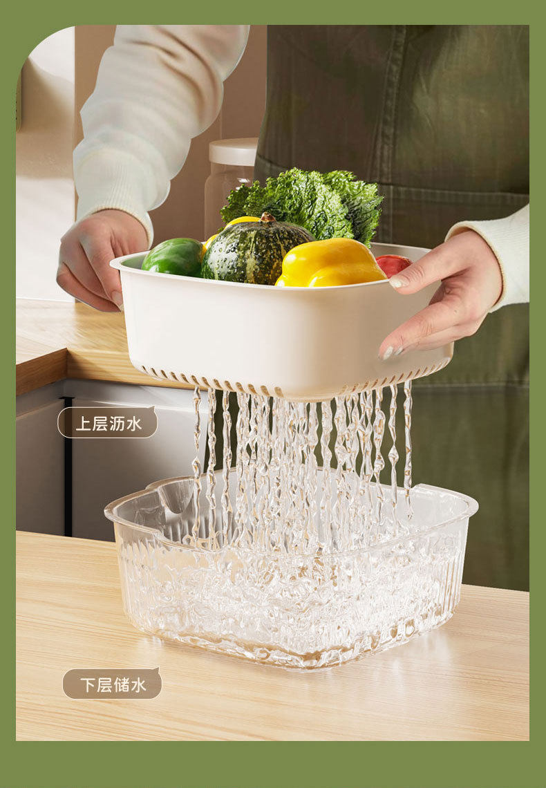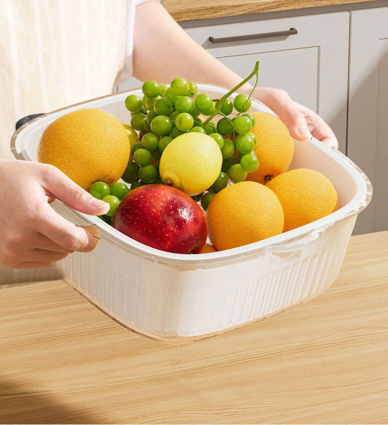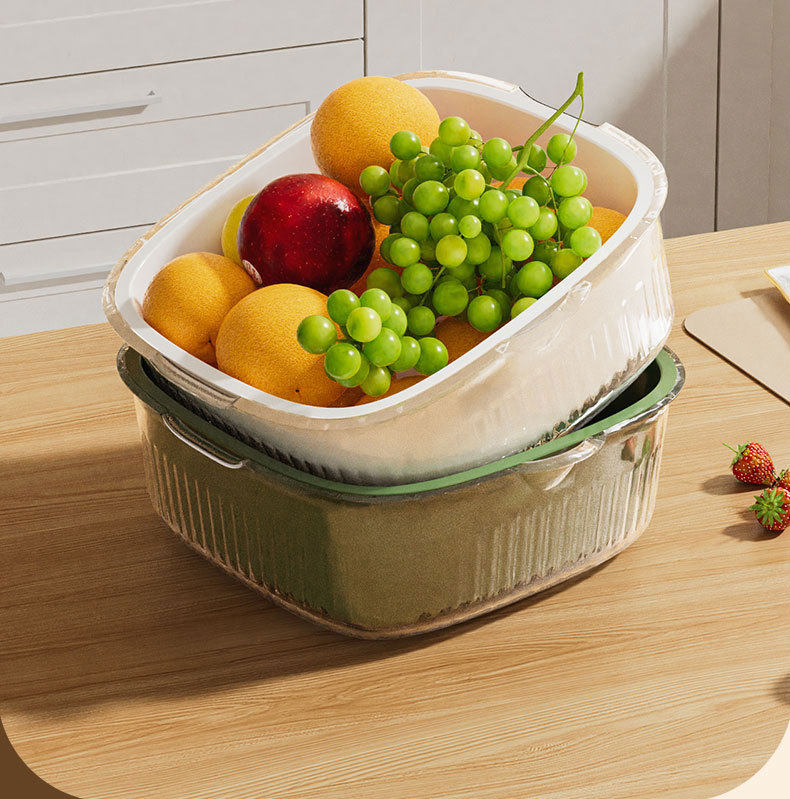 Double-Layer Vegetable Washing Basin with Draining Basket, Kitchen Household Plastic Fruit Tray, Living Room Thickened Sink Water Filter Vegetable Basket