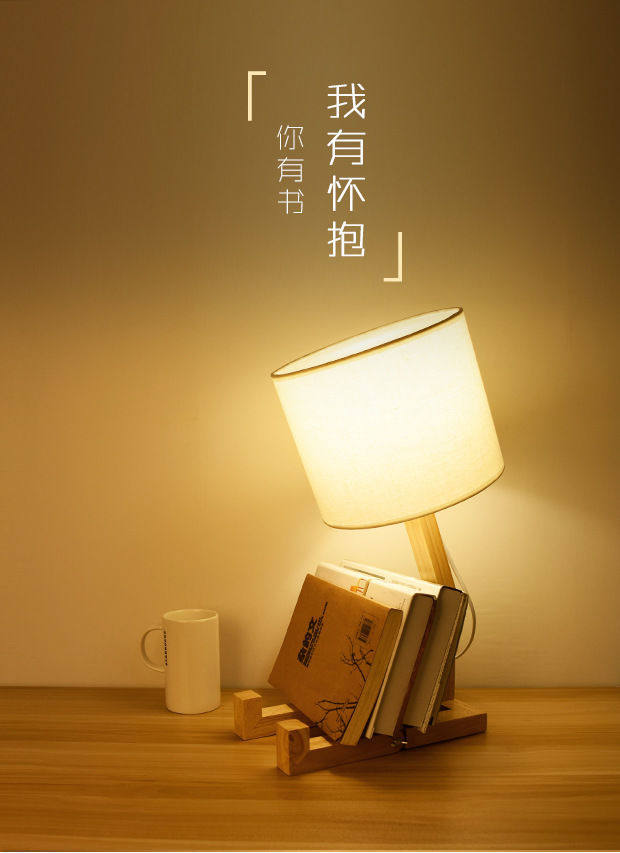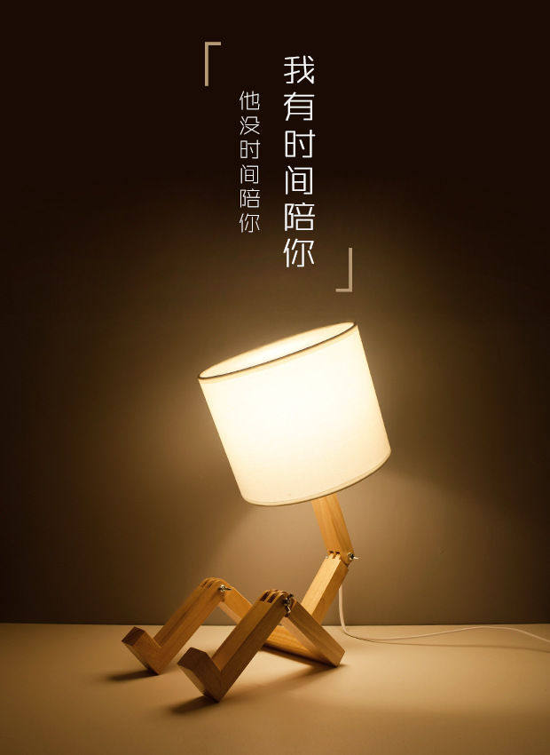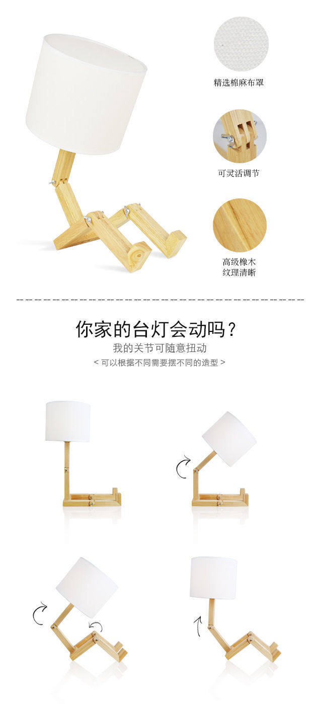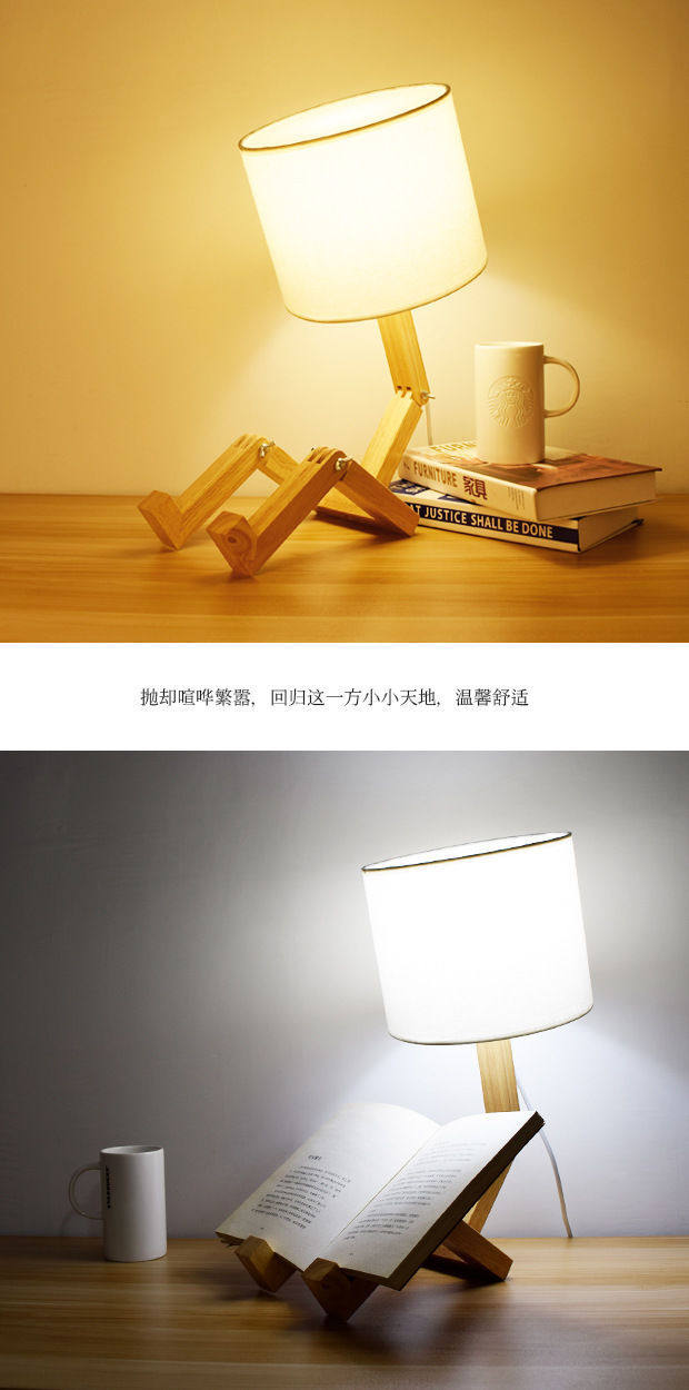Humanoid Robot Japanese-Style Personalized Table Lamp Creative Lamp Solid Wood Simple Nordic Art Bedroom Bedside Lamp