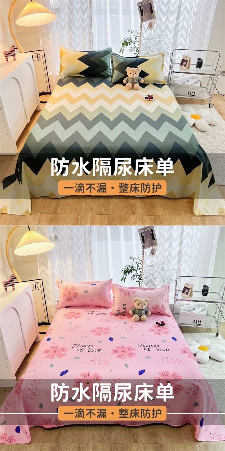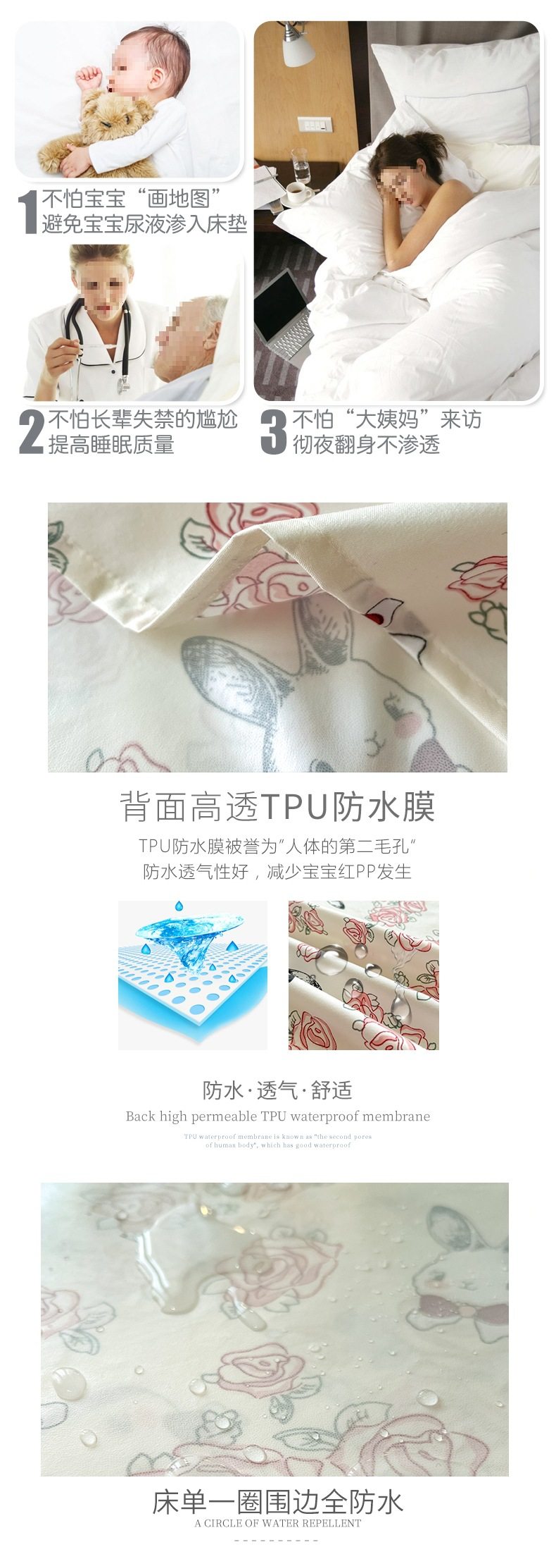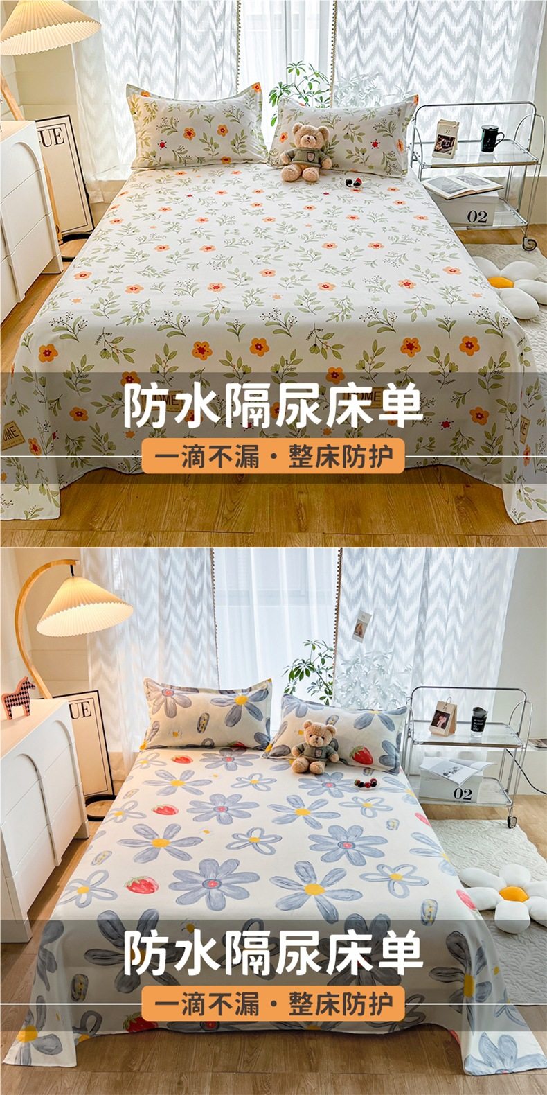 | Specifications | Waterproof diaper bed sheet-160x230cm,Waterproof diaper bed sheet-200x230cm,Waterproof diaper bed sheet-250x230cm,160x230cm waterproof sheets + pillowcase pair,200x230cm waterproof sheets + pair of pillowcases,250x230cm waterproof sheets + pair of pillowcases |