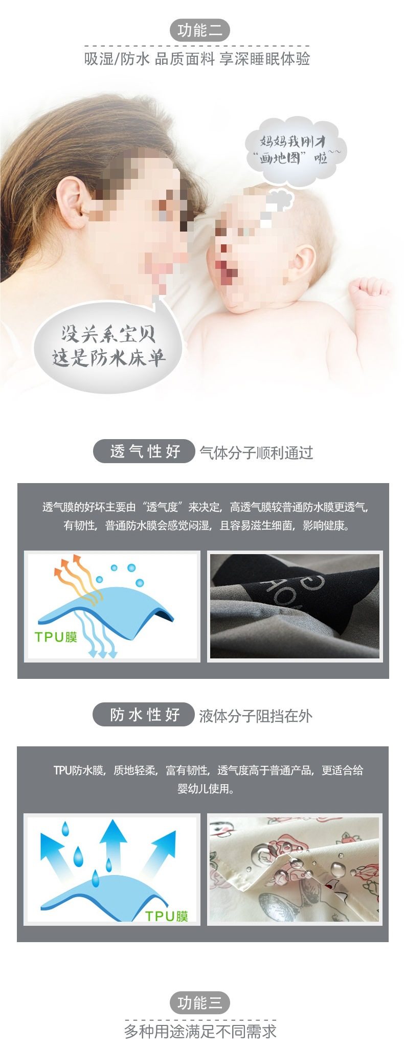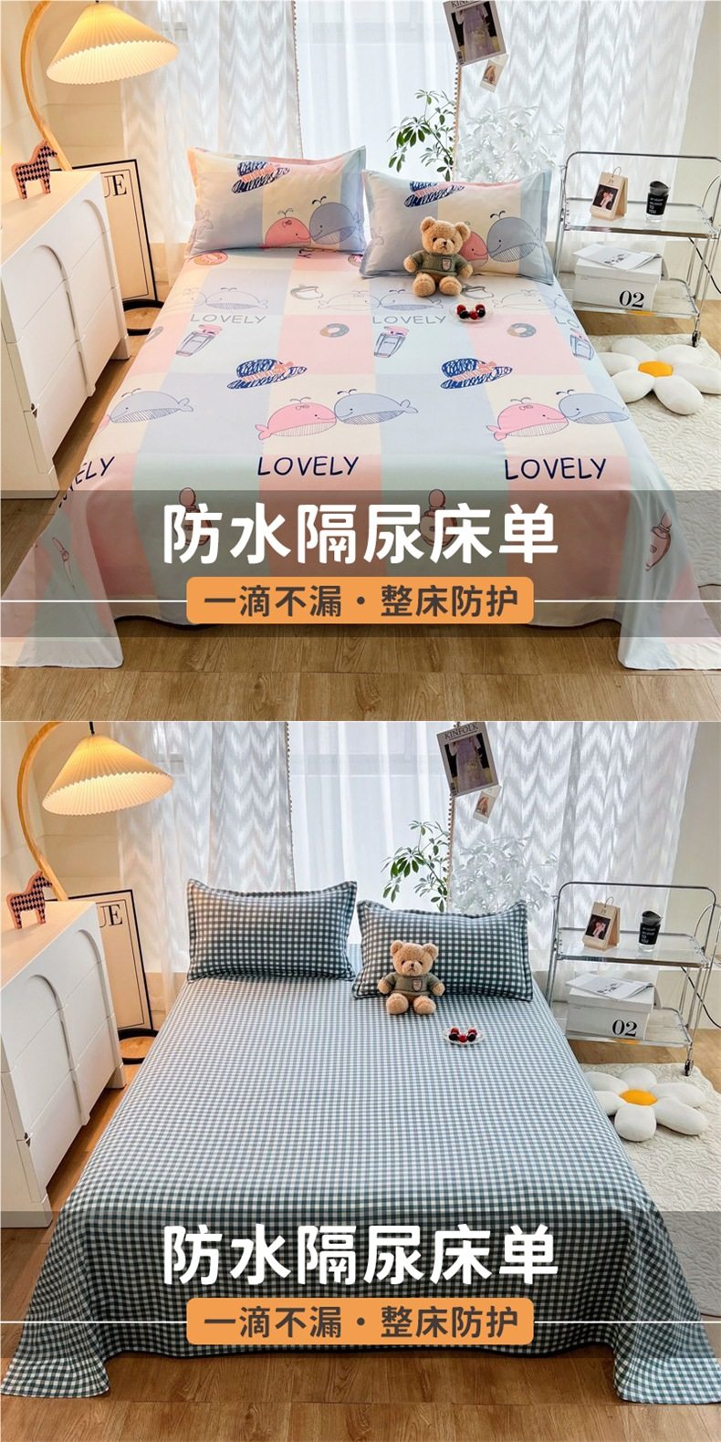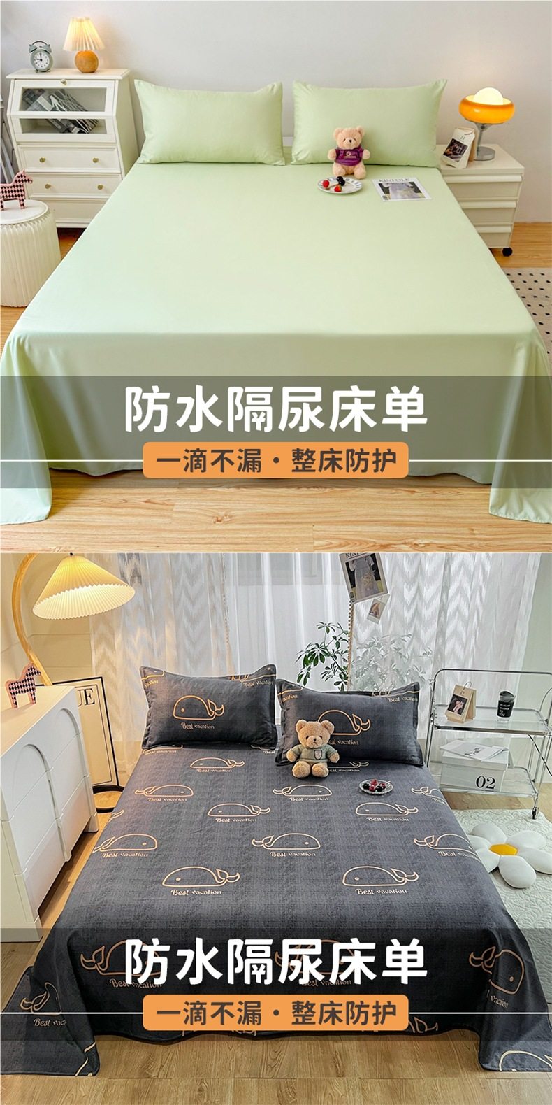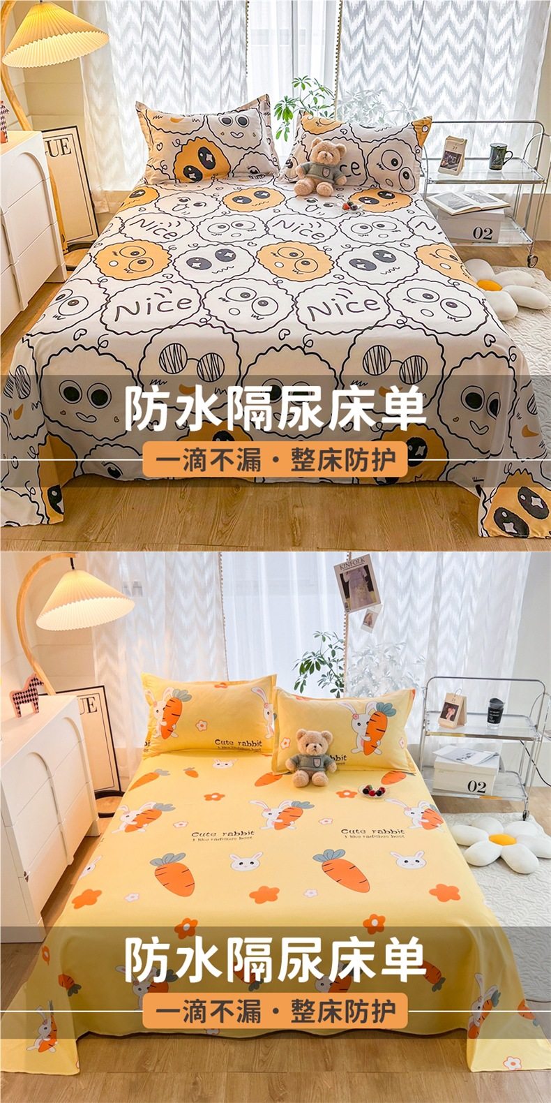 | Specifications | Waterproof diaper bed sheet-160x230cm,Waterproof diaper bed sheet-200x230cm,Waterproof diaper bed sheet-250x230cm,160x230cm waterproof sheets + pillowcase pair,200x230cm waterproof sheets + pair of pillowcases,250x230cm waterproof sheets + pair of pillowcases |
