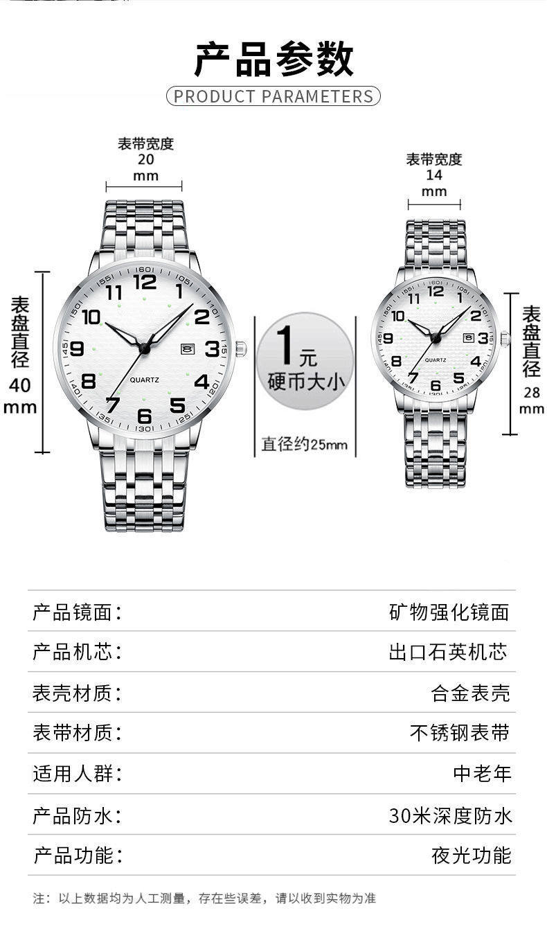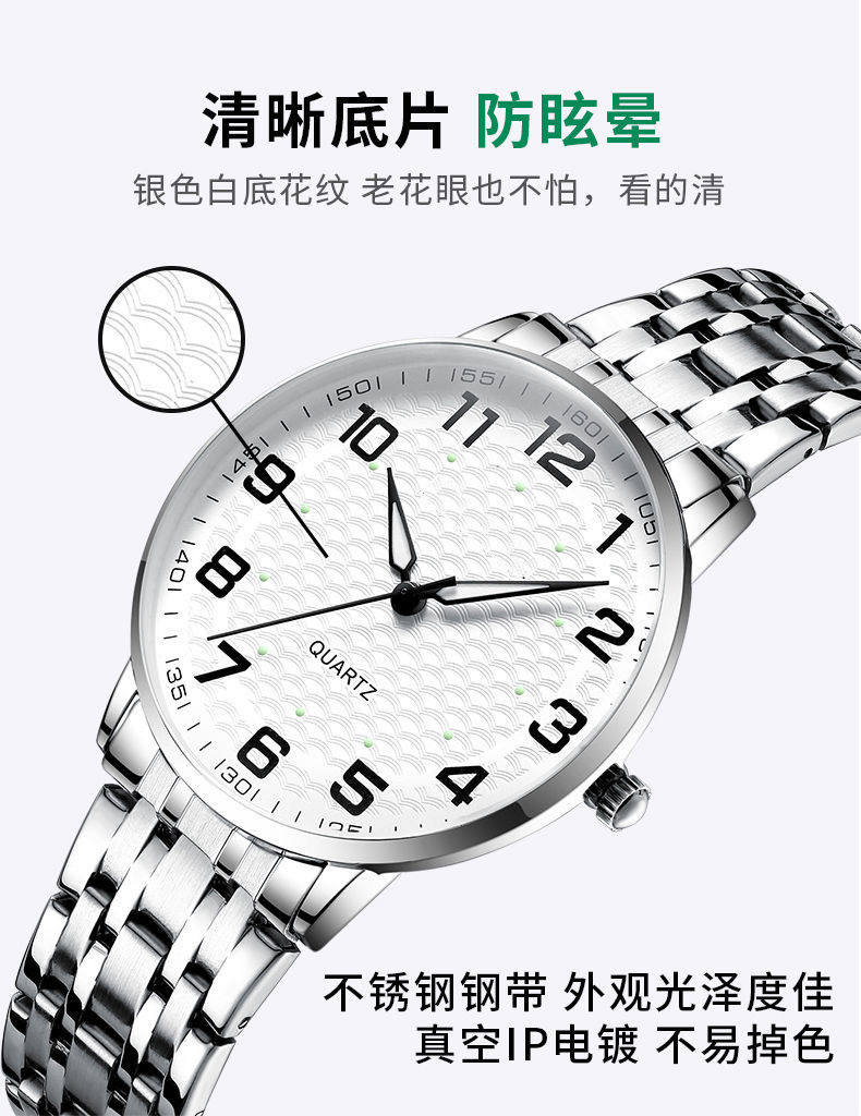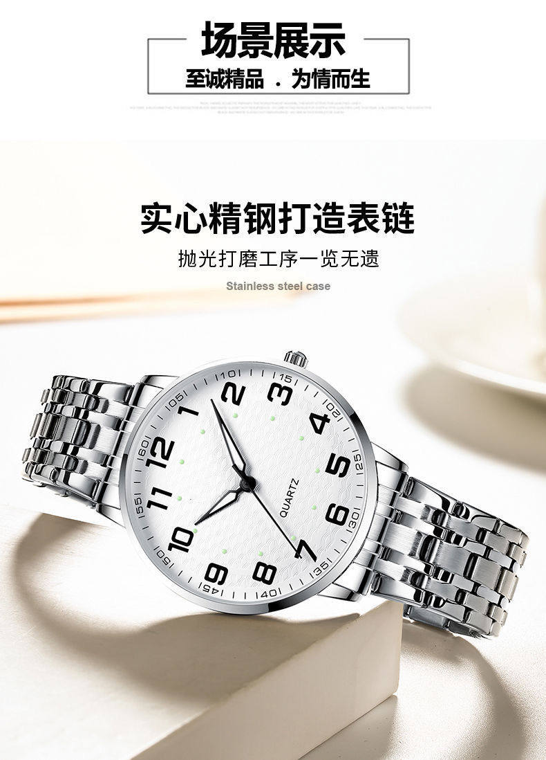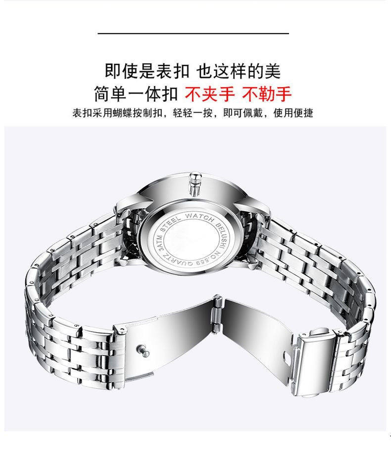 | Color | Men's silver shell and white surface - tight steel belt [imported watch movement + enhanced luminous],Men's silver case - tight spring strap [imported watch movement + enhanced luminous],Women's silver shell white surface - tight steel belt [imported watch movement + enhanced luminous],Women's silver case - tight spring strap [imported watch movement + enhanced luminous] |
