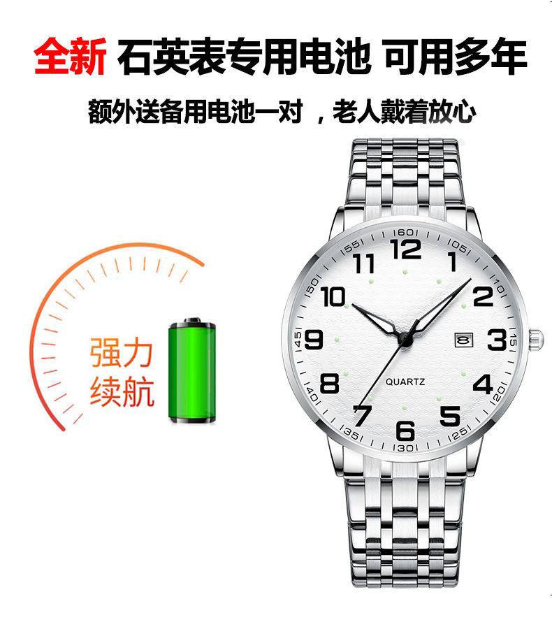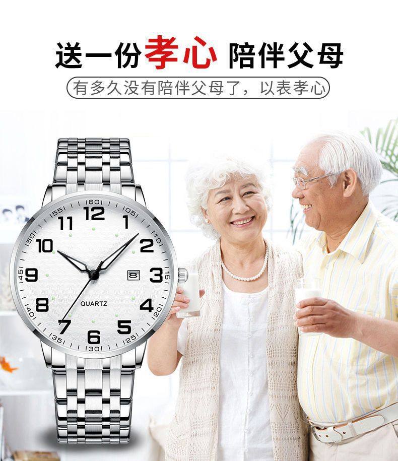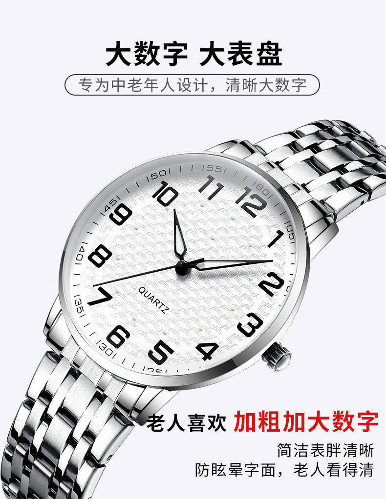 Elderly Men's and Women's Watches with Large Characters and Large Dial Waterproof Calendar Luminous Middle-Aged and Elderly Watches Can Be Used in Beijing