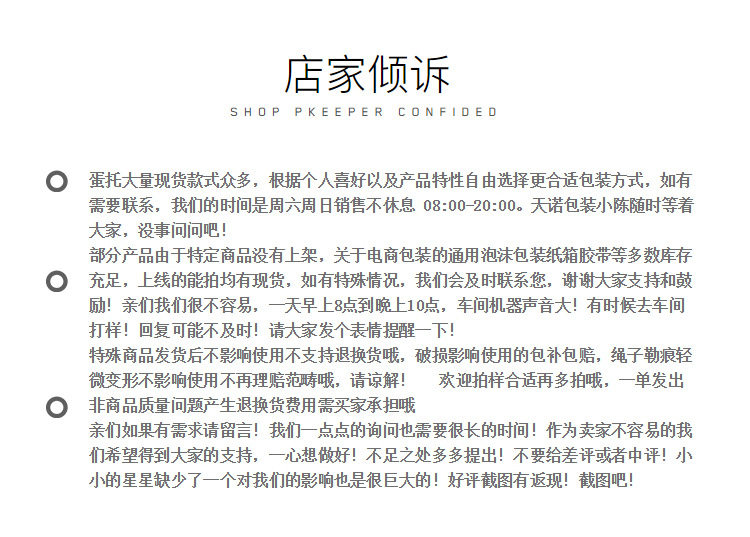 | Specifications | Large hole round hole 30 pieces 4 sets,5 sets of 10 large hole duck eggs and salted eggs,One set of round holes for each of 10/20/30,6 sets of 20 round holes can hold 120 pieces,30 large holes and 8 sets of square hole covers,12 sets of 20 round holes can hold 240 hardened pieces,10 large holes and hardened 22 sets,Large hole and round hole 30 pieces 2 sets for trial,20 square holes, 3 sets of stamps,10 pieces of carton-free preserved eggs with 6 sets of small holes,30 large holes, 7 sets of round holes, hardened,22 sets of 10 buckles with large holes,10 buckles, 45*60 small holes, 32 sets |