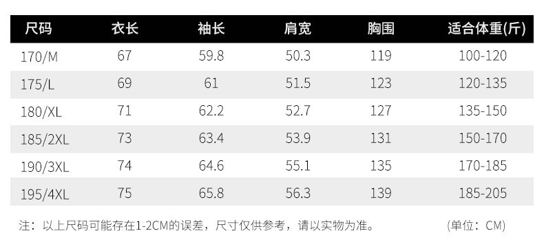 | Size | M / 170,L/175,Xl/180,2xl/185l,3xl/190,4xl/195l |