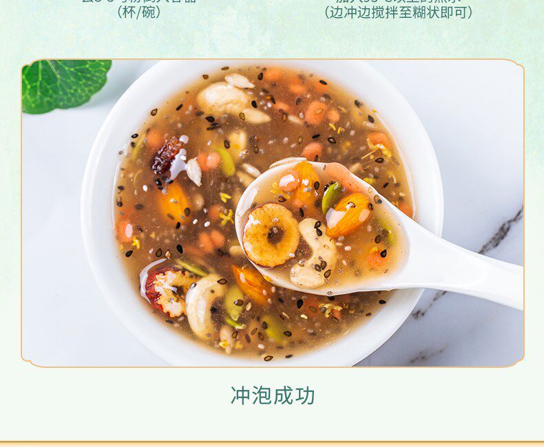| Taste | Red dates, white fungus, nuts and lotus root powder |