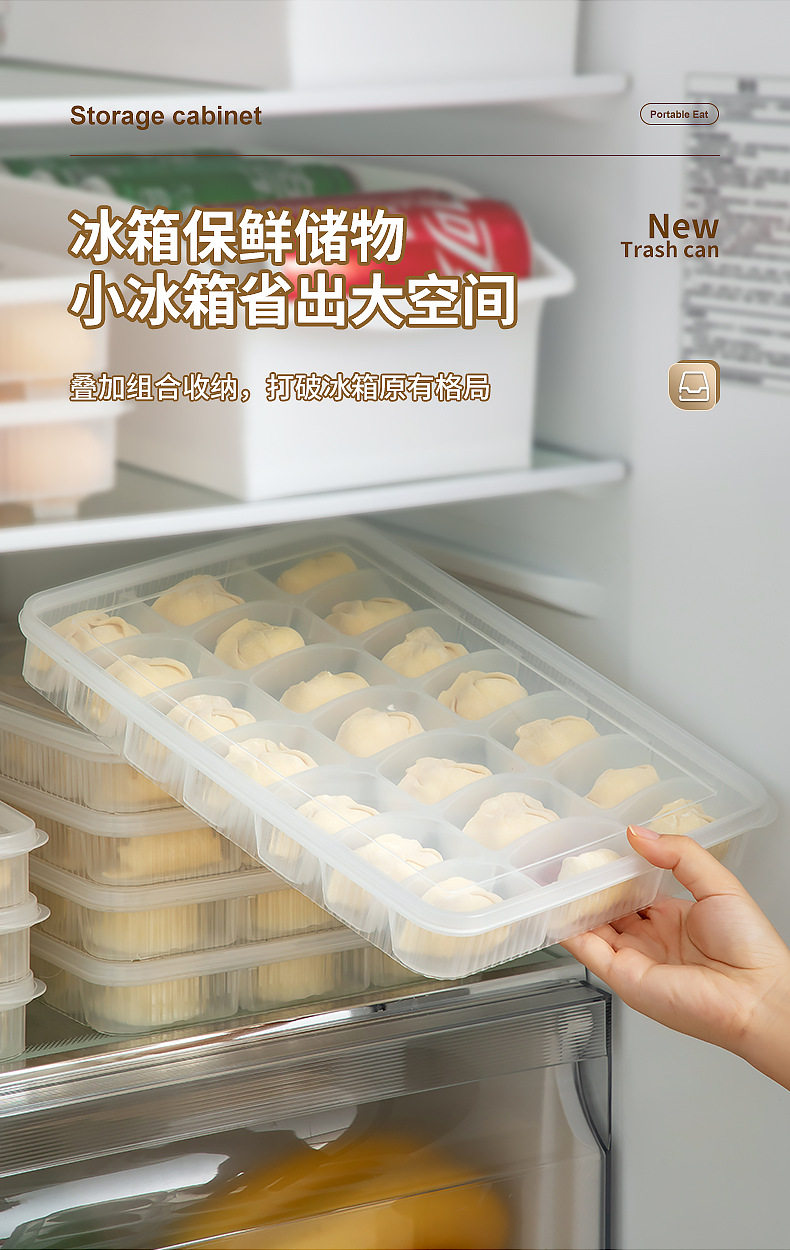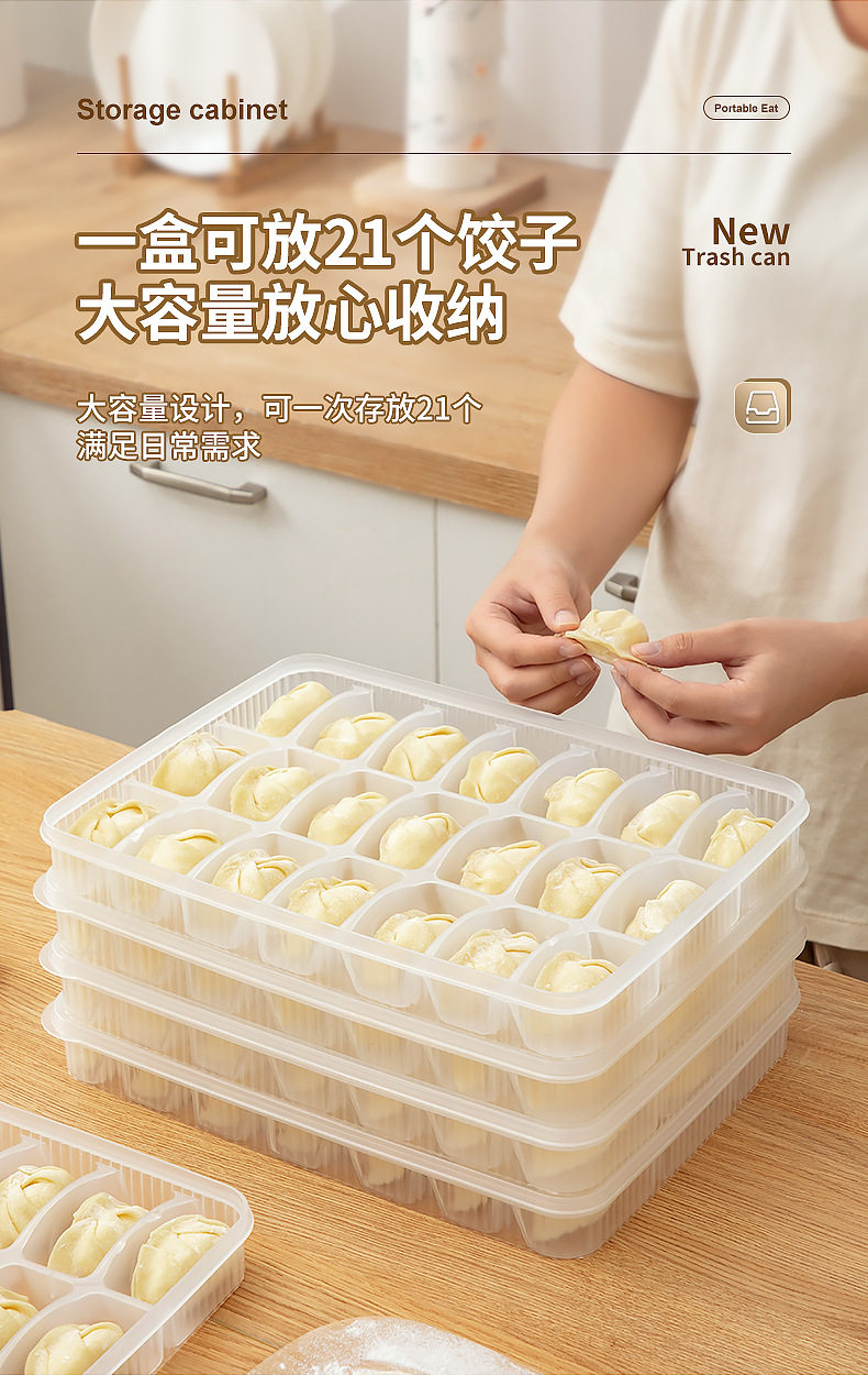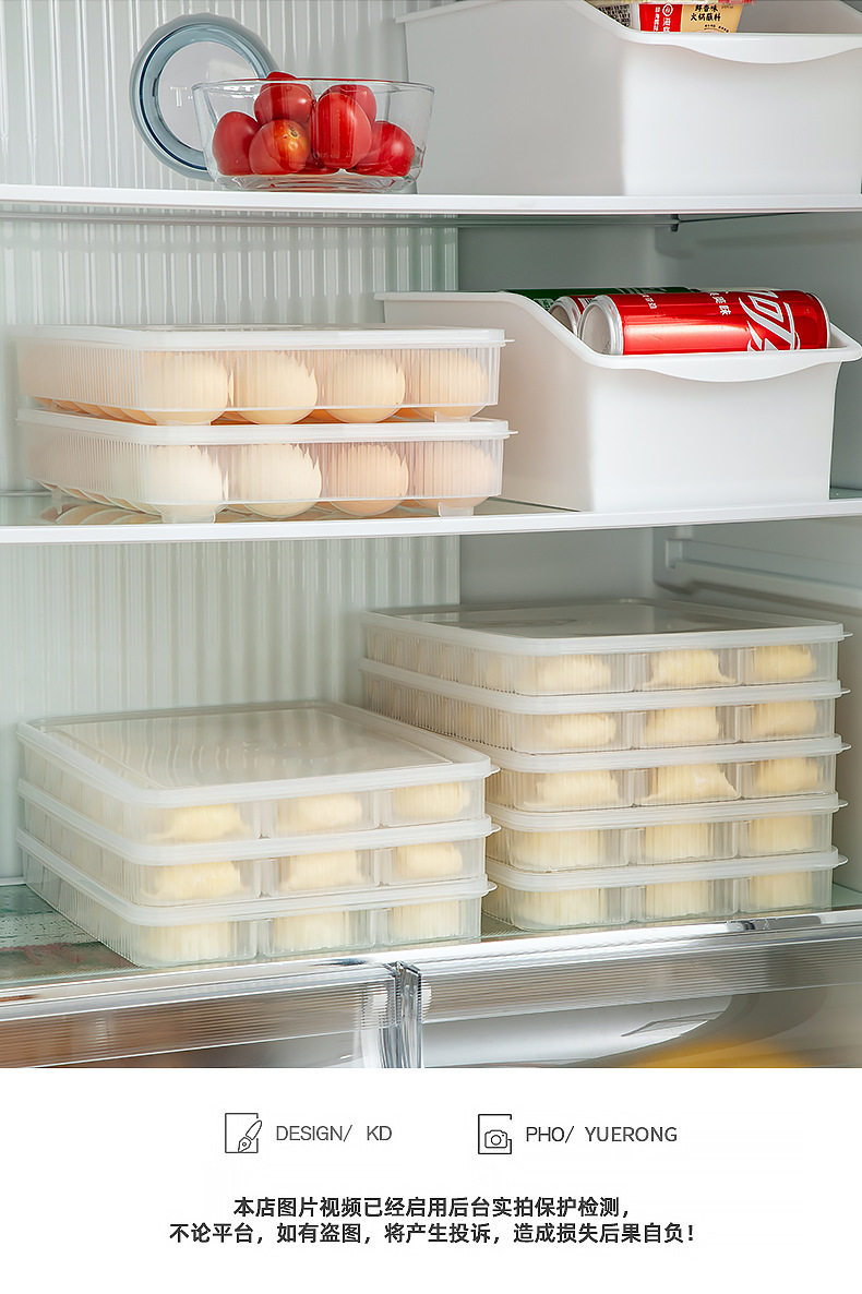 Refrigerator Storage Dumpling Storage Box Transparent Covered Divided Dumpling Box Compartment Fresh-Keeping Food-Grade Dumpling Freezer Box