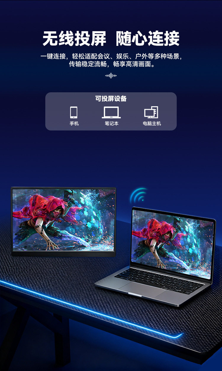 15.6inch Wireless Battery Portable Screen Display Can Wirelessly Project the Screen to Expand Mirroring and Long-Lasting Portable Screen