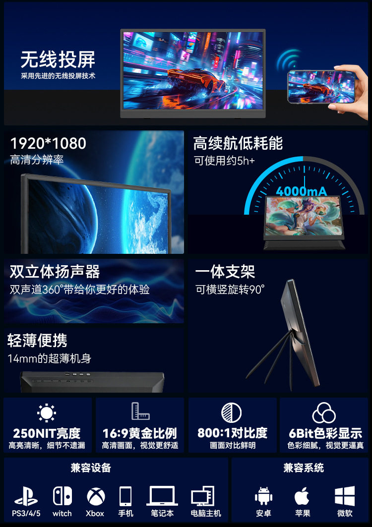 | Size | 15.6inch portable monitor [plug-in model],15.6inch portable monitor [rechargeable model] |