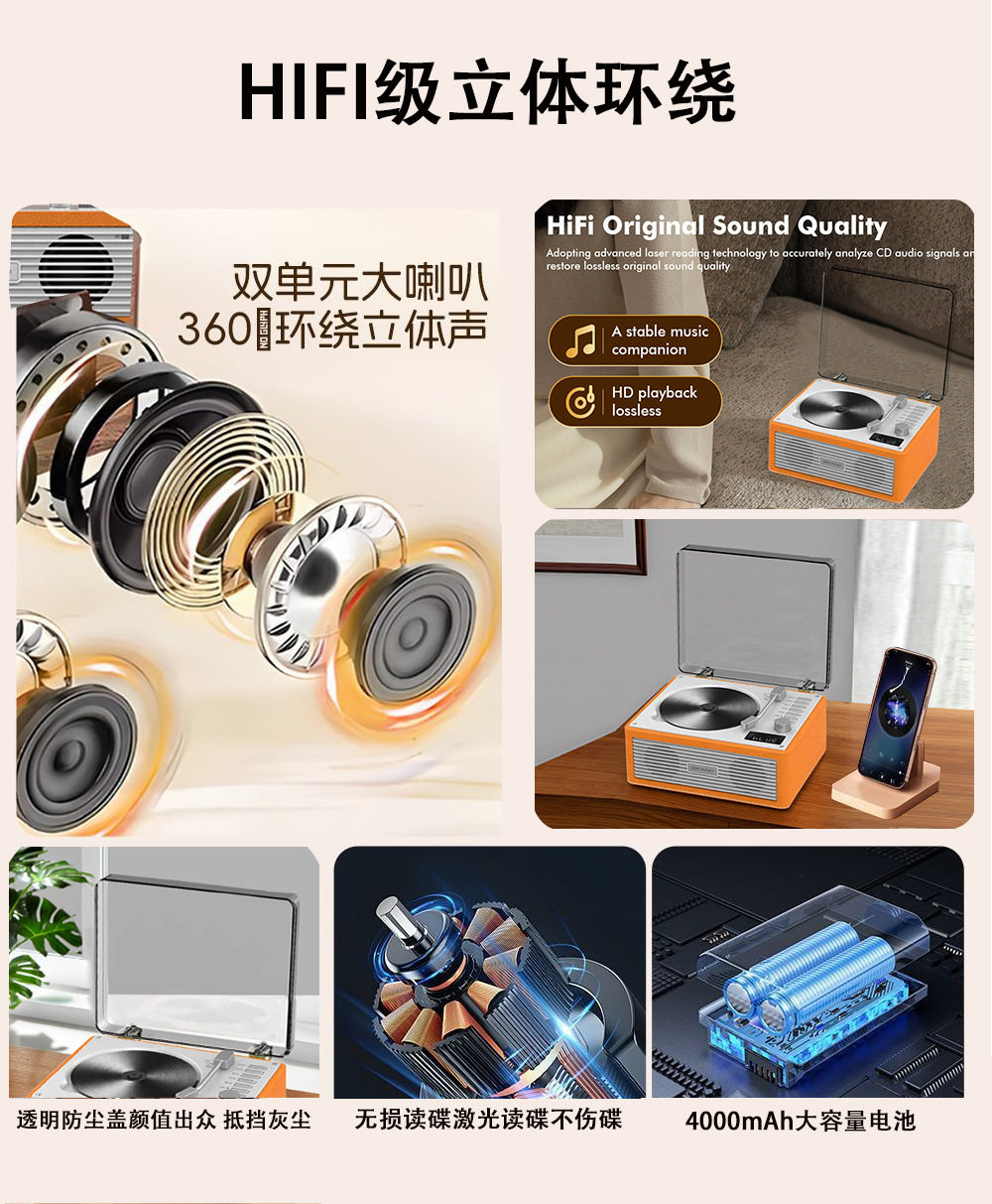 Customized Retro Cd Player Bluetooth Speaker Music Album Player Portable Home Audio Disc Player