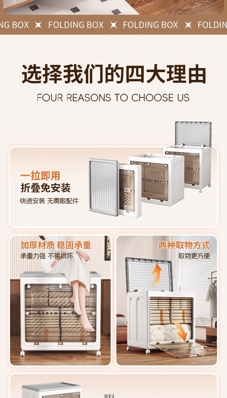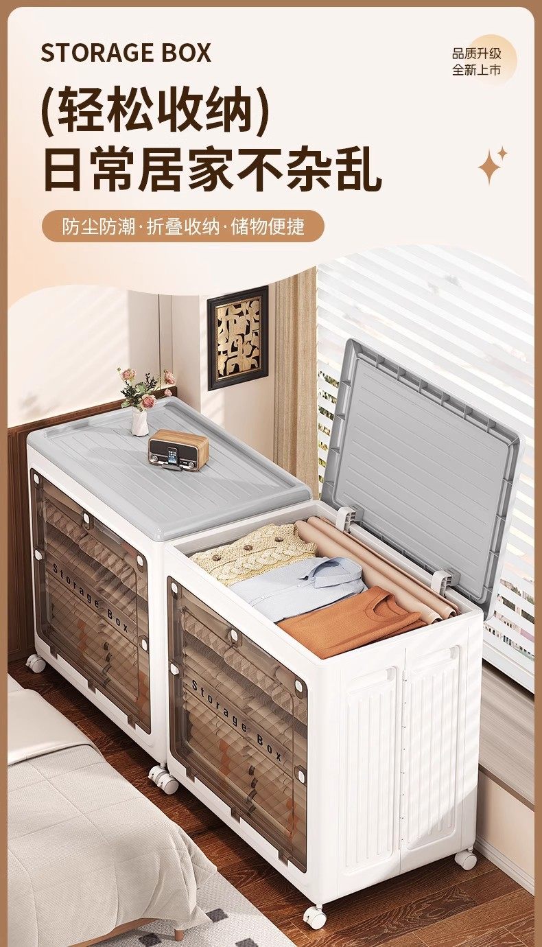 Clothes Storage Box Extra Large Capacity Household Flip-Top Wheeled Sliding Foldable Storage Cabinet Multi-Functional Organizing Storage Cabinet