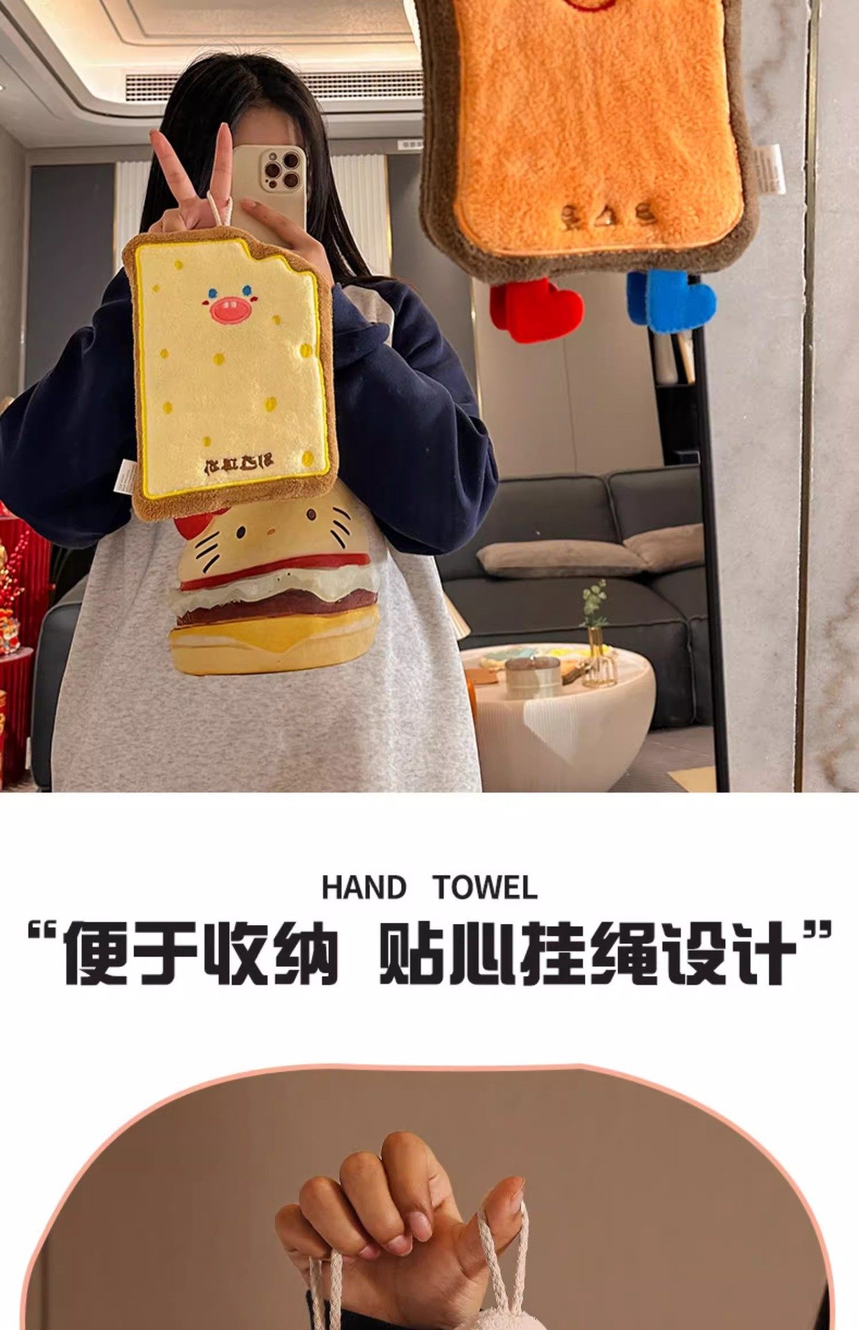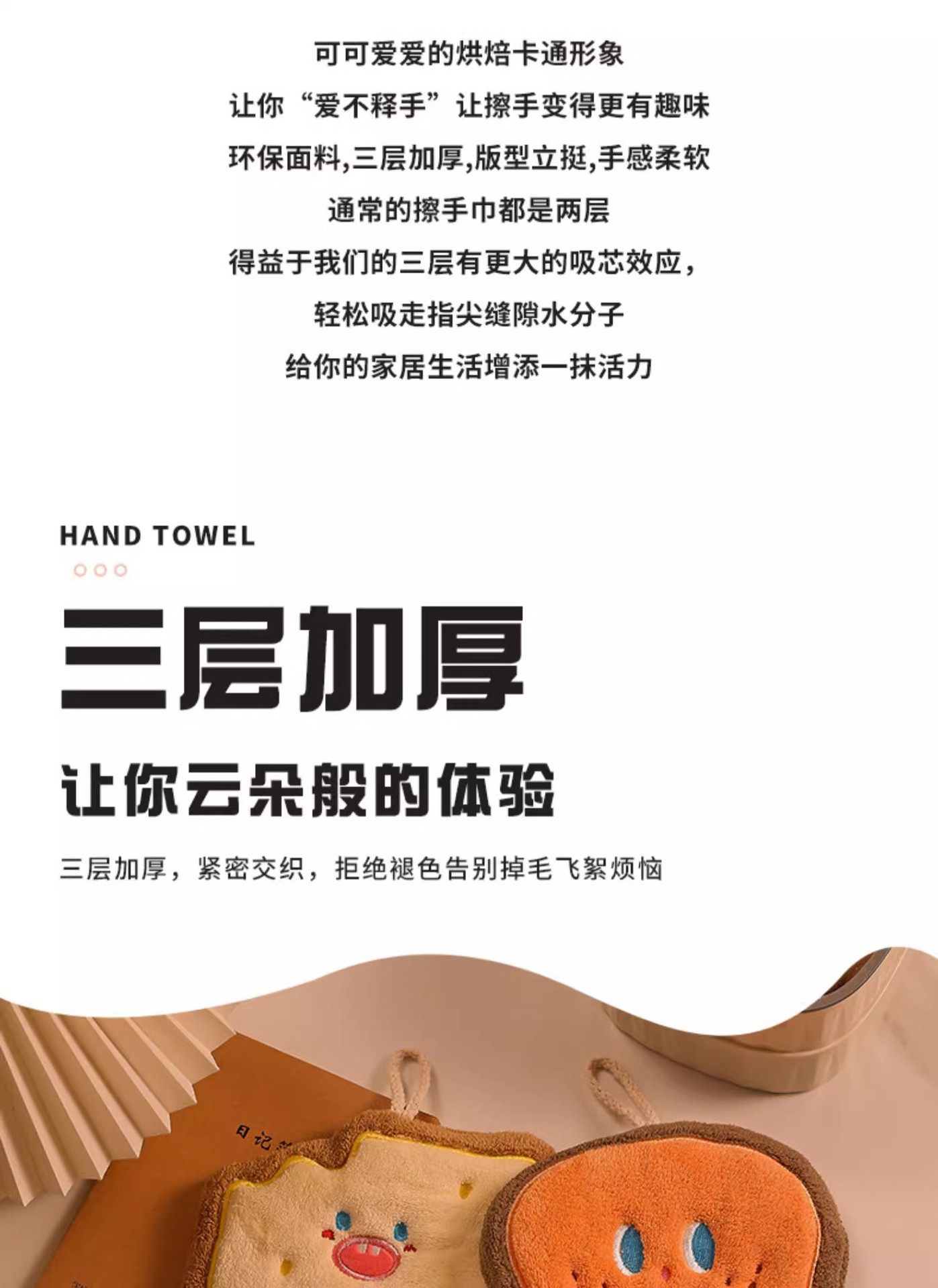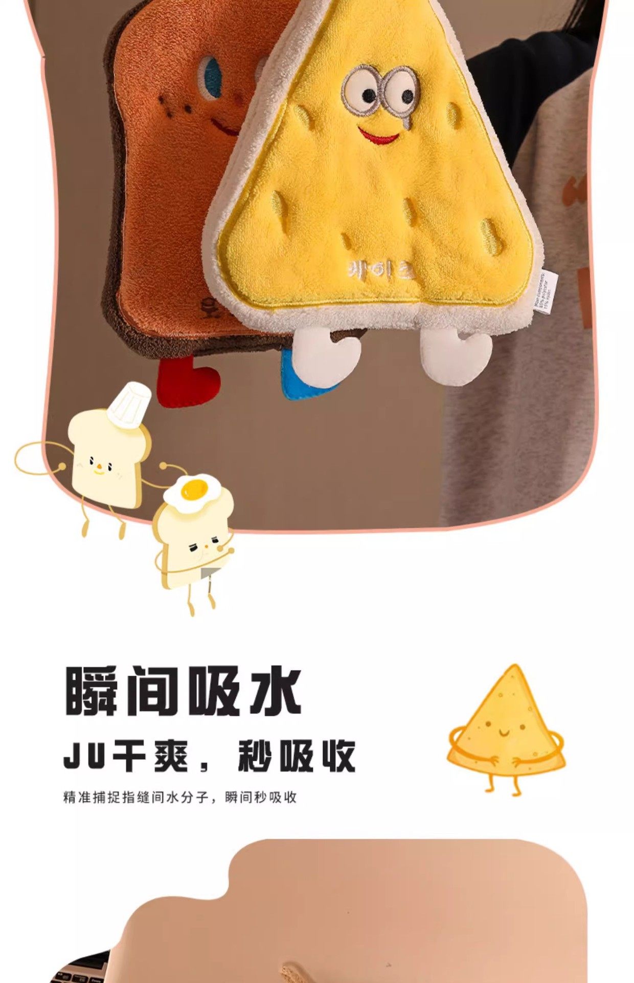 Cute Hand Towel Hanging Absorbent Thickened Bathroom Cartoon Handkerchief Towel Small Square Towel Kitchen Rag