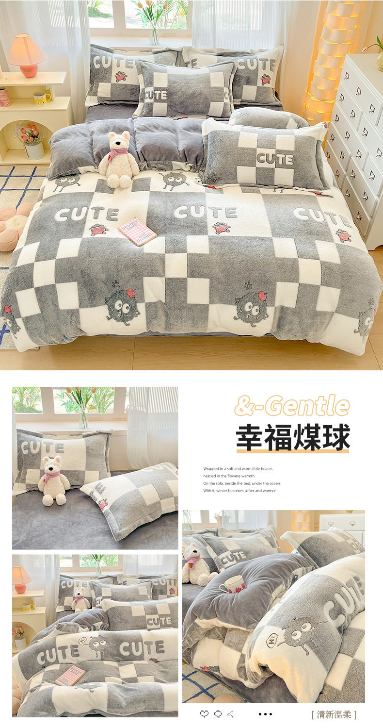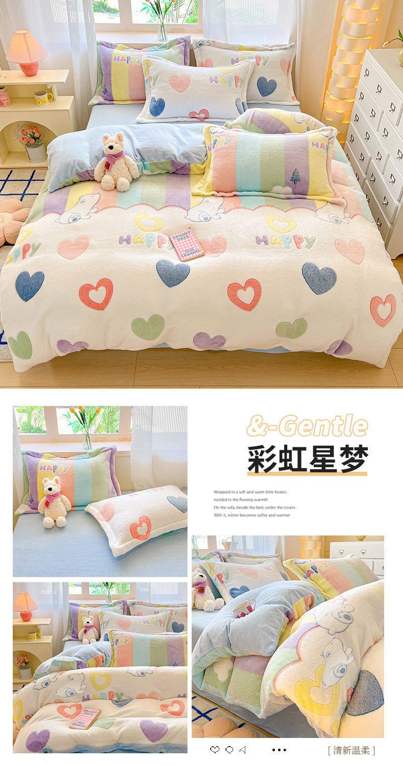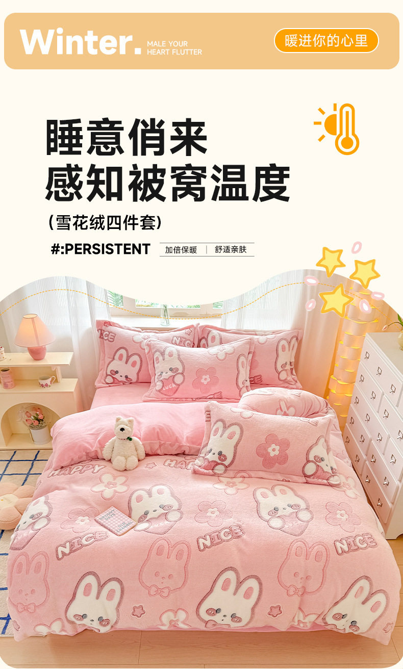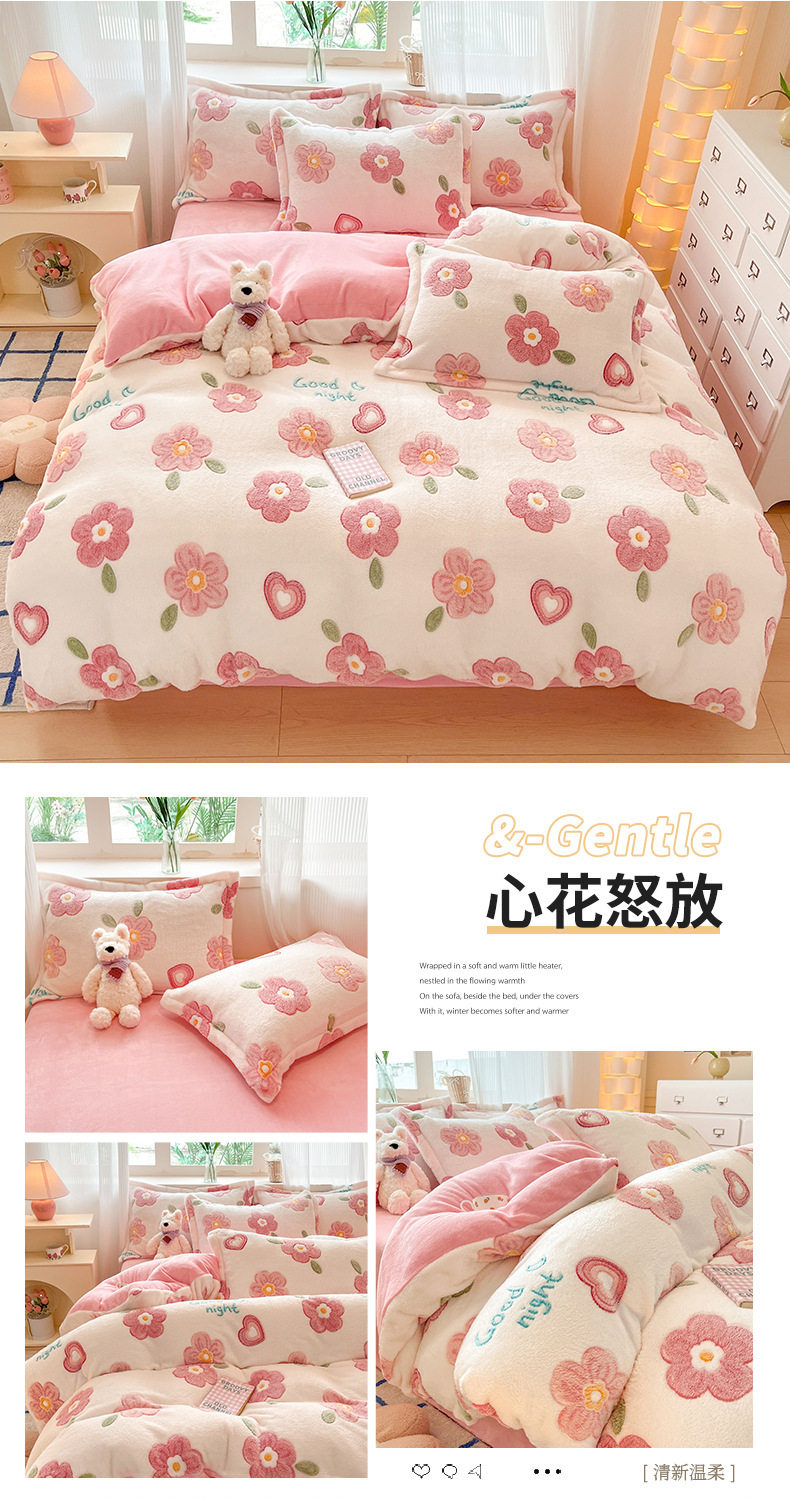 Thickened Winter Snowflake Velvet Four-Piece Set, Double-Sided Velvet Quilt Cover, Coral Velvet Quilt Cover, Bed Bed Sheets, Three-Piece Set, Single Quilt Cover