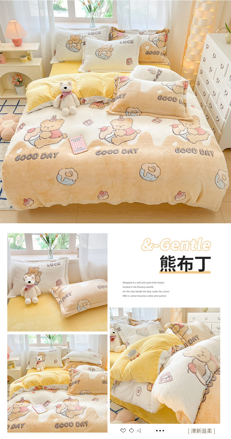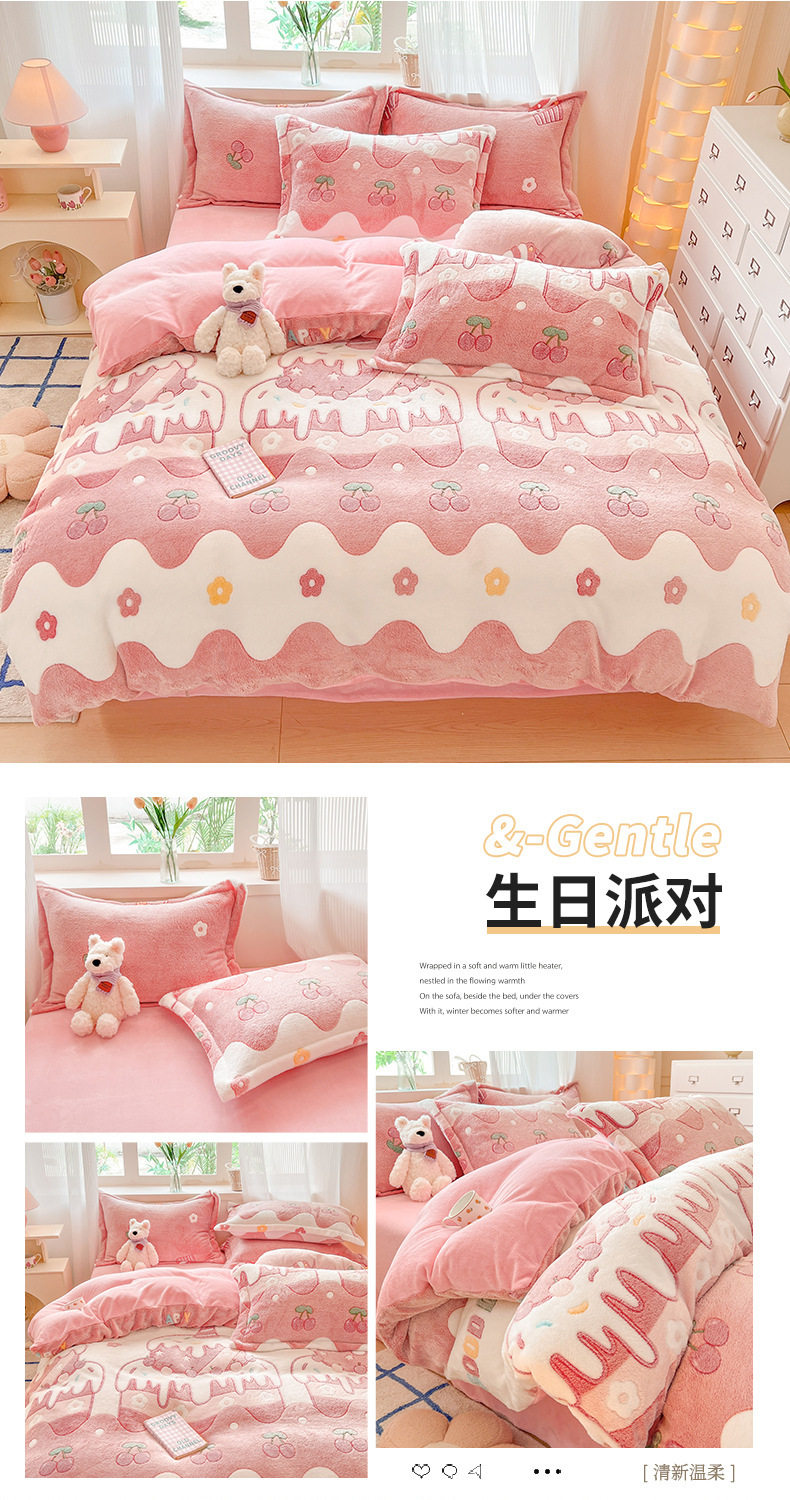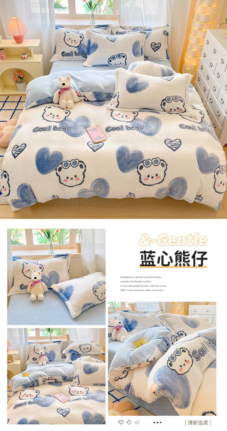 Thickened Winter Snowflake Velvet Four-Piece Set, Double-Sided Velvet Quilt Cover, Coral Velvet Quilt Cover, Bed Bed Sheets, Three-Piece Set, Single Quilt Cover