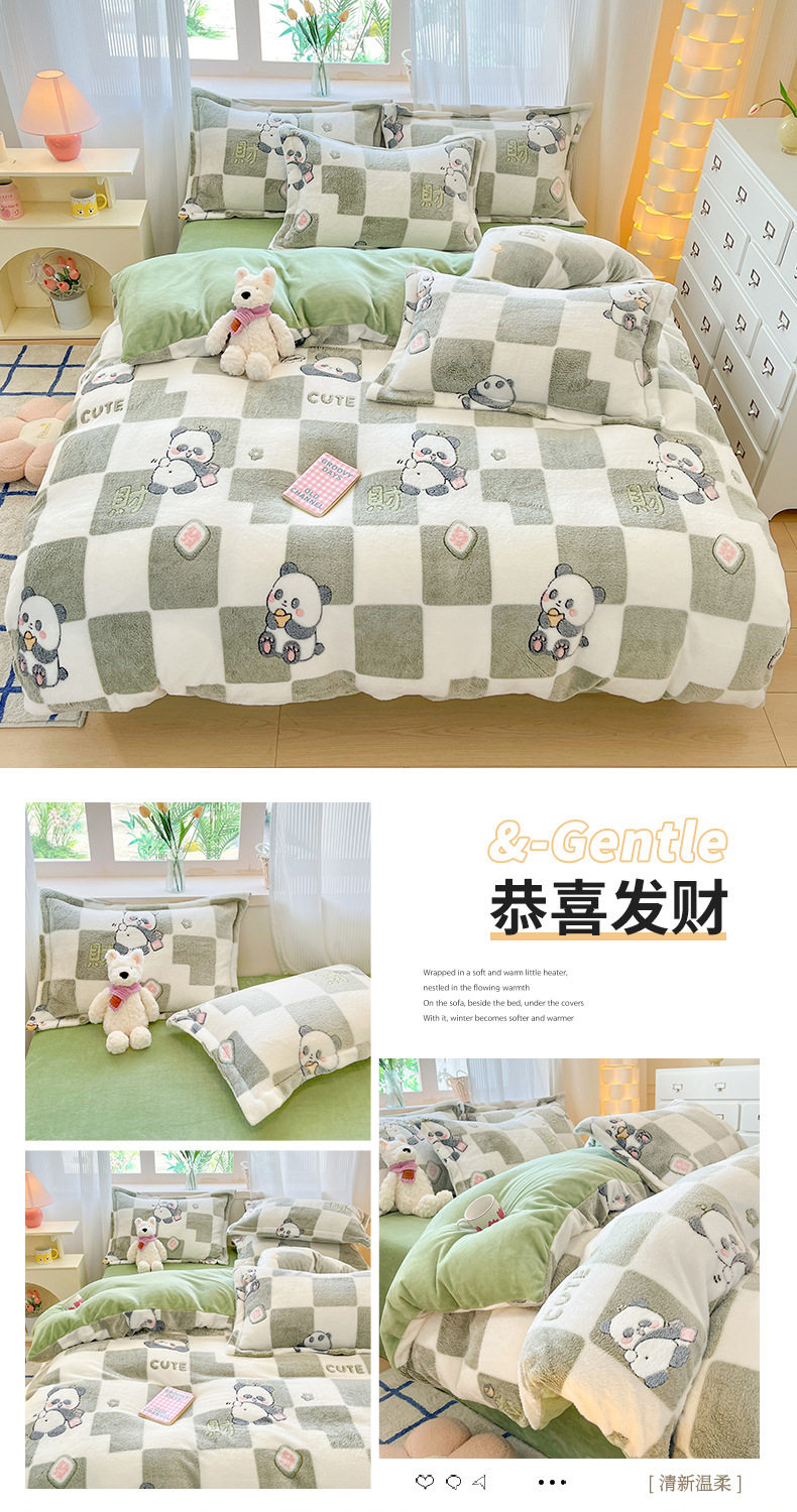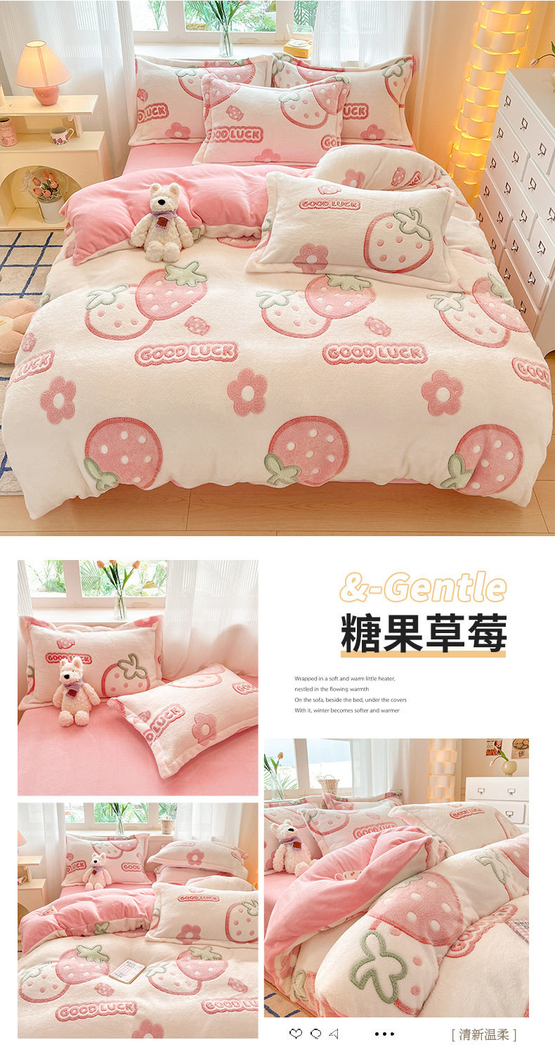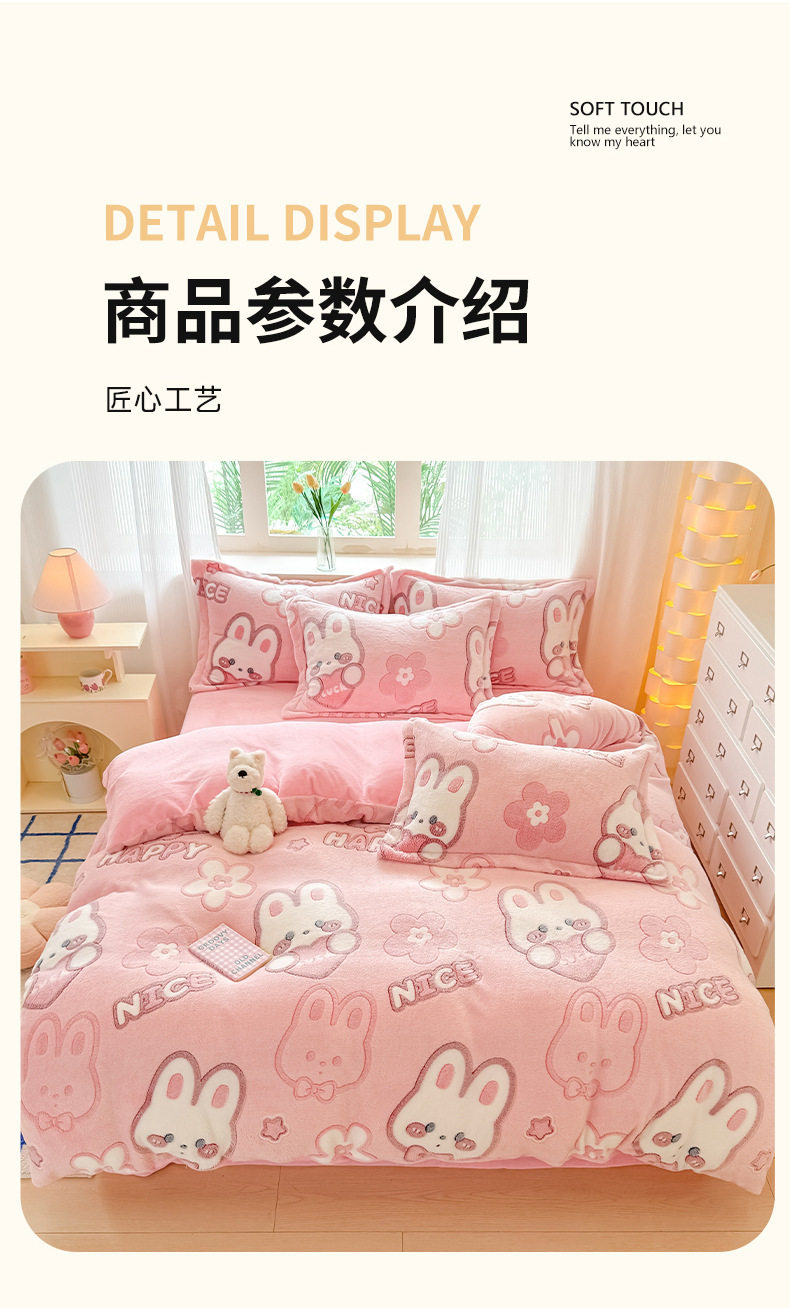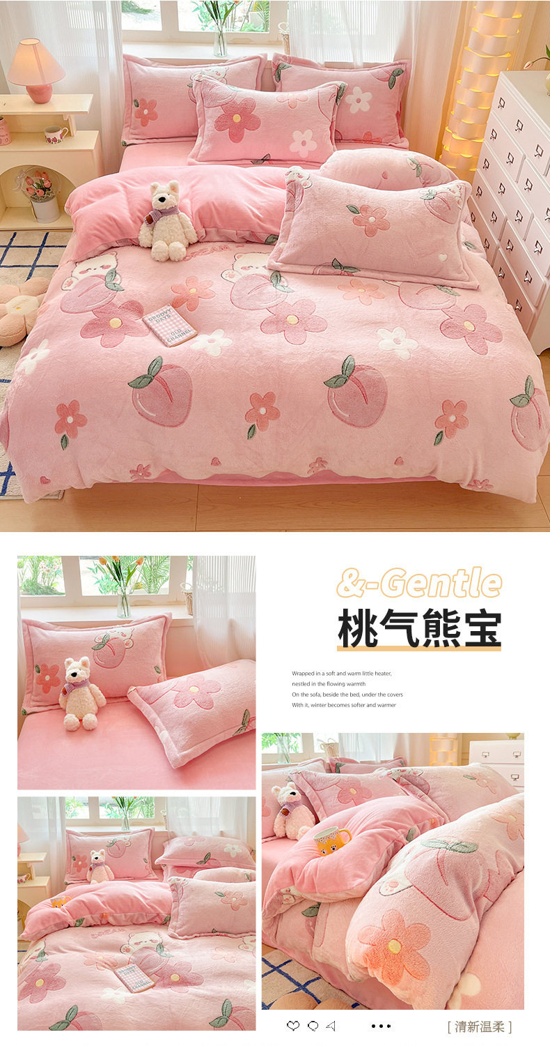 Thickened Winter Snowflake Velvet Four-Piece Set, Double-Sided Velvet Quilt Cover, Coral Velvet Quilt Cover, Bed Bed Sheets, Three-Piece Set, Single Quilt Cover