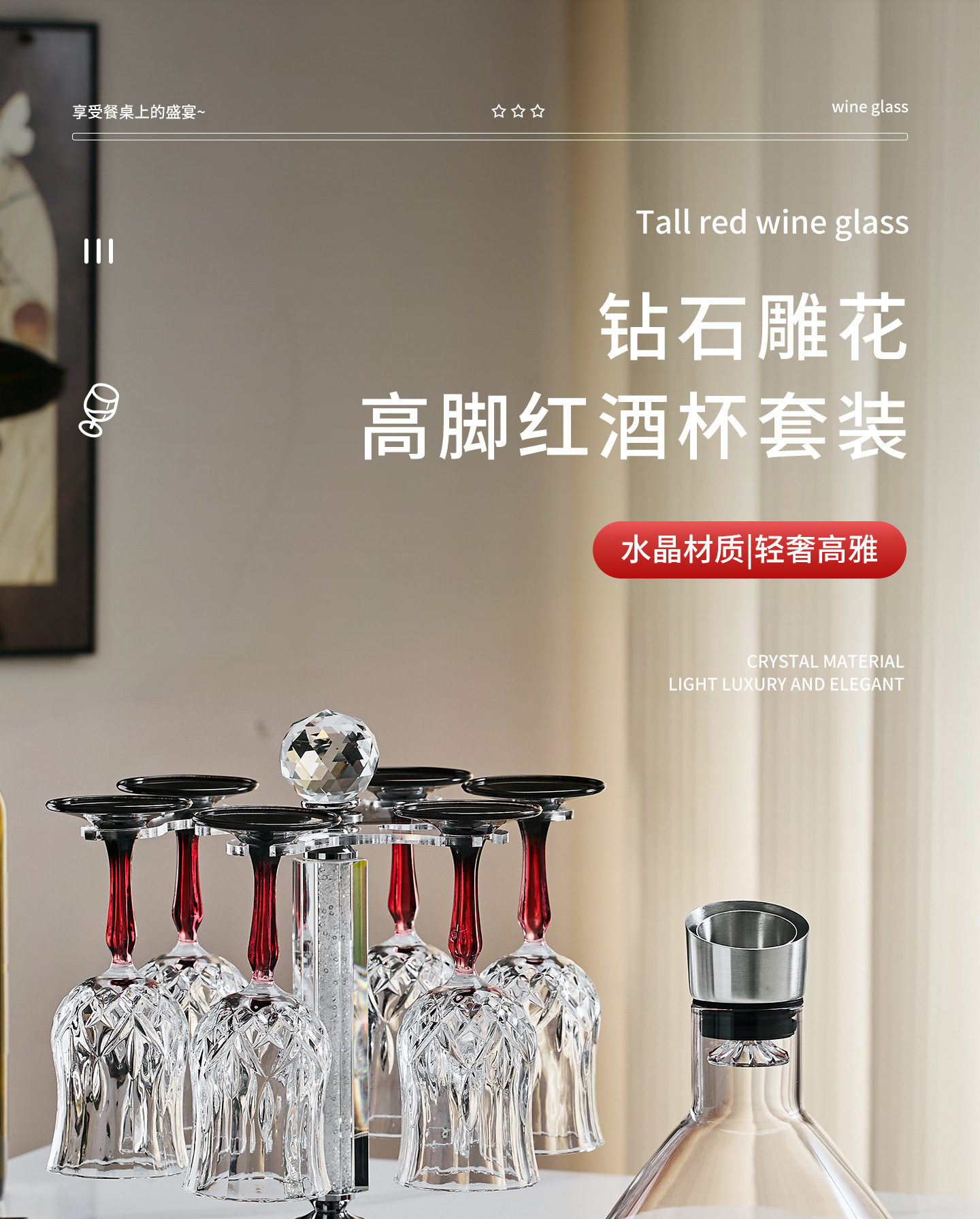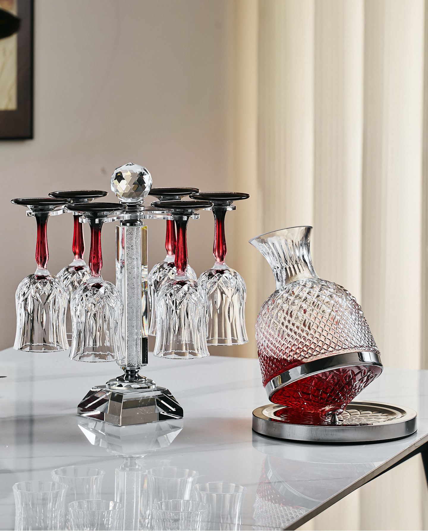 High-End Light Luxury Crystal Wine Glass Decanter Home Set European Style New Creative Tall Glass Wine Glass