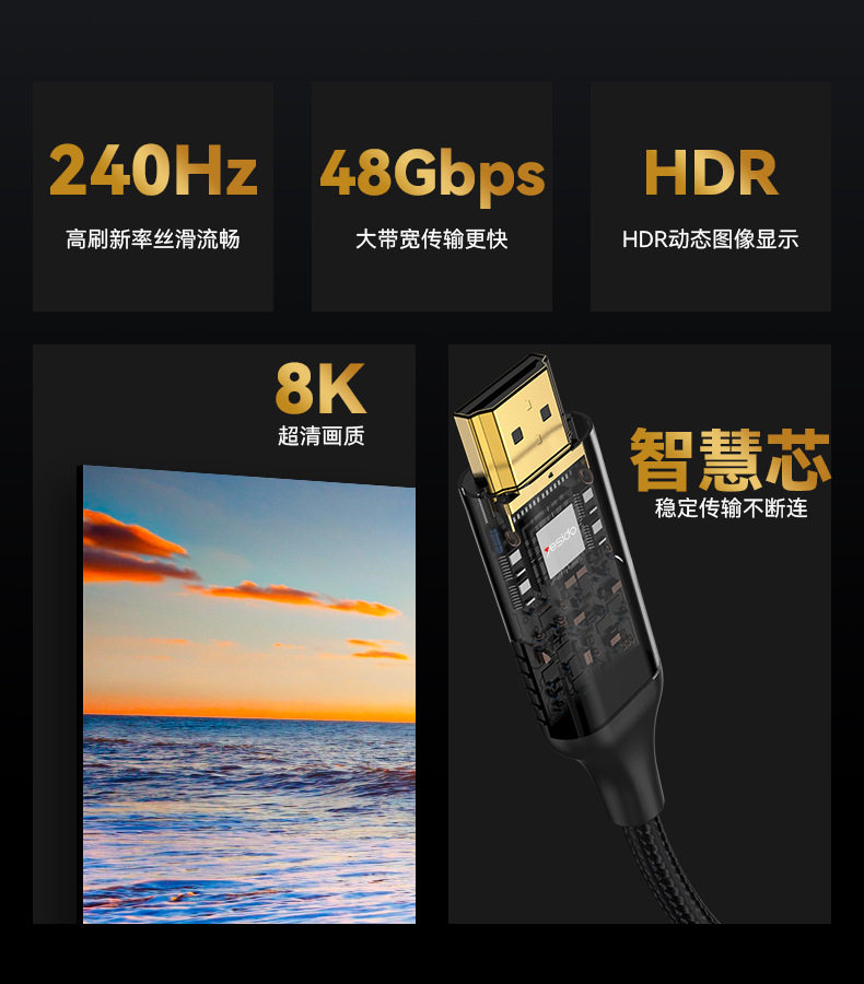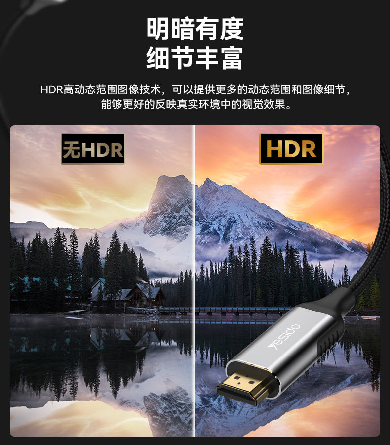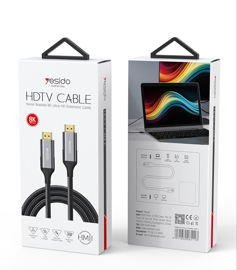 Yesido Hd Cable Tv Computer HDMI Cable Monitor Hdmi2.1 Screen Projector Connection Data Cable