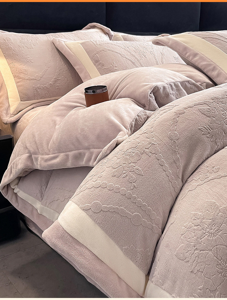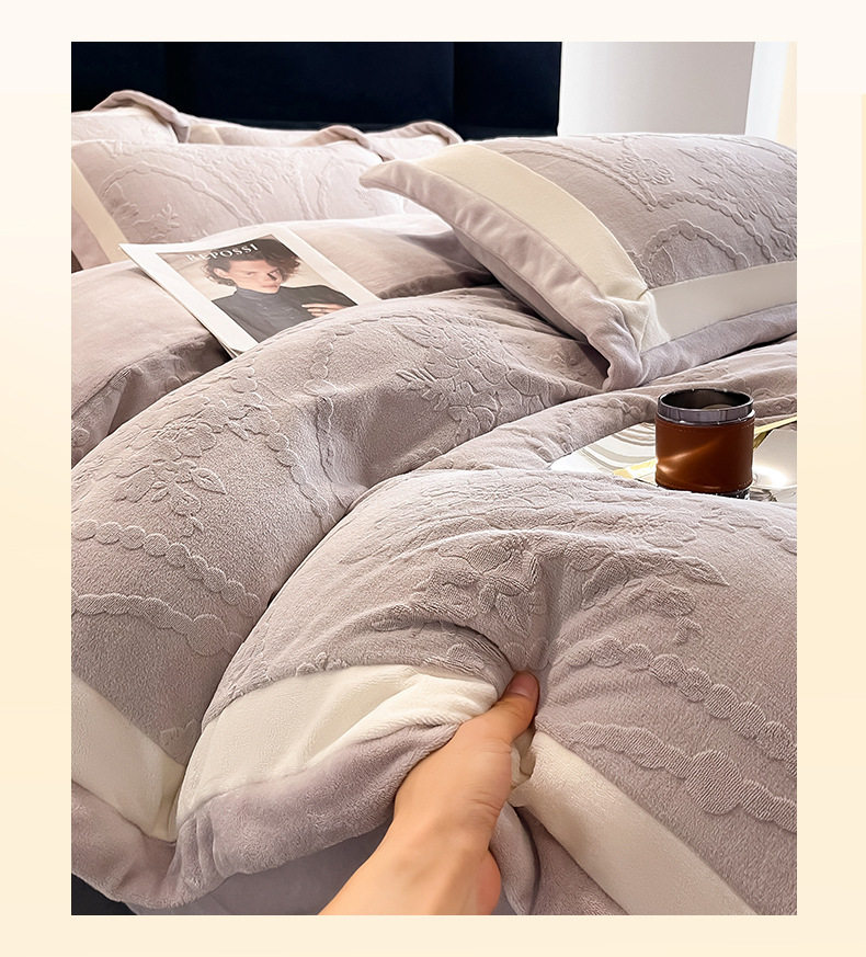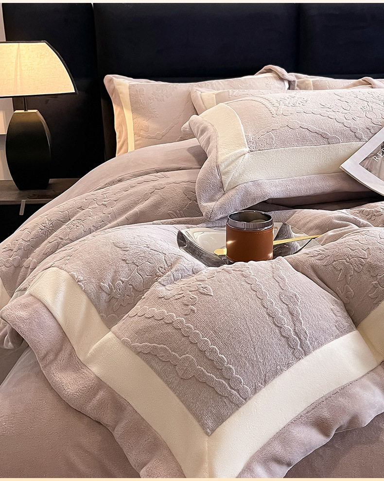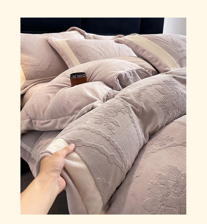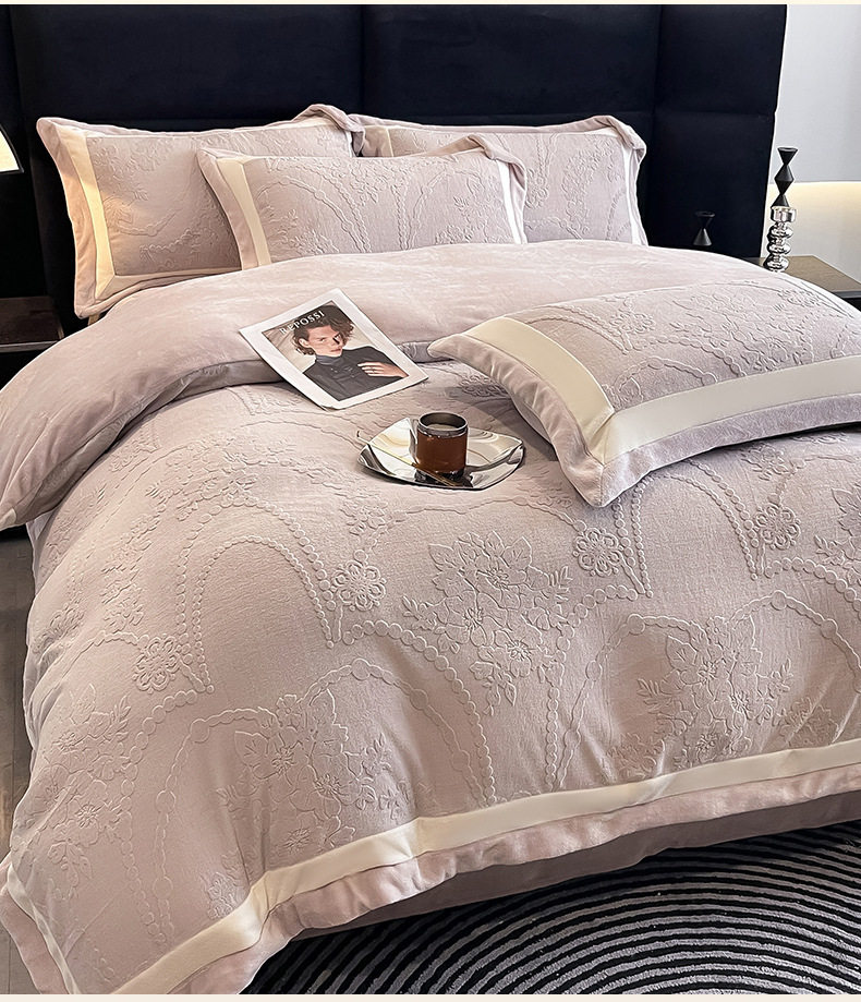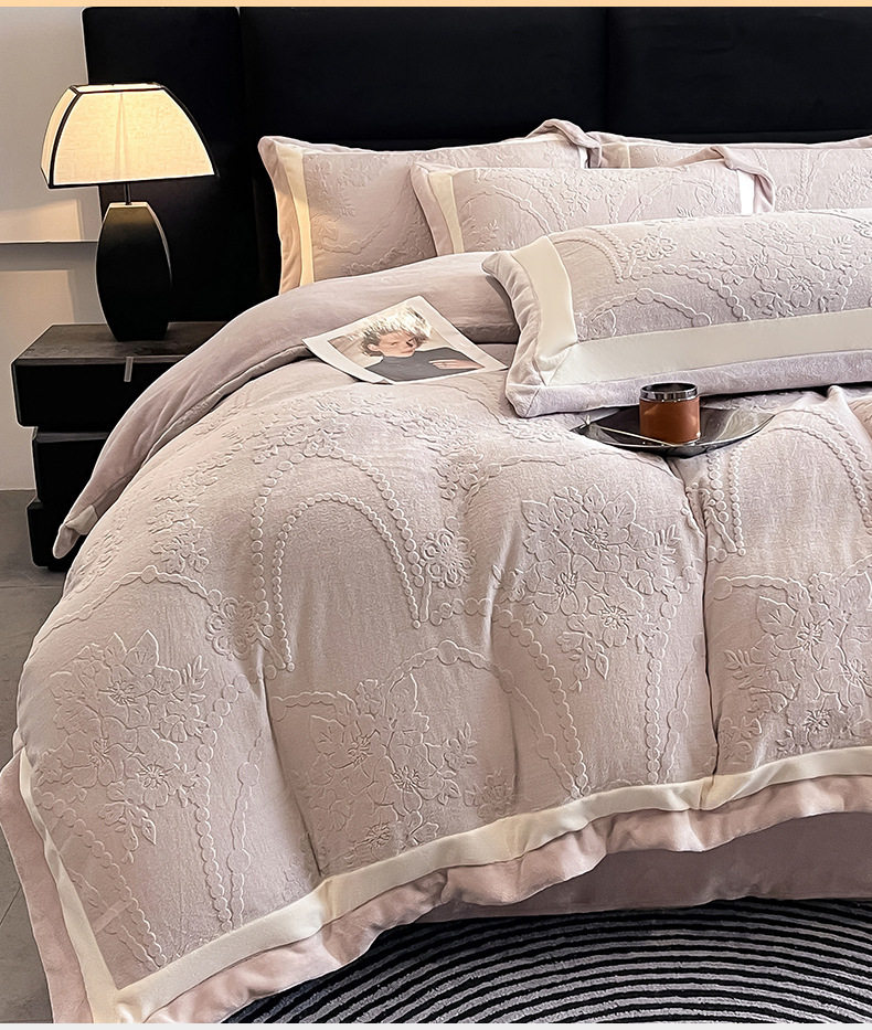 Class a Autumn and Winter Milk Velvet Four-Piece Set 7D Carved Velvet Warm Quilt Cover Winter Thickeneded Double-Sided Velvet Bedding