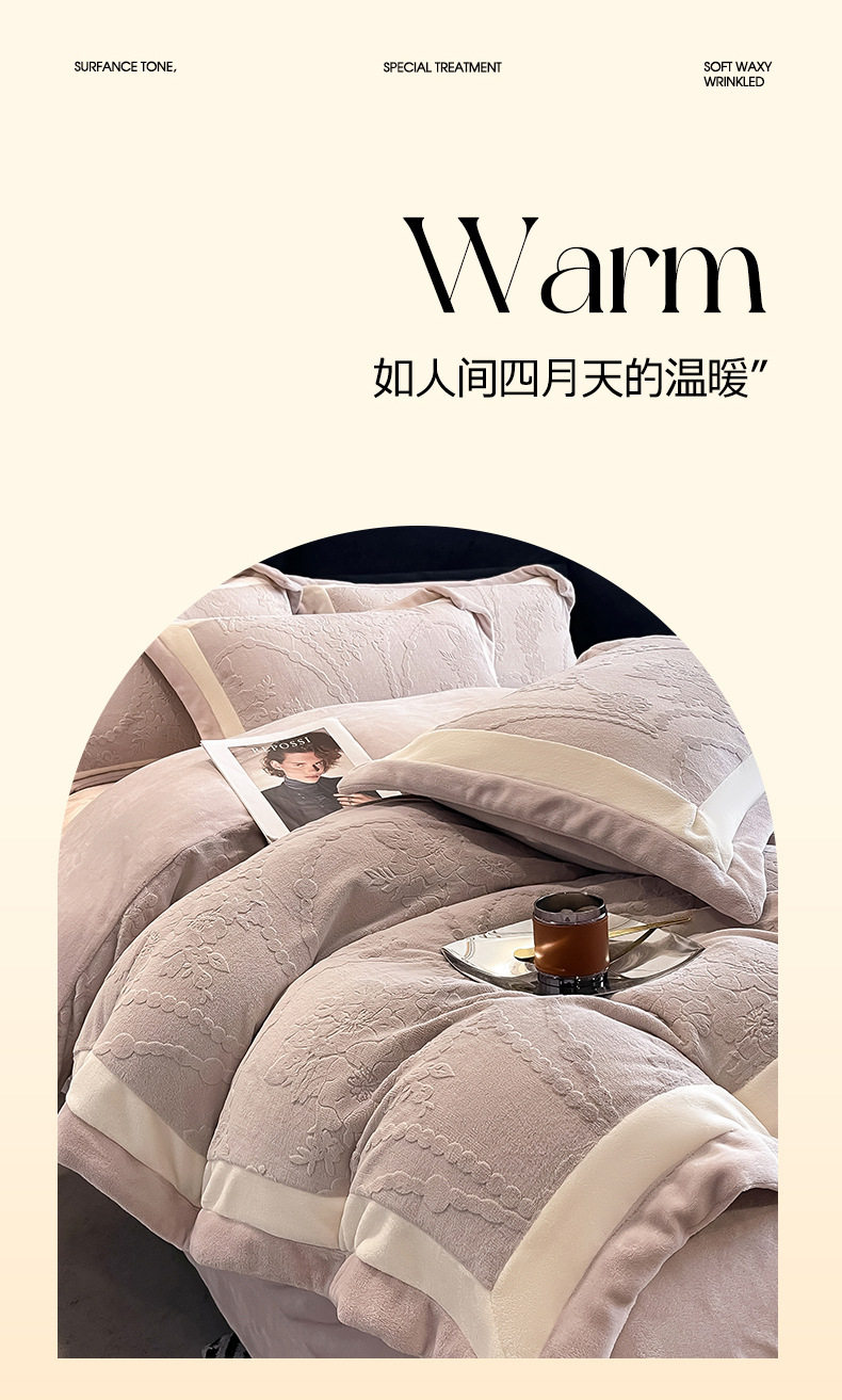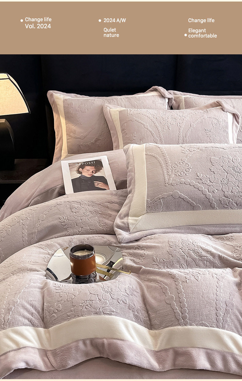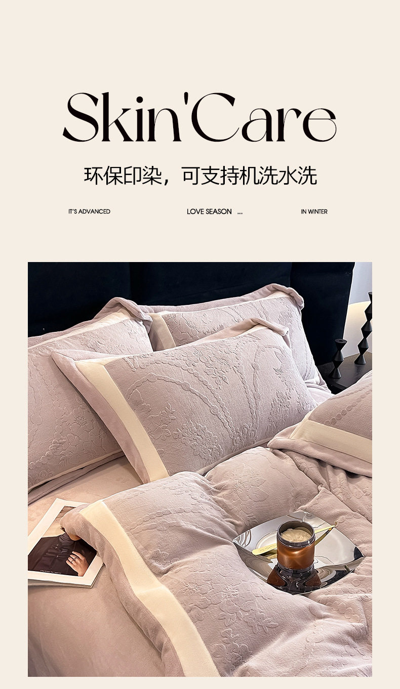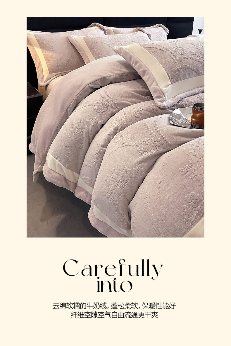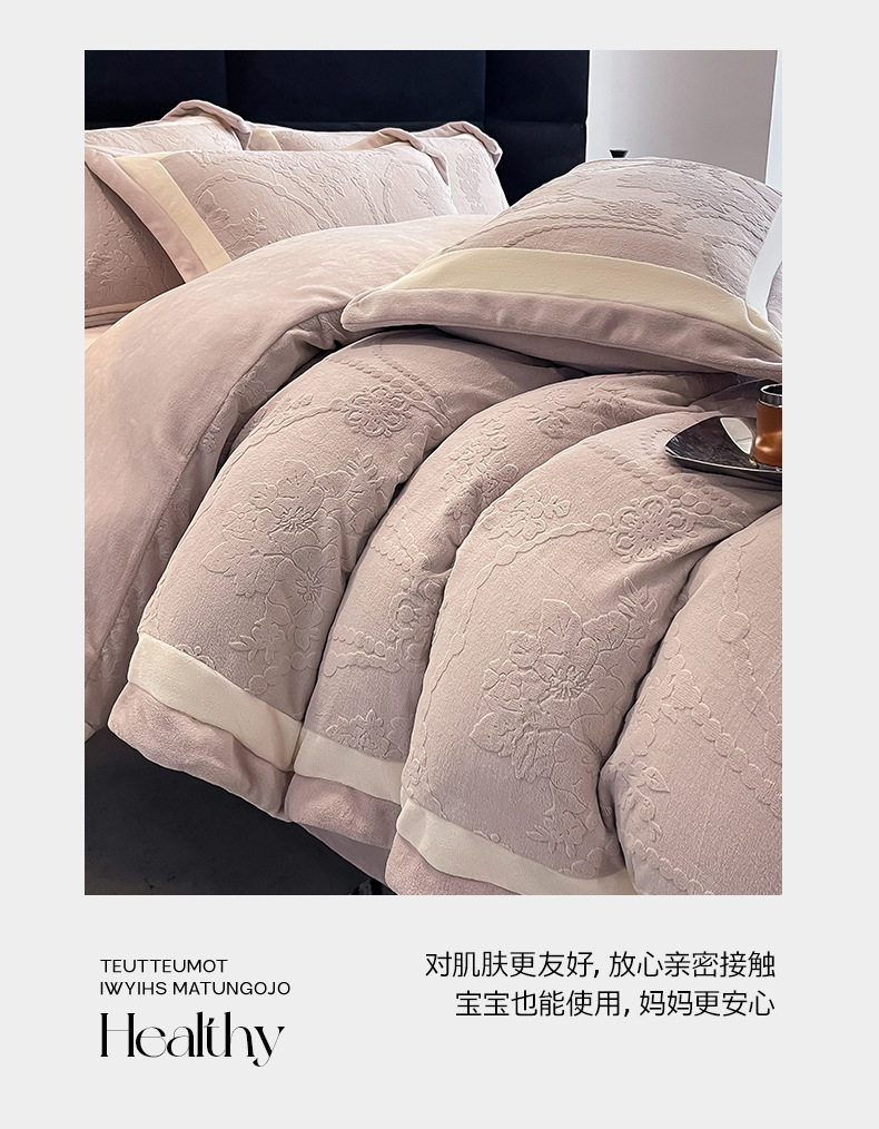 Class a Autumn and Winter Milk Velvet Four-Piece Set 7D Carved Velvet Warm Quilt Cover Winter Thickeneded Double-Sided Velvet Bedding
