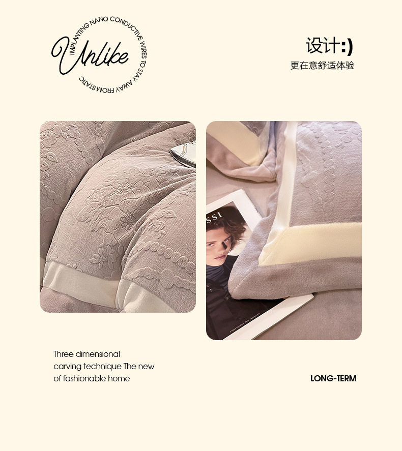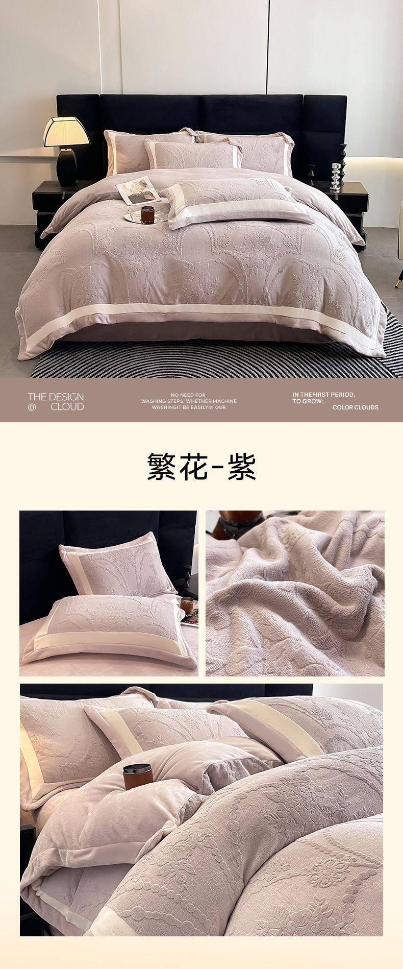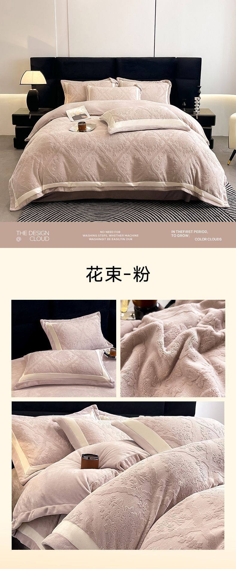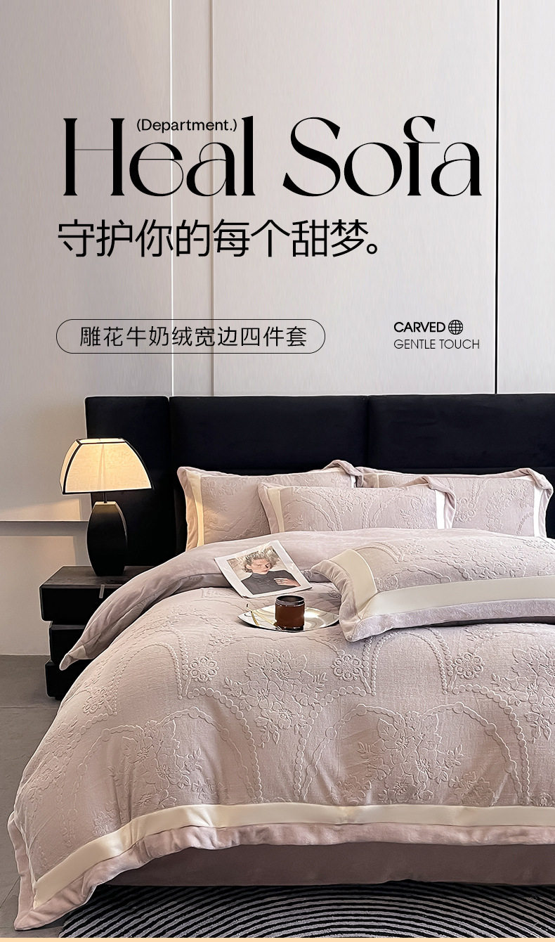 Class a Autumn and Winter Milk Velvet Four-Piece Set 7D Carved Velvet Warm Quilt Cover Winter Thickeneded Double-Sided Velvet Bedding