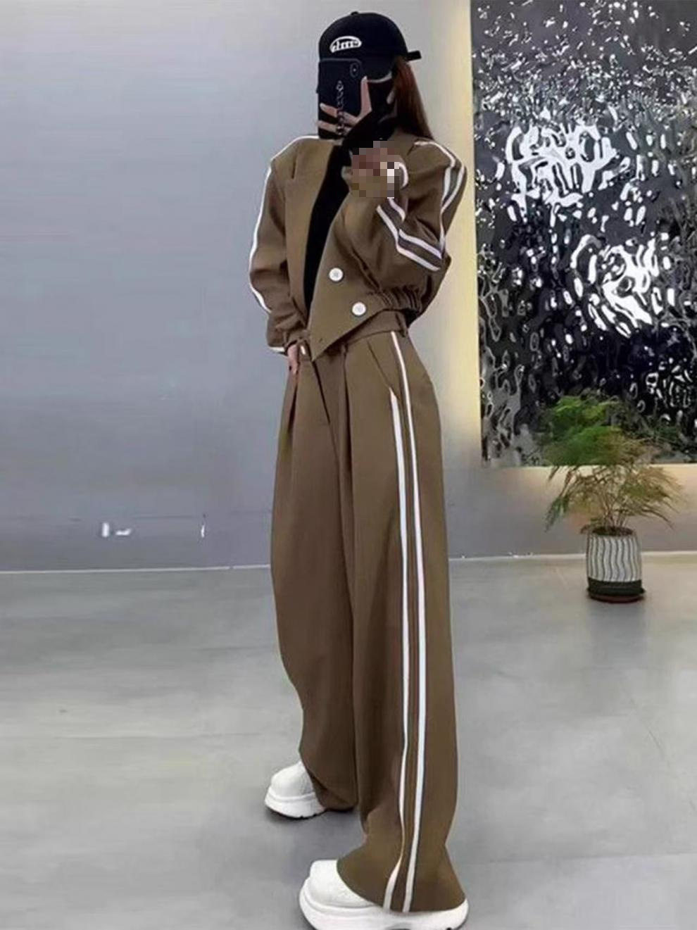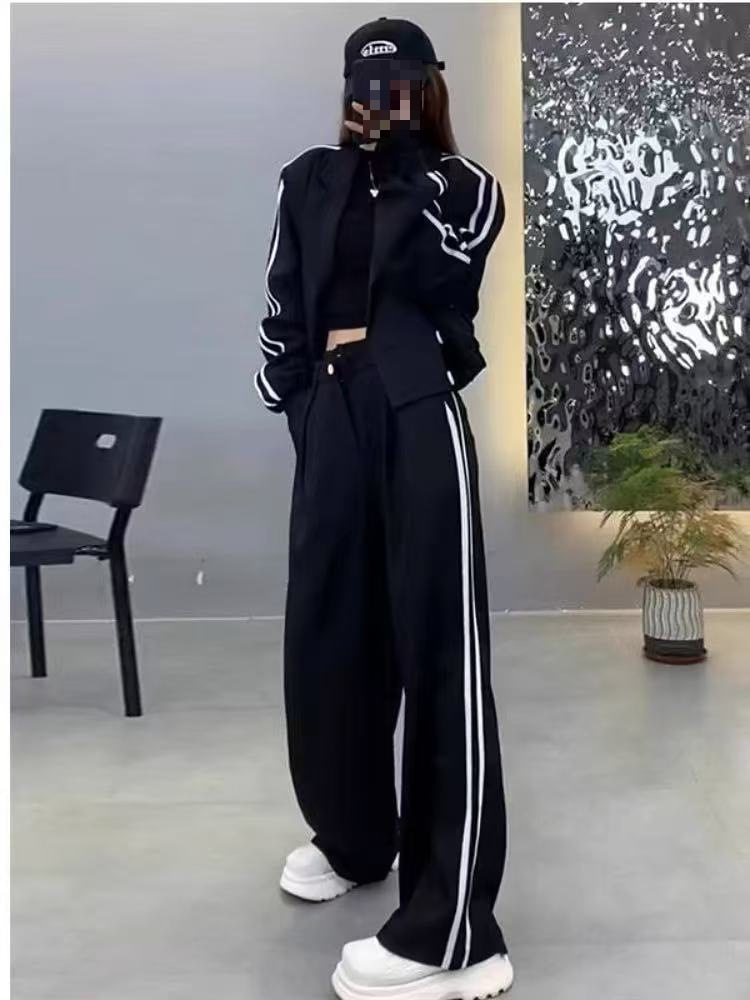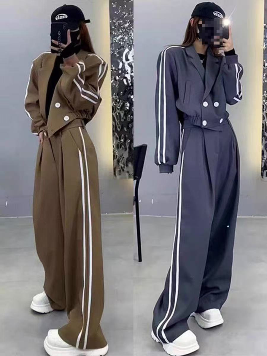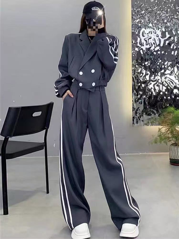 Two-Stripe Suit Women 2025 Autumn and Winter New Thickened Blazer High-Waisted Slimming Wide-Leg Pants Two-Piece Set