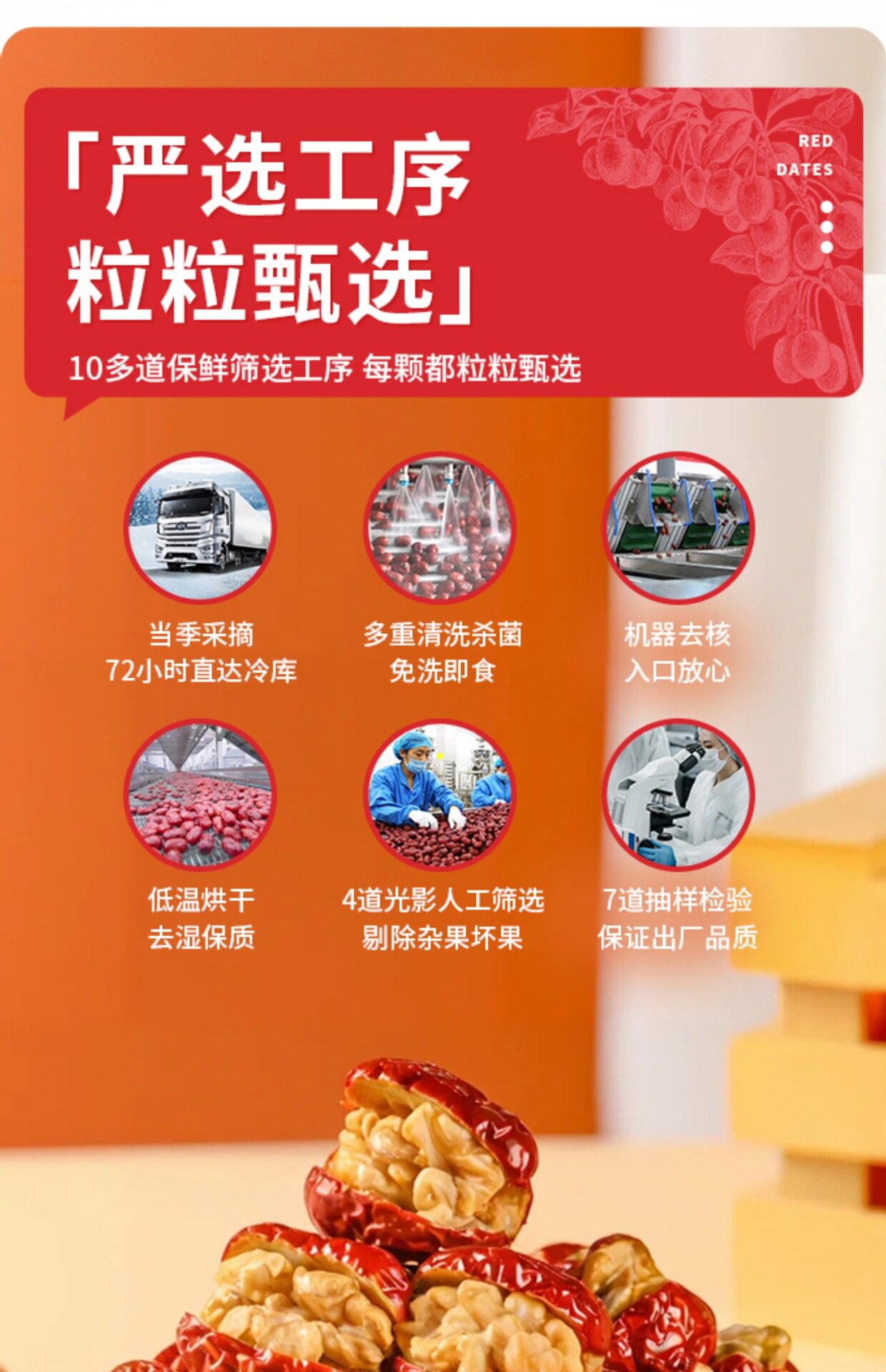 Dates with Walnuts, Xinjiang Specialty Grade Gray Jujube, Stuffed Jujube Kernel Pie, Individually Packaged Snacks