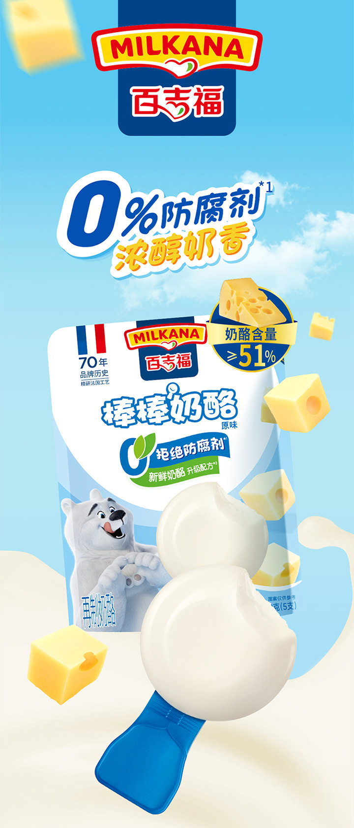 [Choose 5 Pieces for 58 Yuan] Baojifu Bangbang Cheese 100g Children's Baby Cheese Sticks High Calcium Snack Cheese