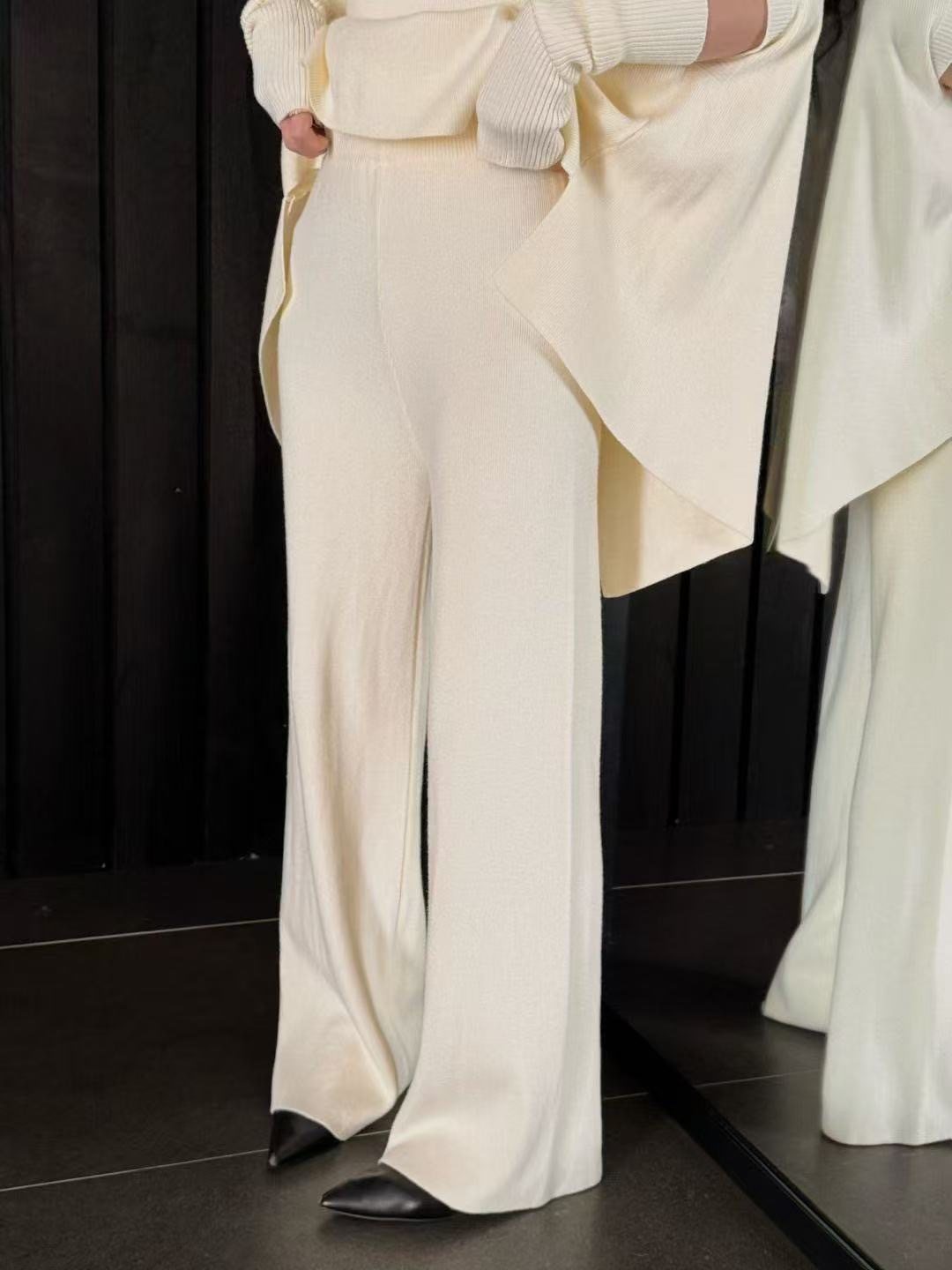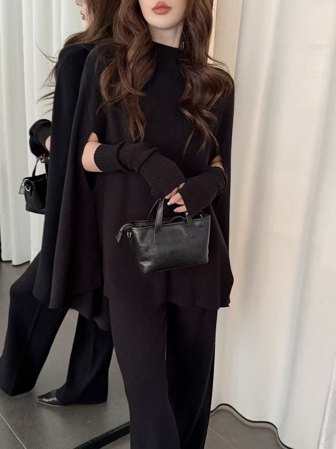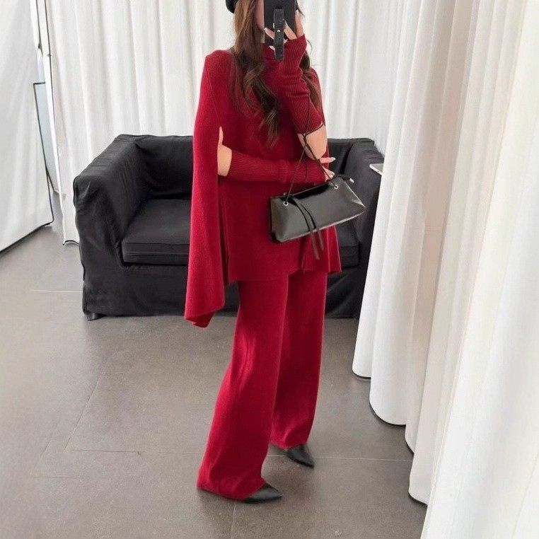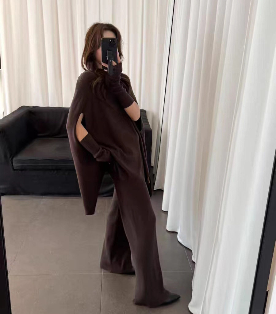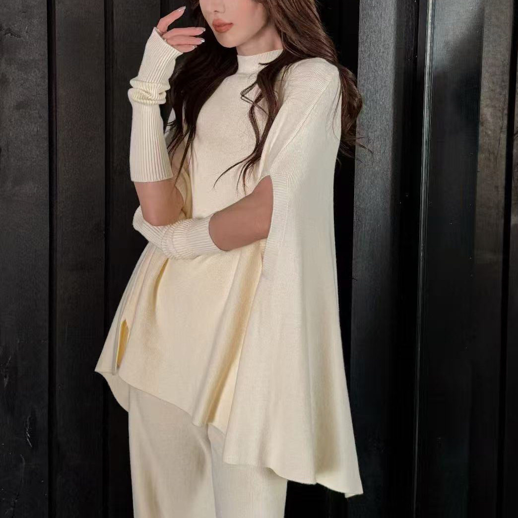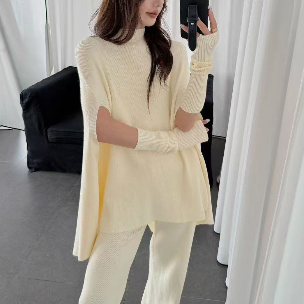 Fashionable Sweater Suit Korean Style Autumn and Winter New Knitted Wide-Leg Pants + Half Turtleneck Top + Vest Three-Piece Set