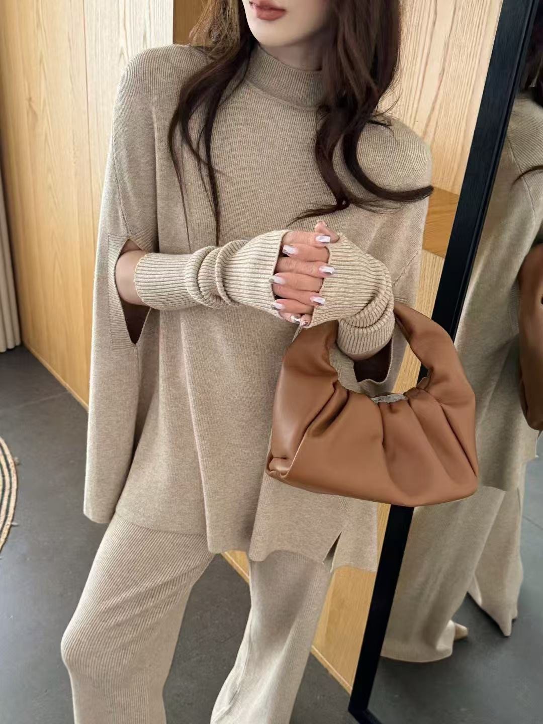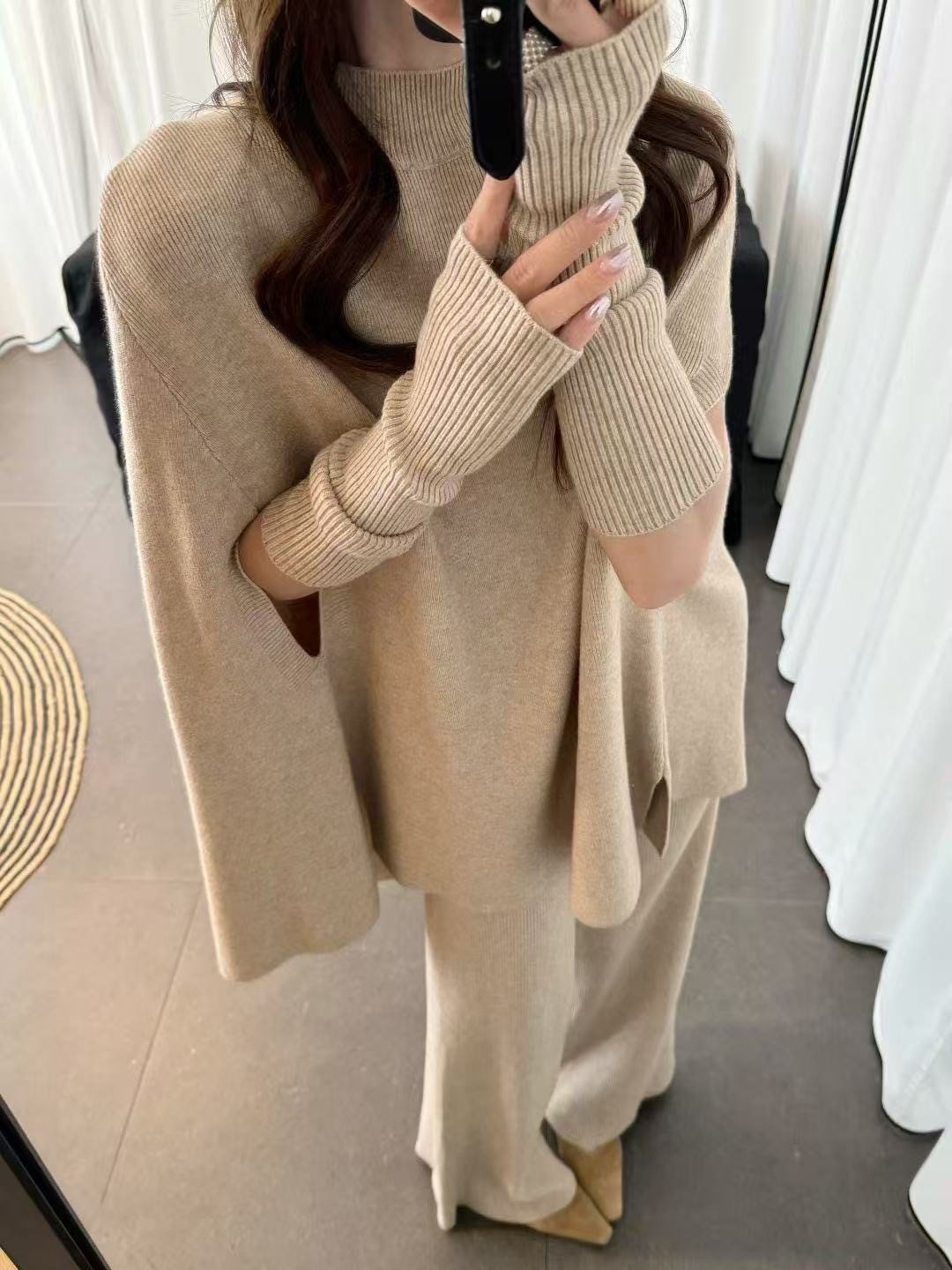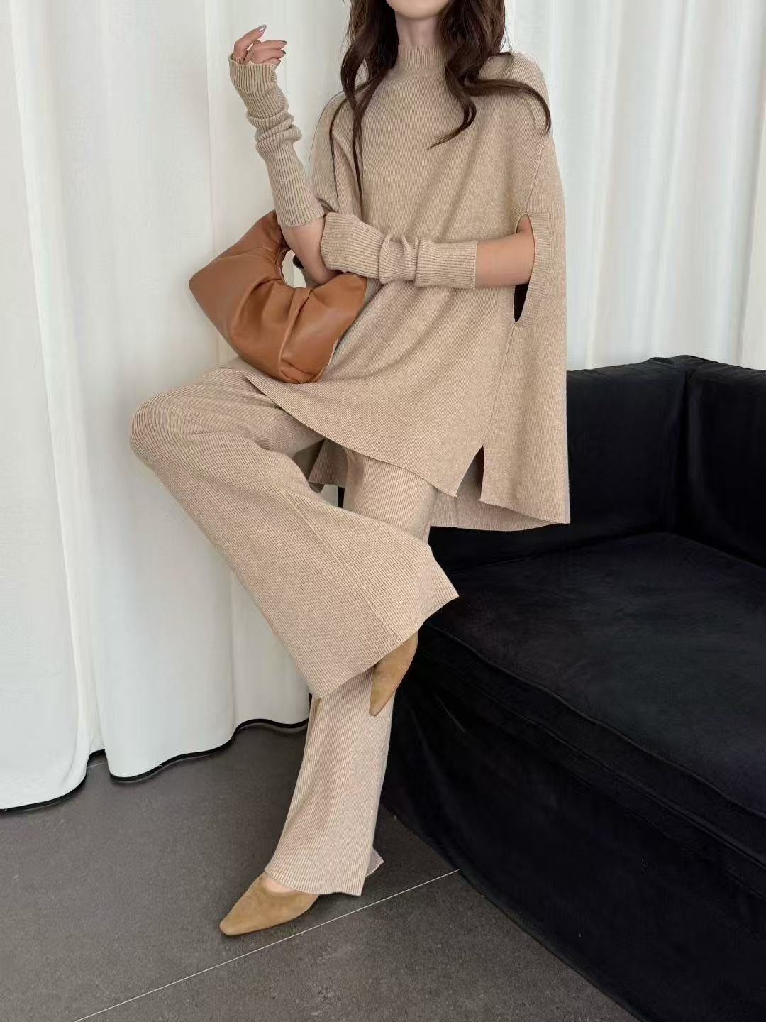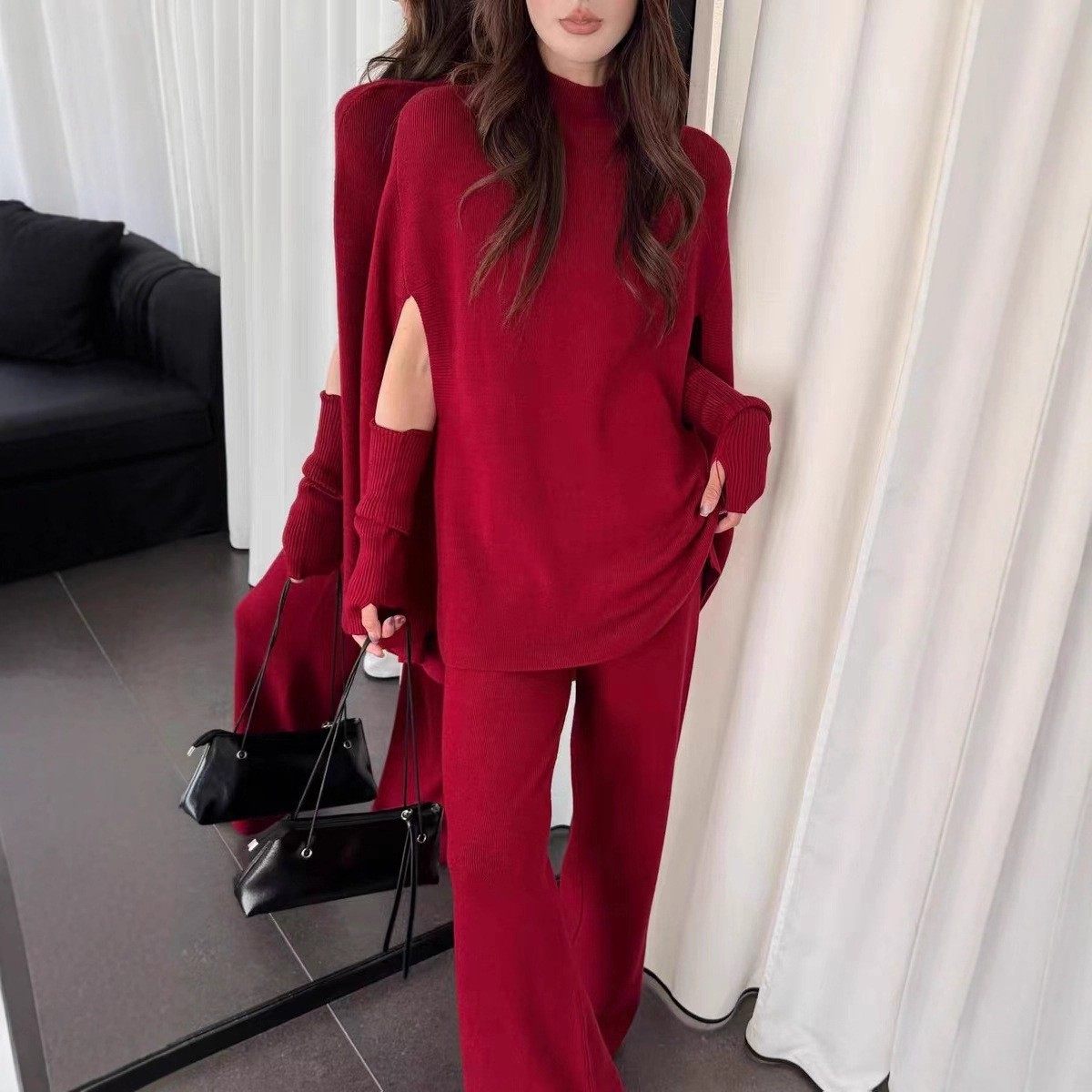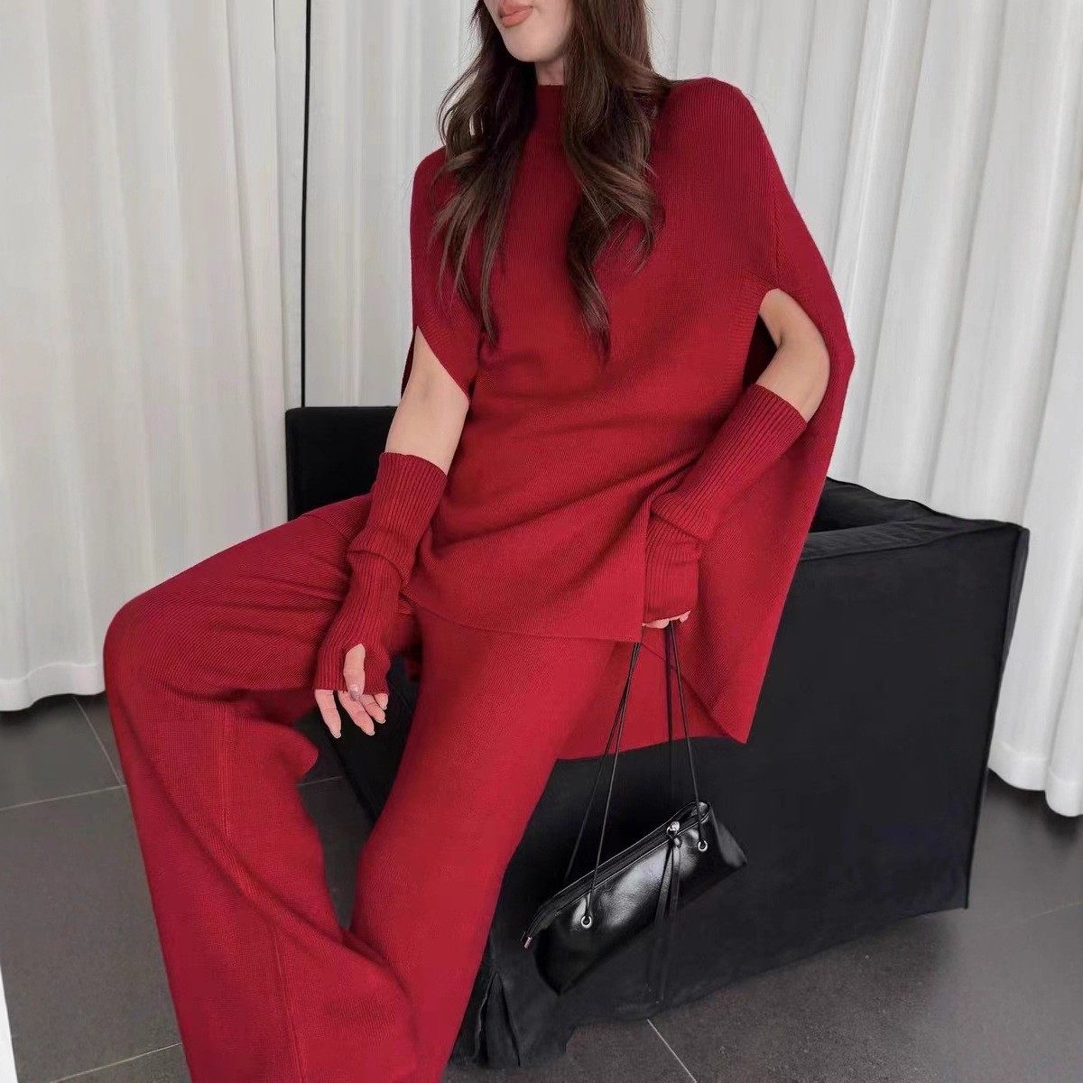 Fashionable Sweater Suit Korean Style Autumn and Winter New Knitted Wide-Leg Pants + Half Turtleneck Top + Vest Three-Piece Set